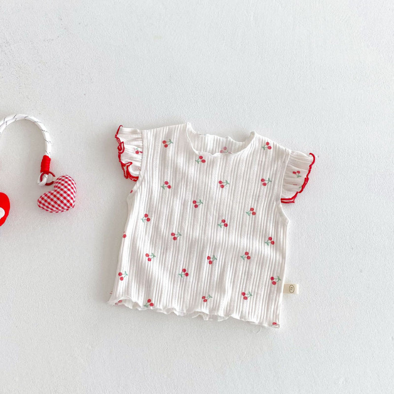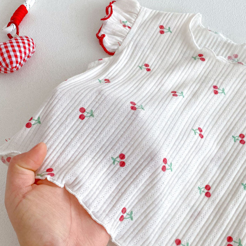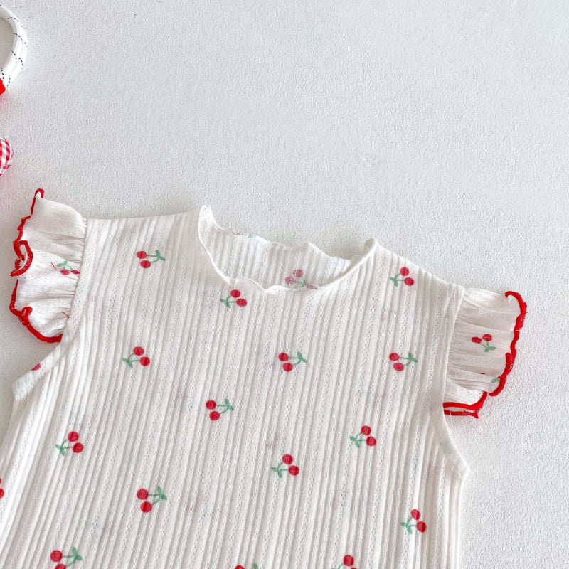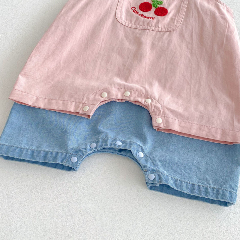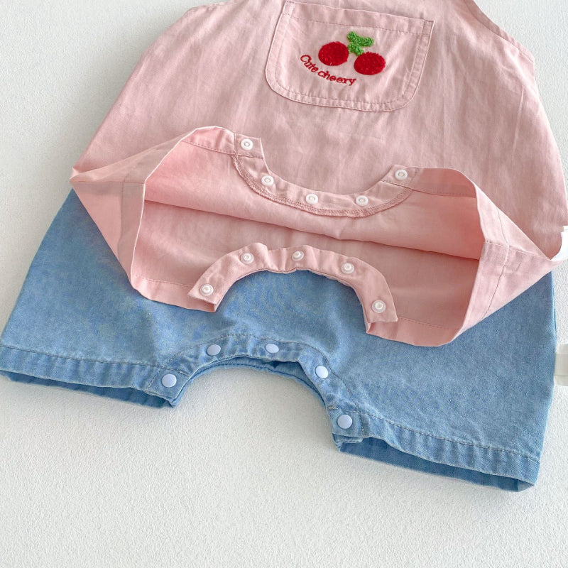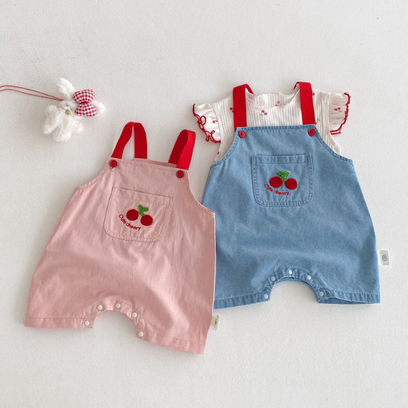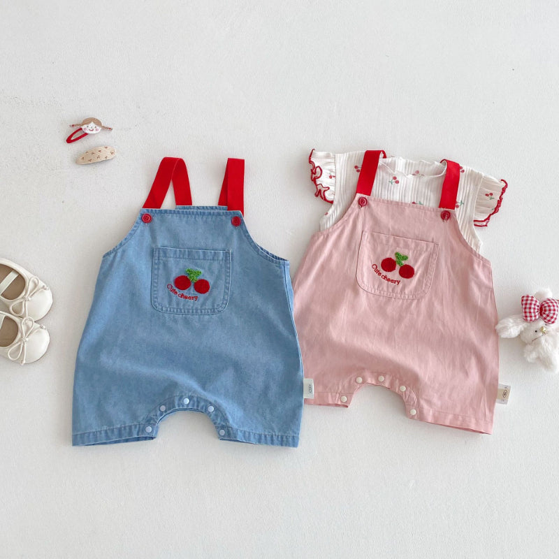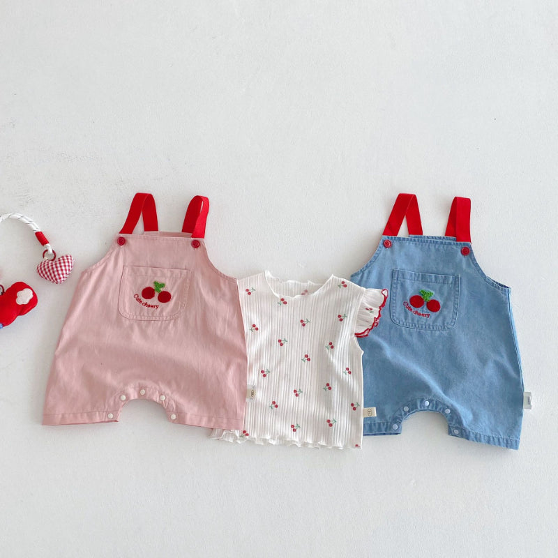 【BABY&KID】夏新作 チェリー柄デニムサロペット、チェリープリントTシャツSK080618