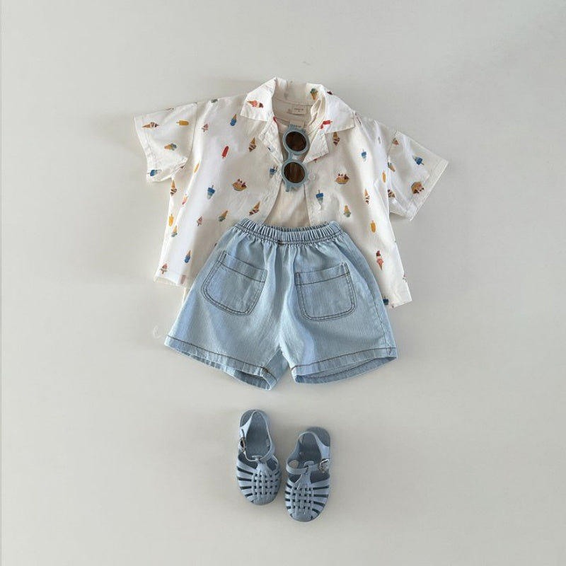 【BABY&KID】夏新作 デニムシャツセットアップSK080215