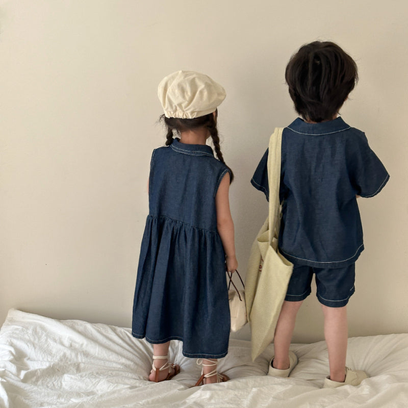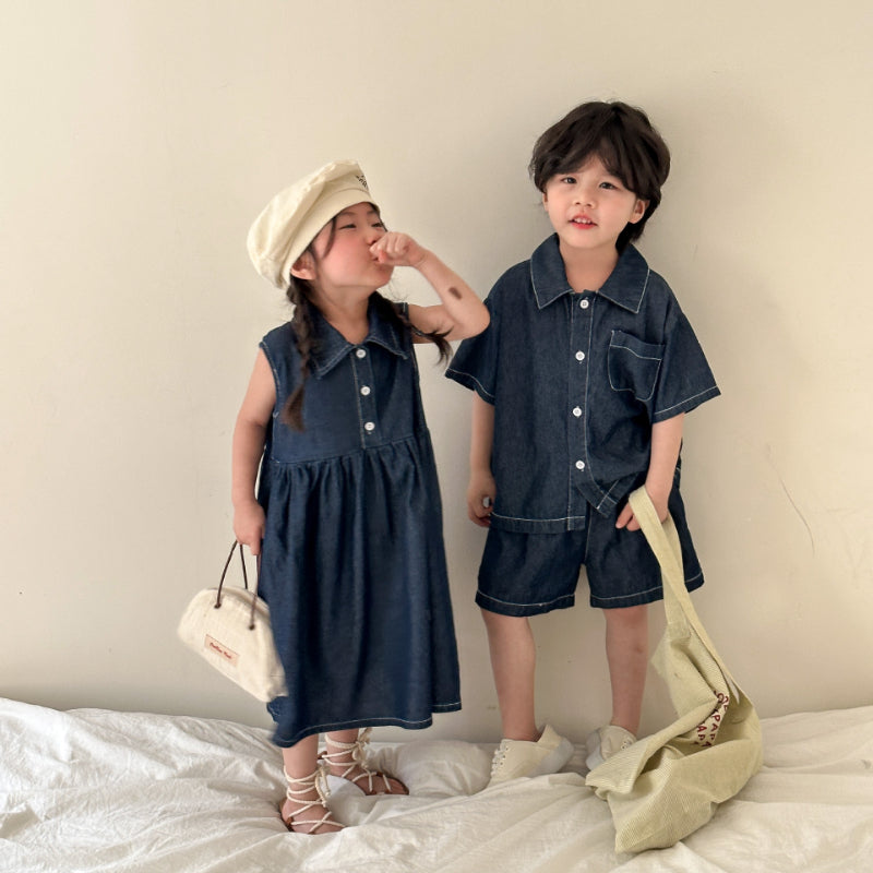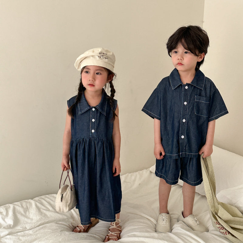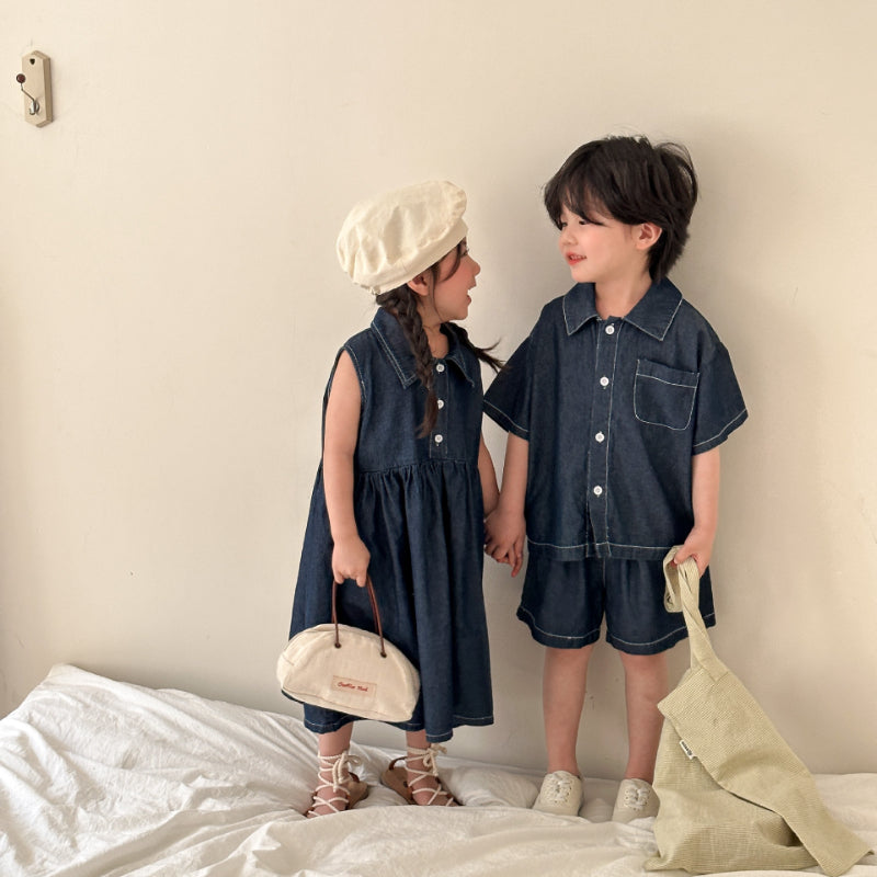 【BABY&KID】夏新作 デニムセットアップ、ワンピースSK063011
