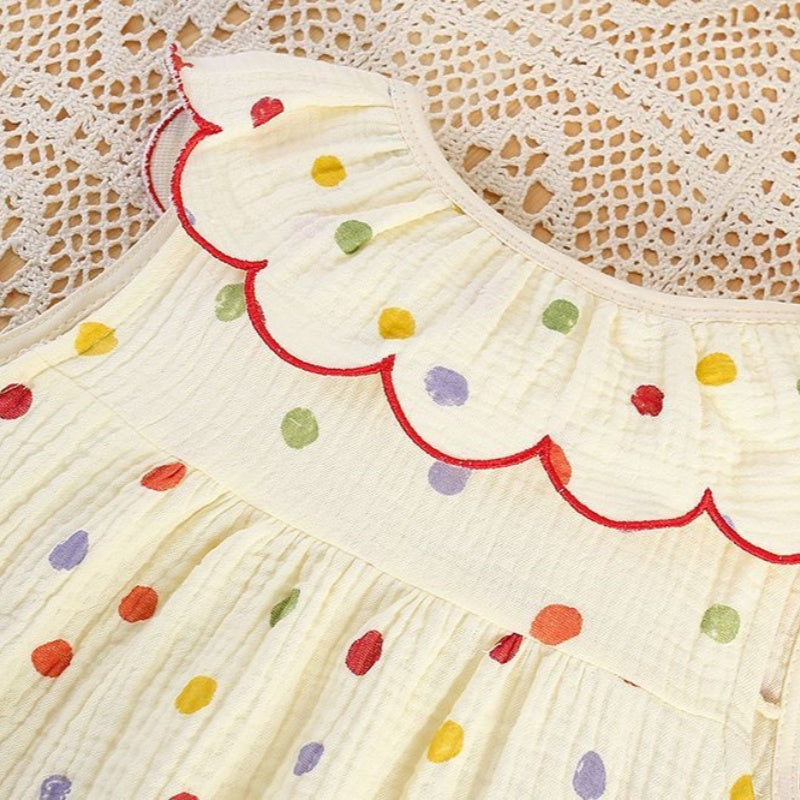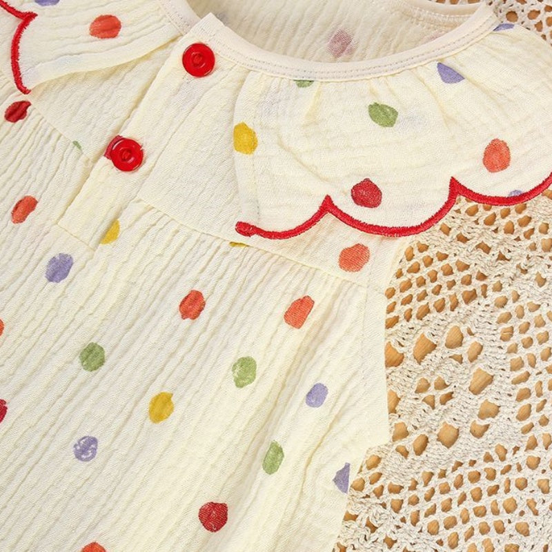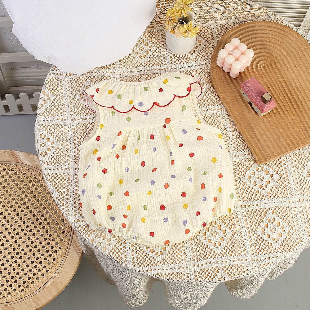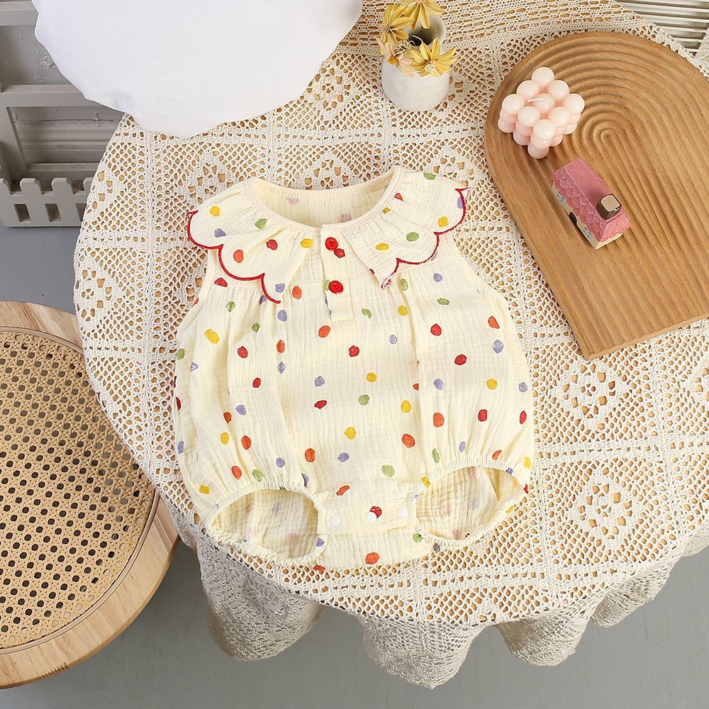 【BABY】夏新作 ドット花びら襟ロンパース、ワンピースSK092633