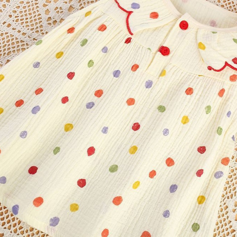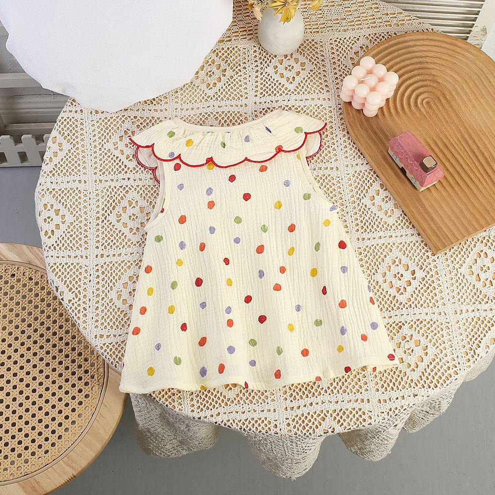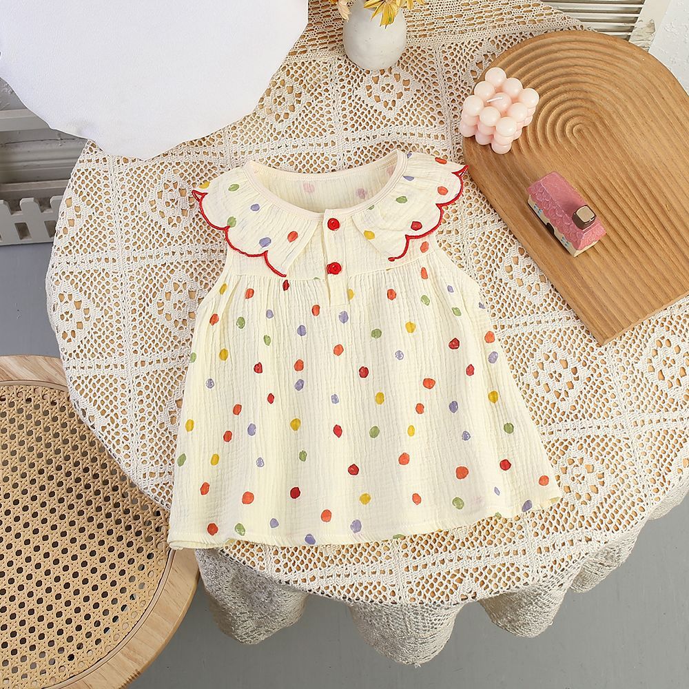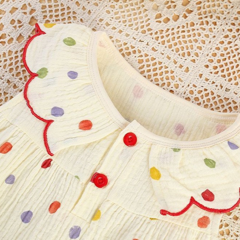 【BABY】夏新作 ドット花びら襟ロンパース、ワンピースSK092633