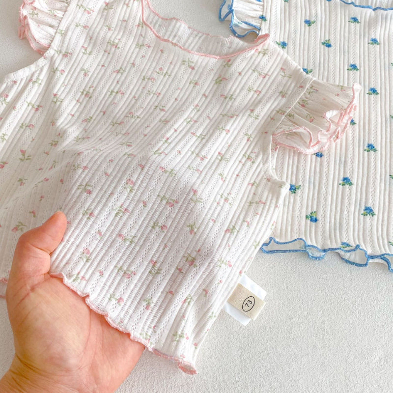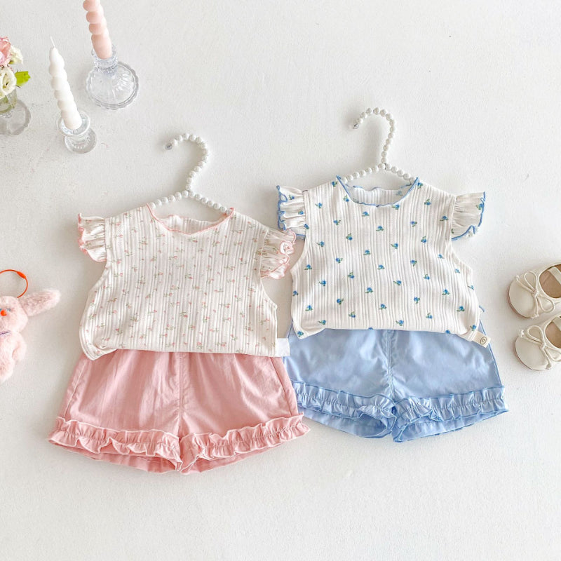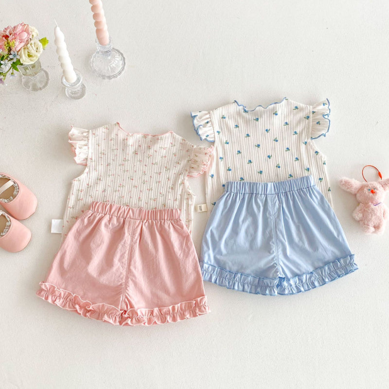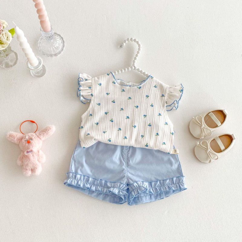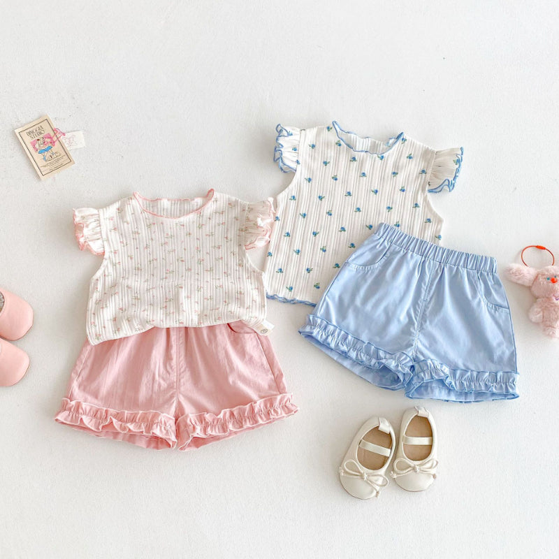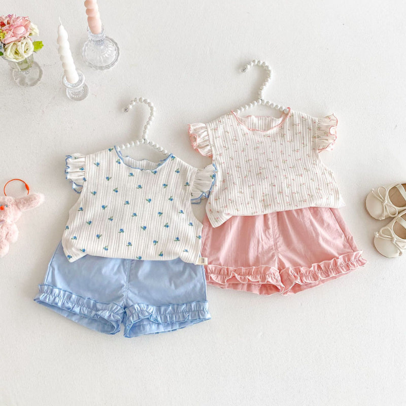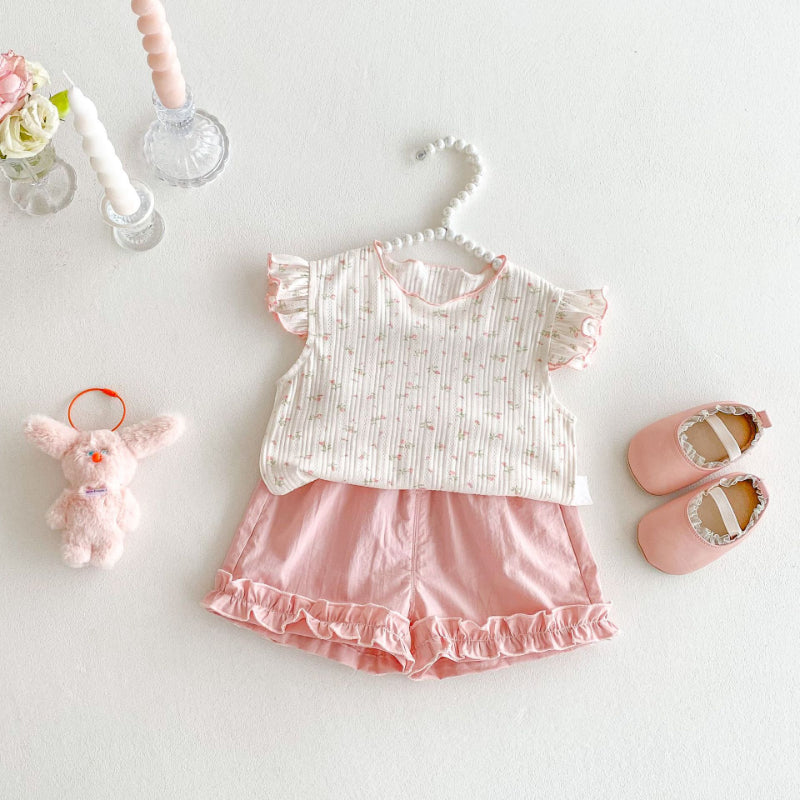 【BABY&KID】夏新作 ニットフリル袖Tシャツ、ョートパンツSK080615