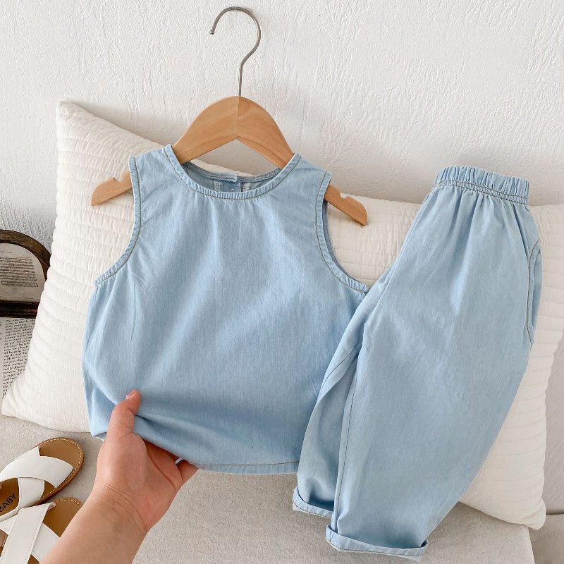 【BABY&KID】夏新作 ノースリーブデニムセットアップSK080207