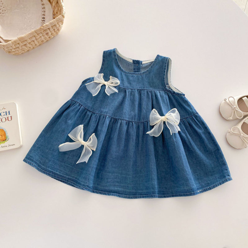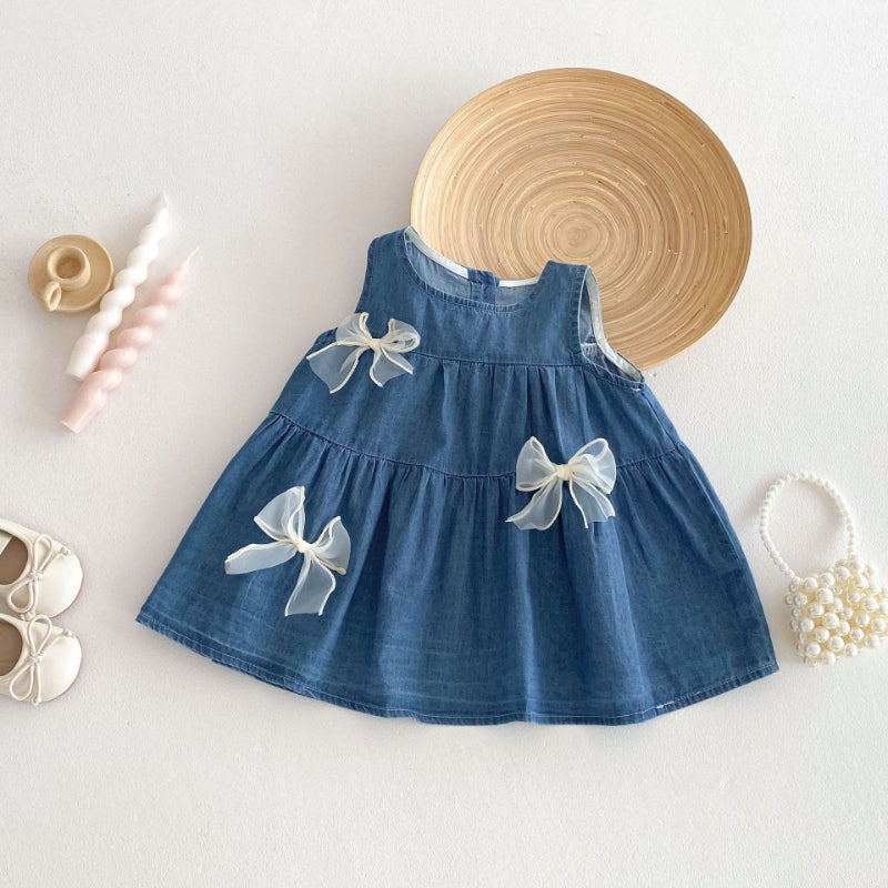 【BABY&KID】夏新作 ノースリーブリボンデニムワンピースSK070504