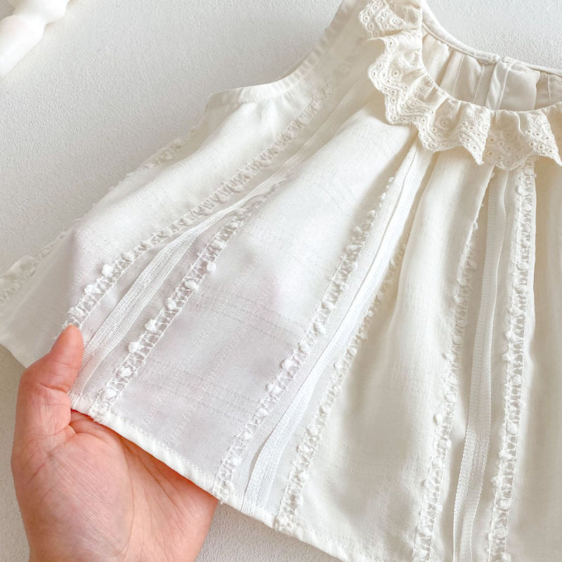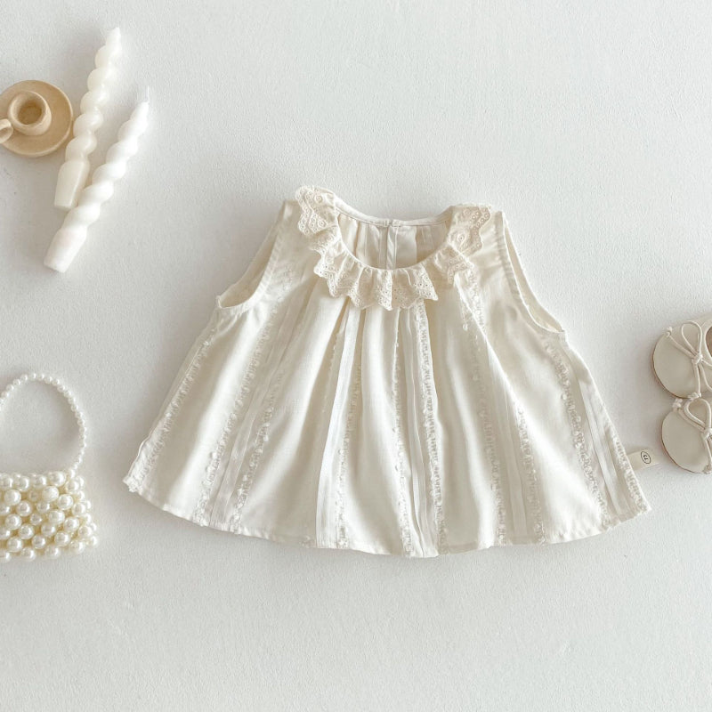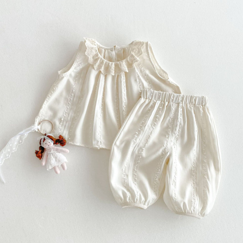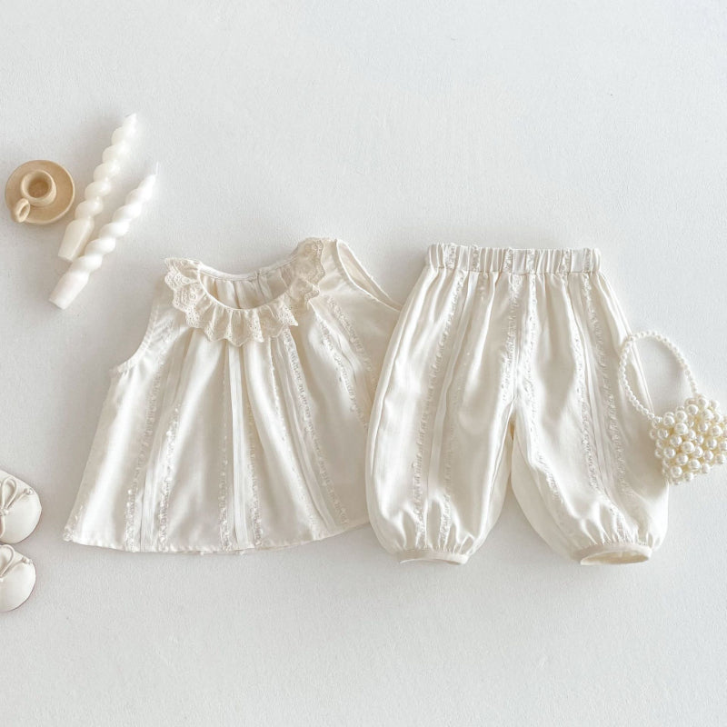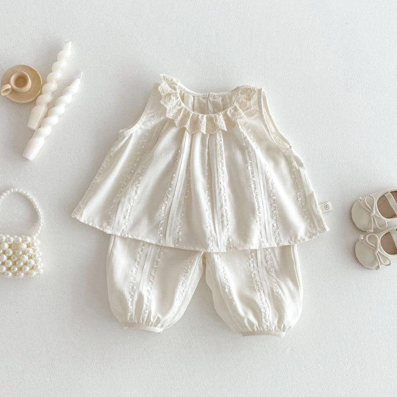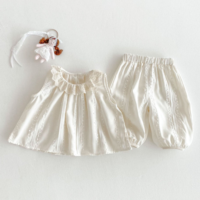 【BABY&KID】夏新作 ノースリーブレース襟トップス&パンツセットSK070205