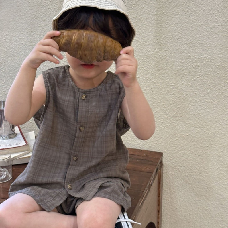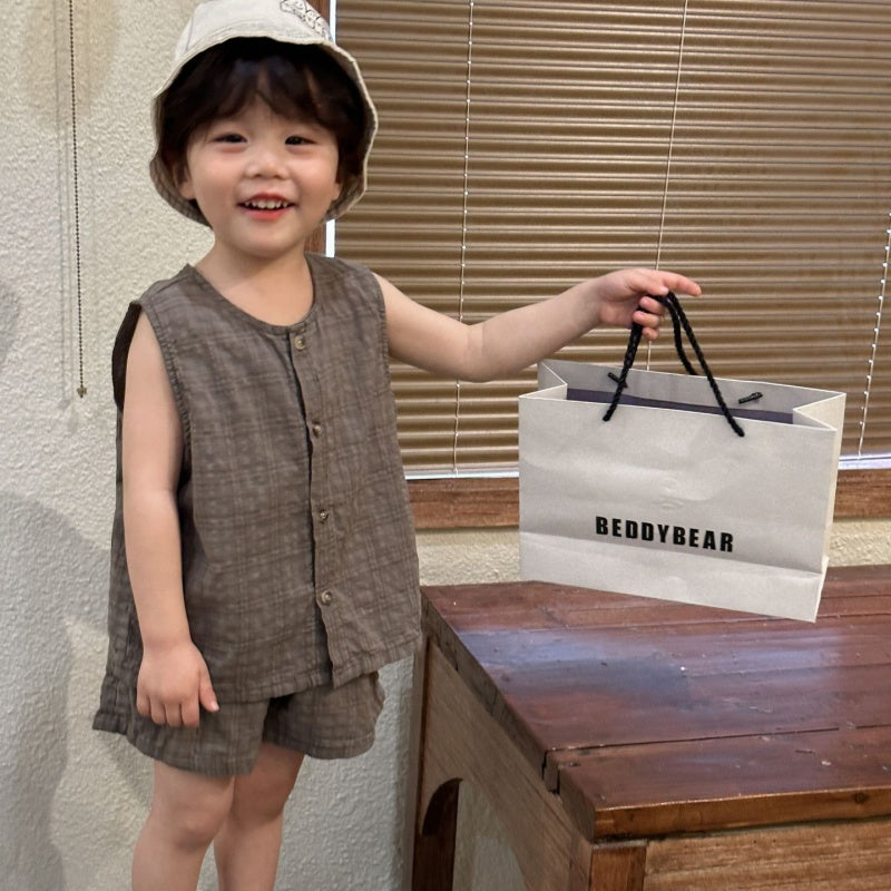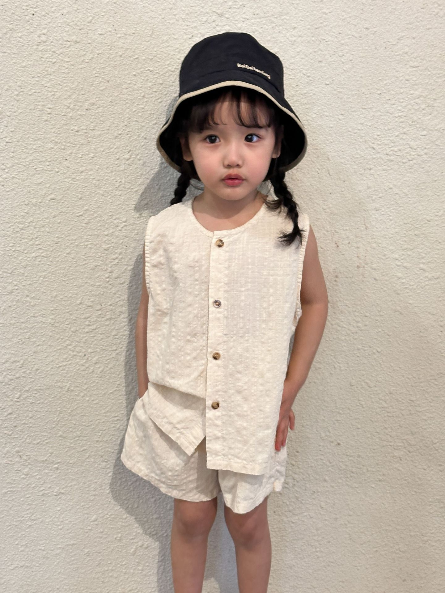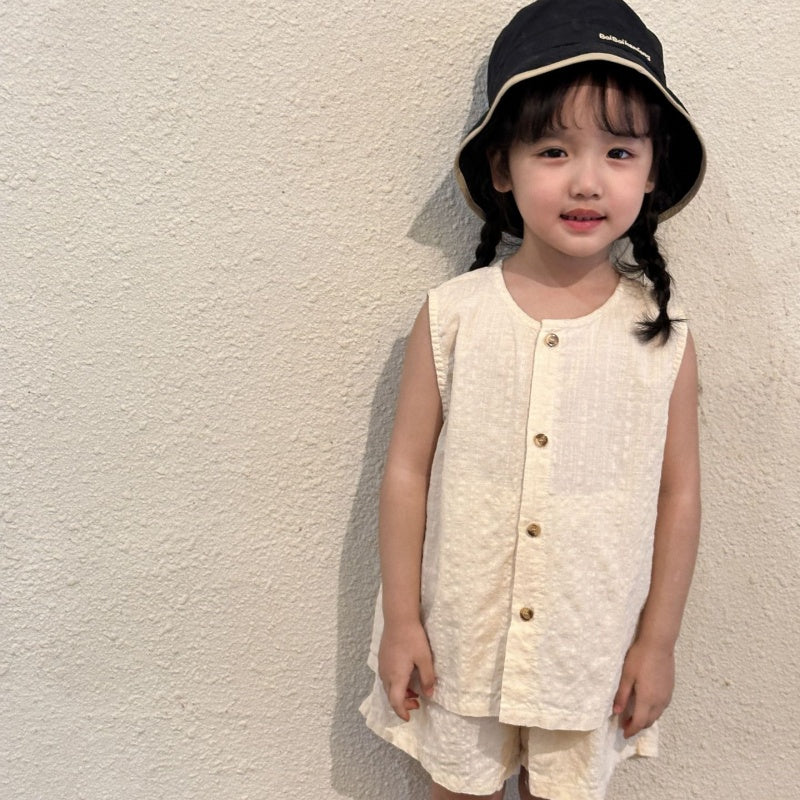 【BABY&KID】夏新作 ノースリーブ無地セットアップ SK063003