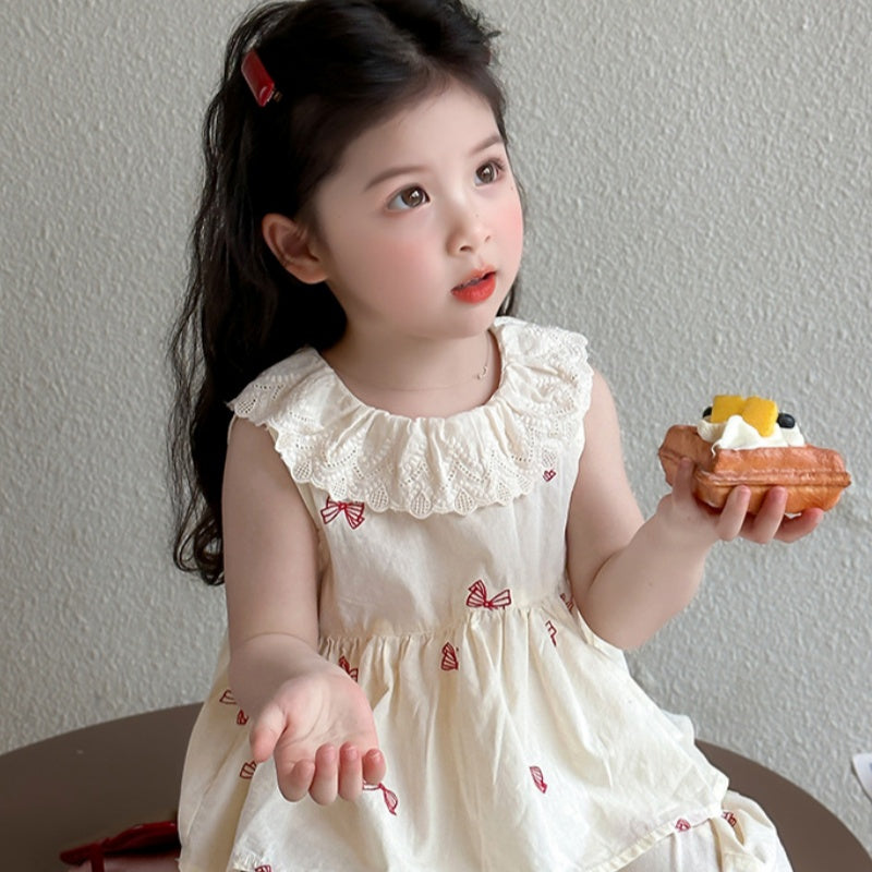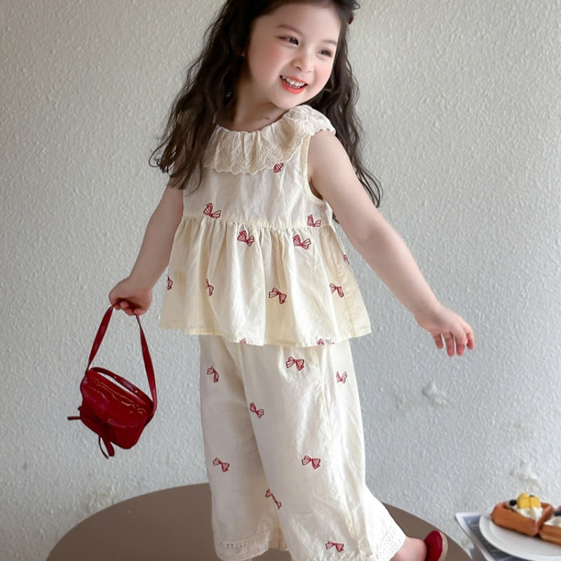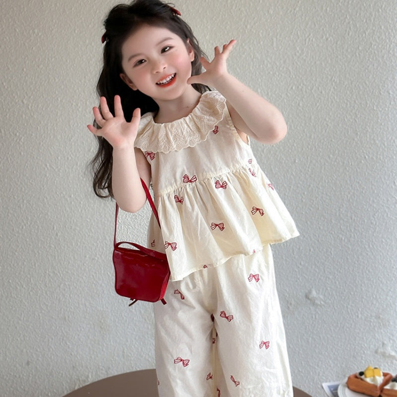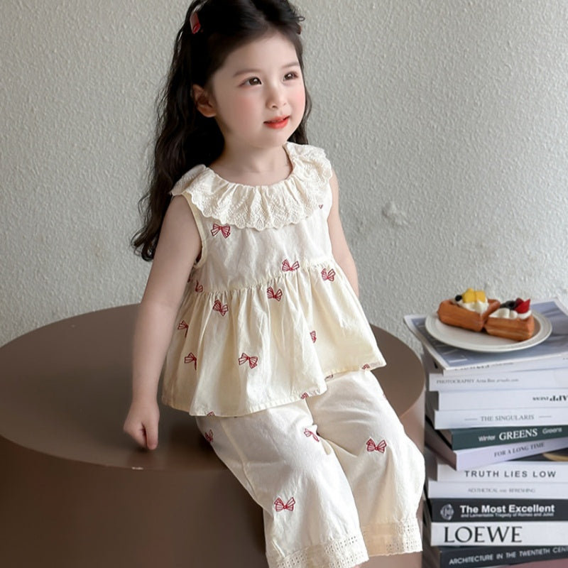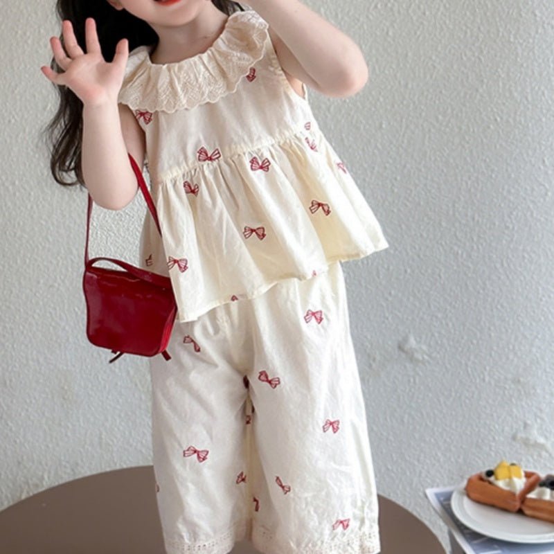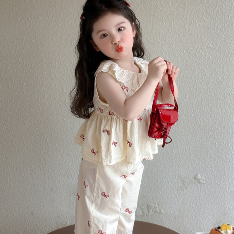 【BABY&KID】夏新作 ノースリーブ蝶結びプリントセットアップSK092630
