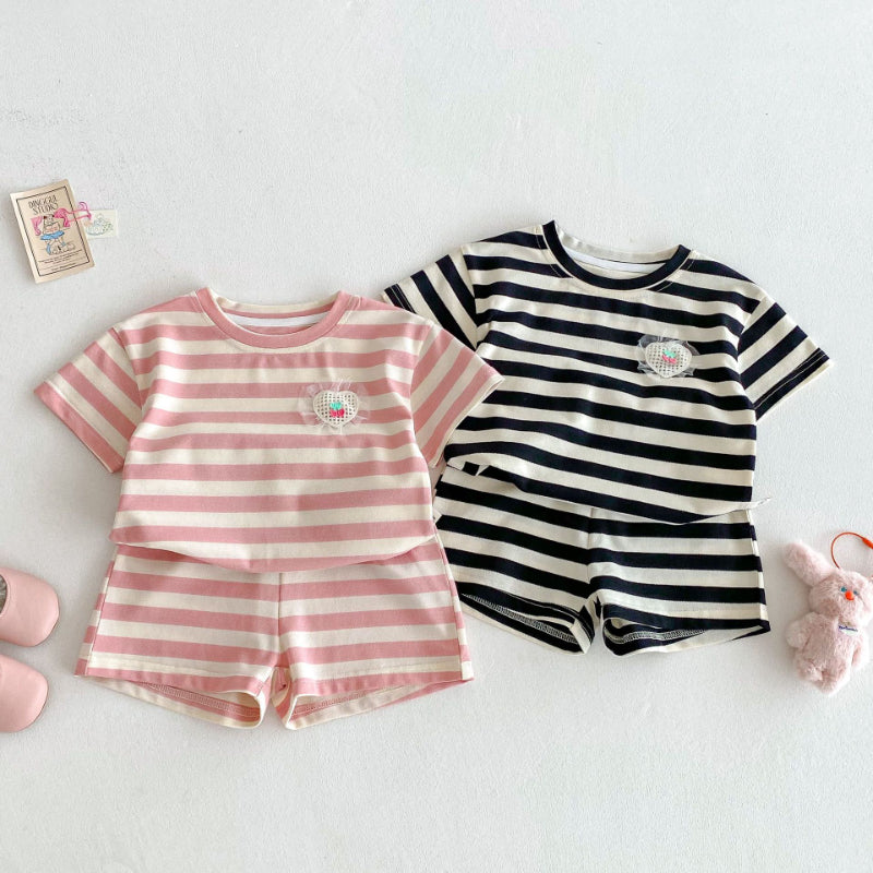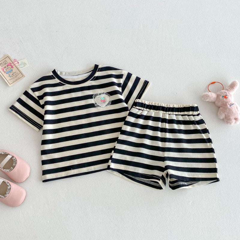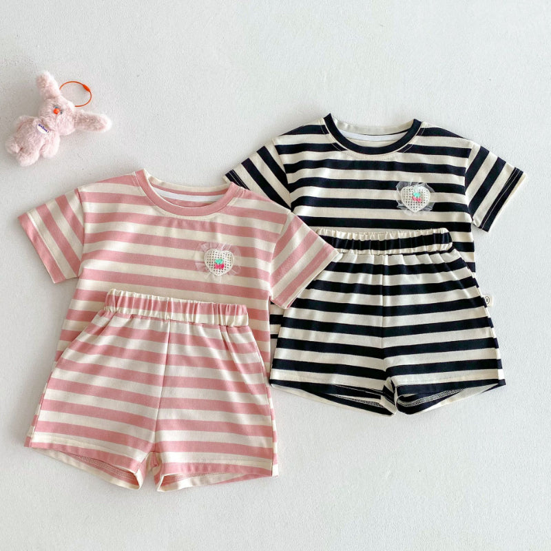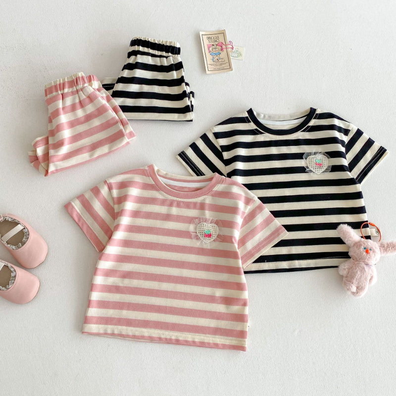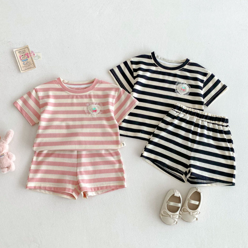 【BABY&KID】夏新作 ハートストライプセットアップSK070218