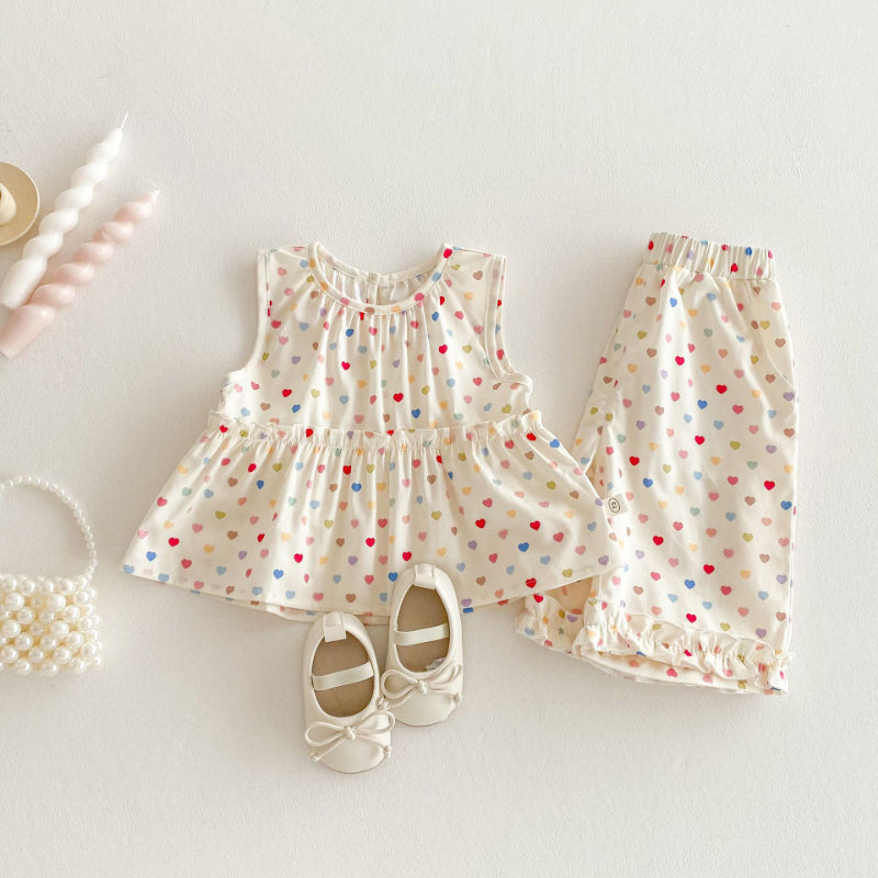 【BABY&KID】夏新作 ハートノースリーブセットSK070201