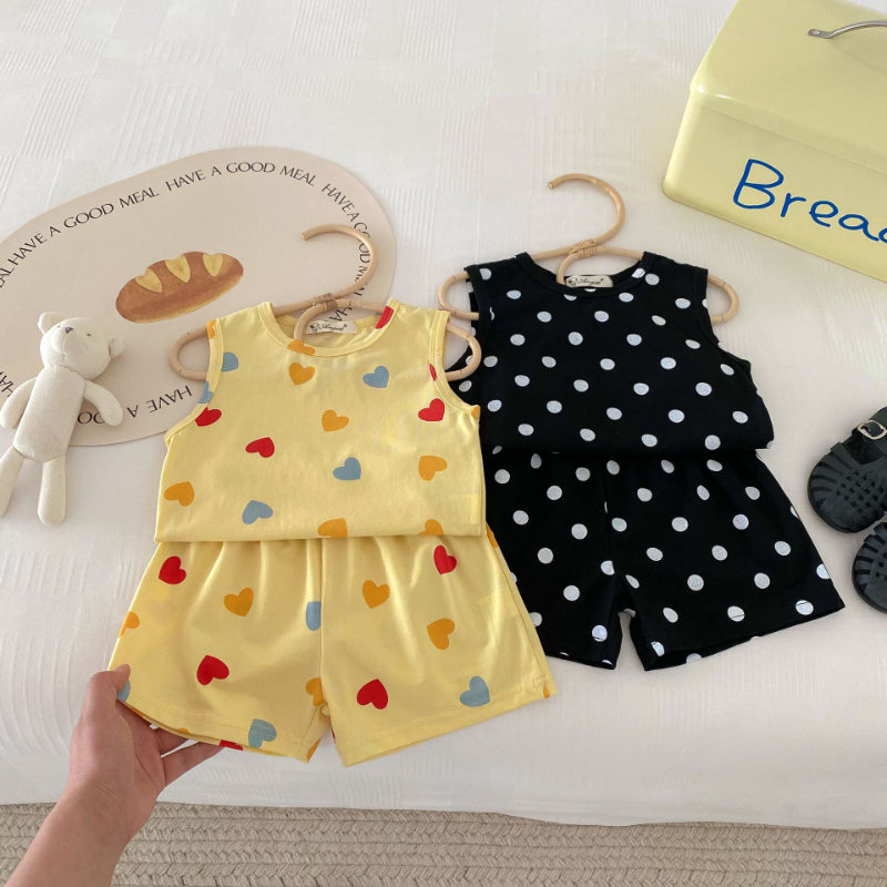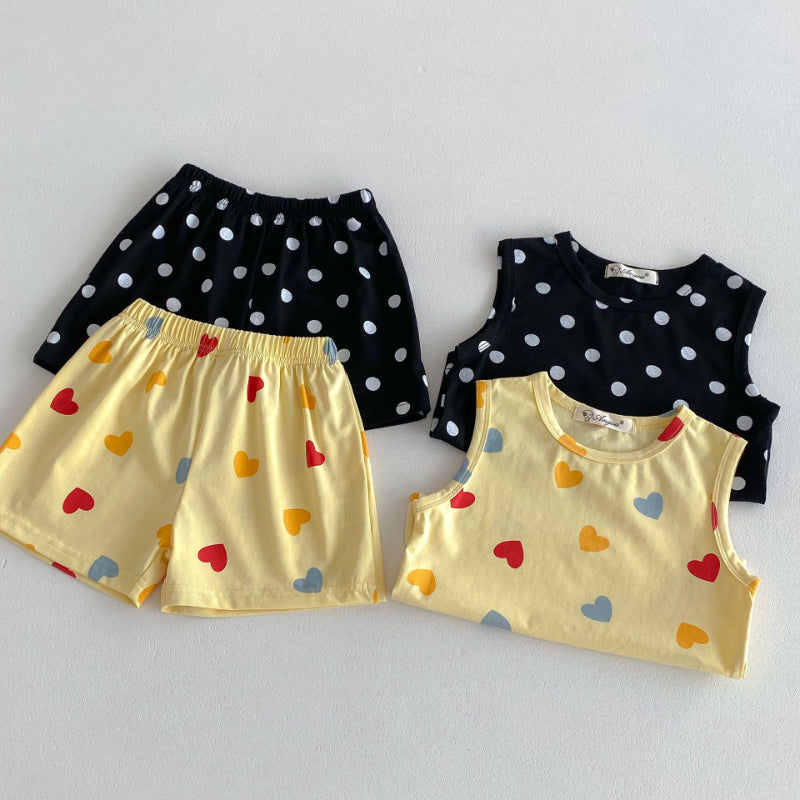 【BABY&KID】夏新作 ハート、ドットプリントセットアップSK091211