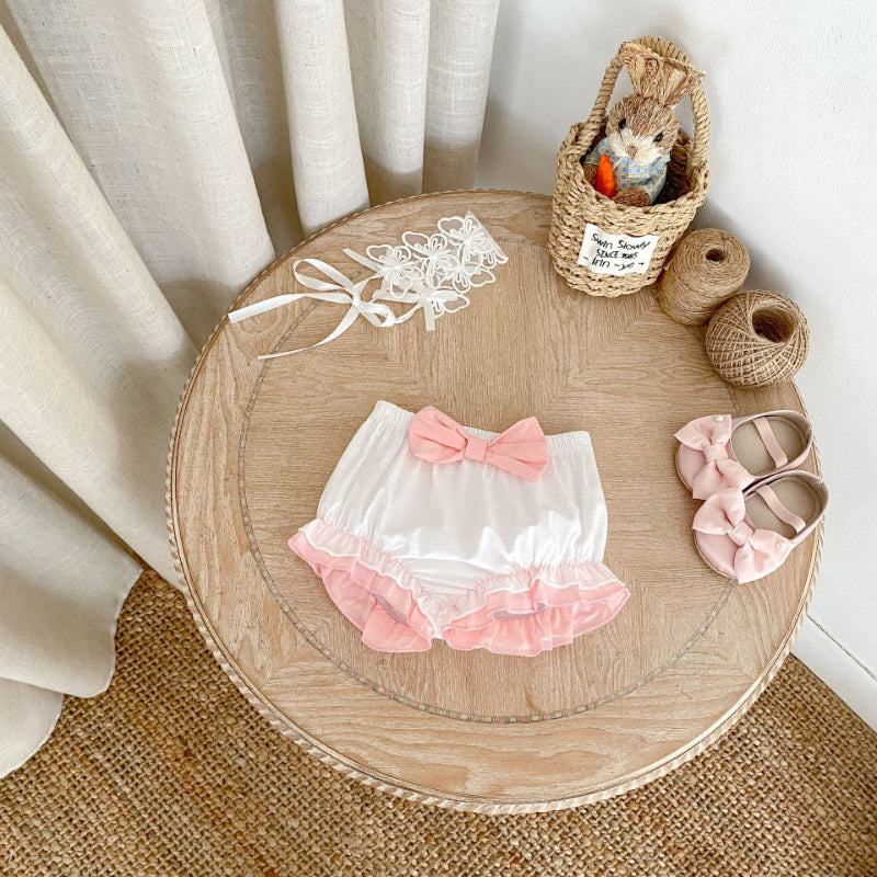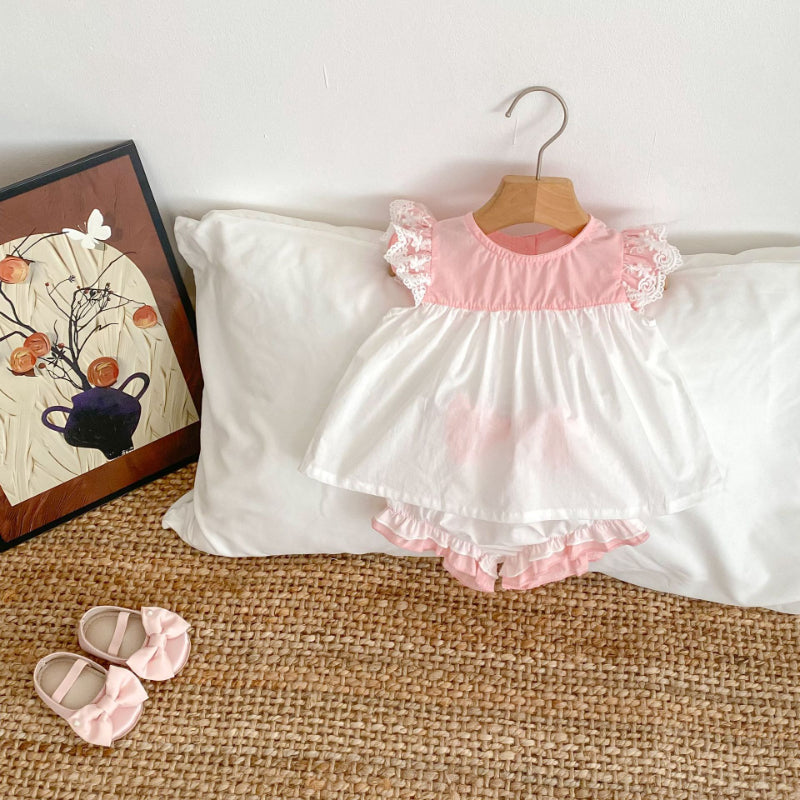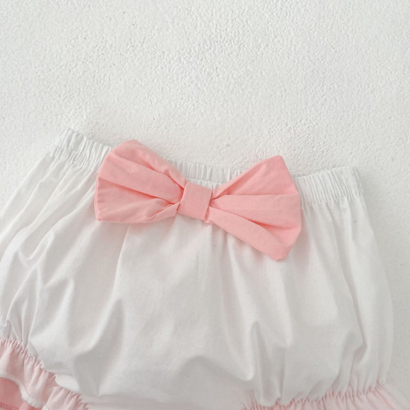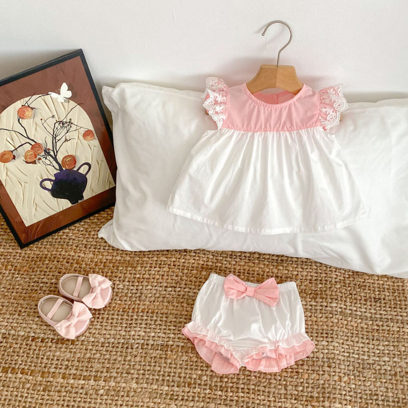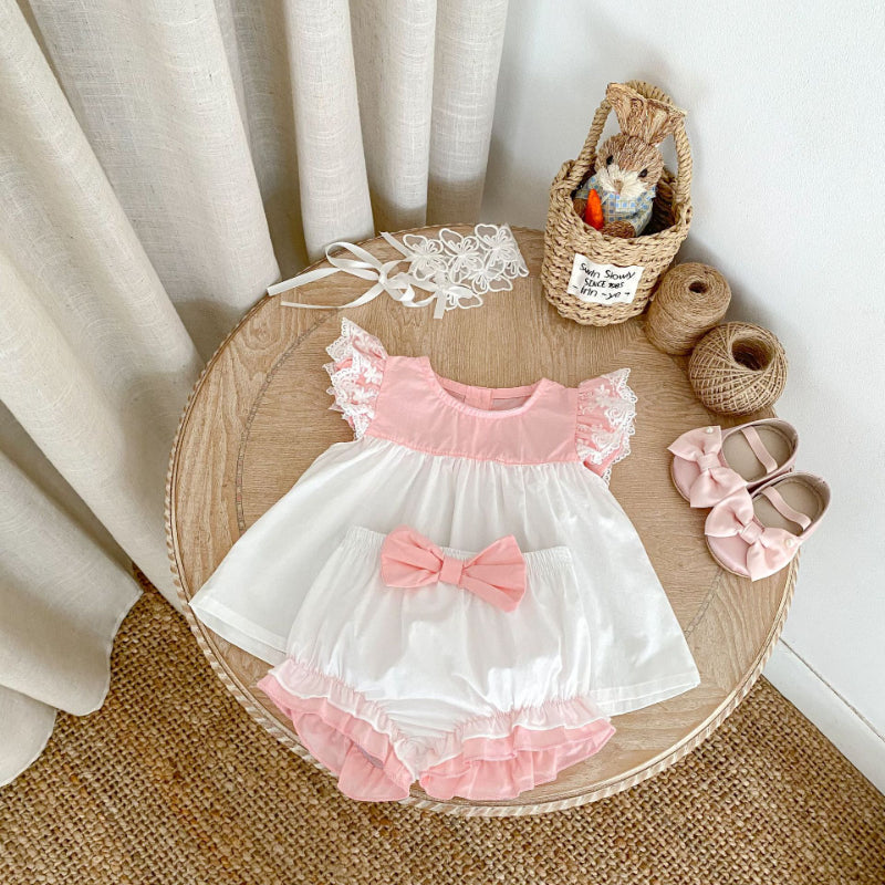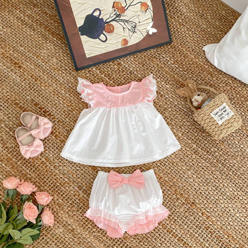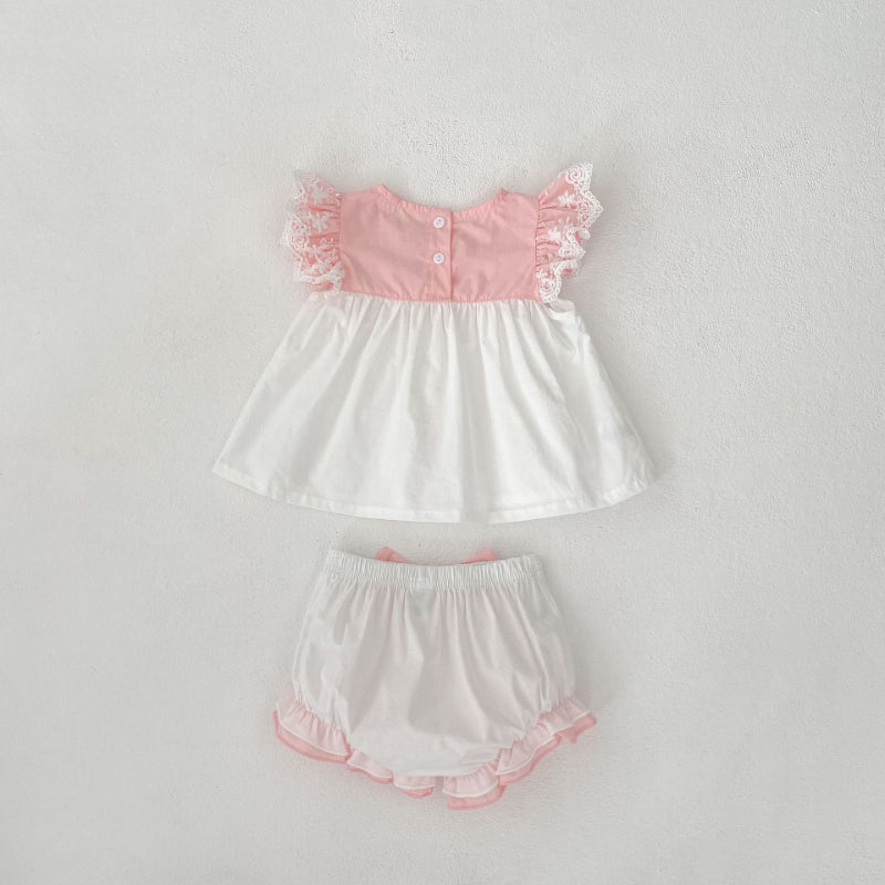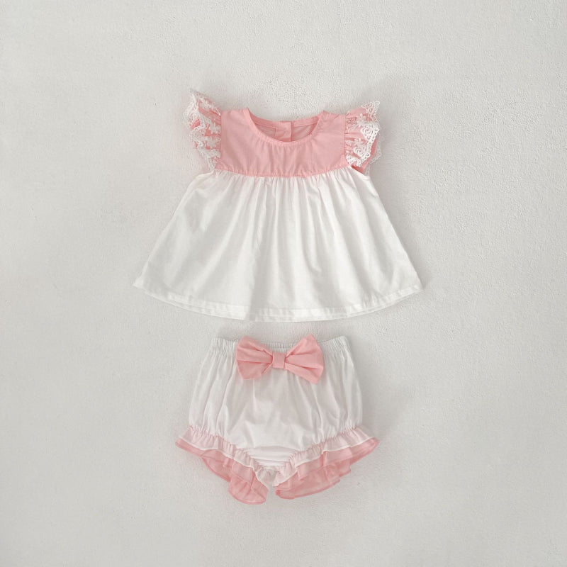 【BABY&KID】夏新作 バイカラーフリル袖トップス&ショートパンツSK081525