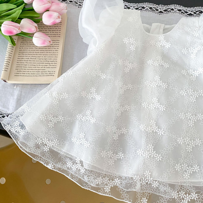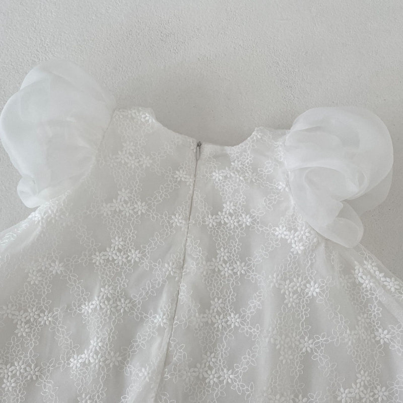 【BABY&KID】夏新作 パフスリーブレースワンピースSK010234