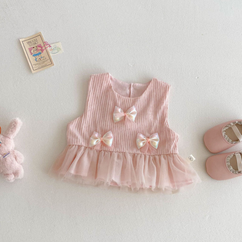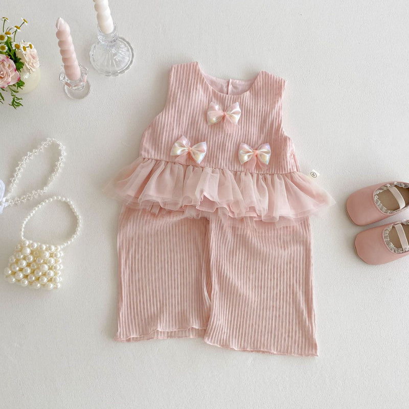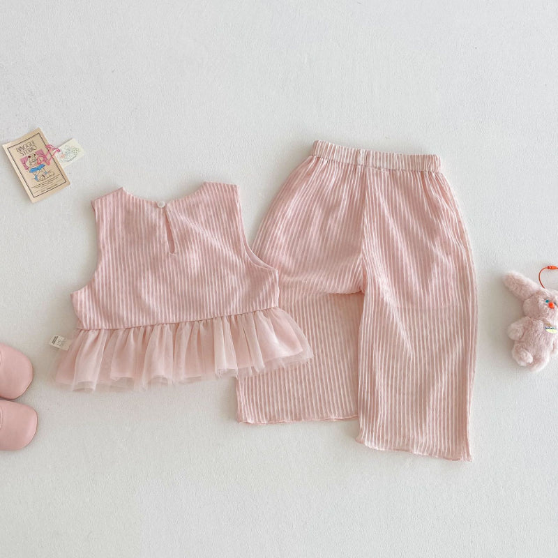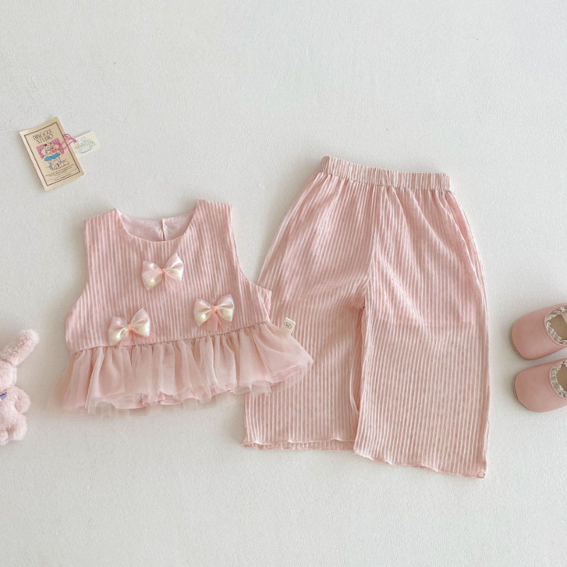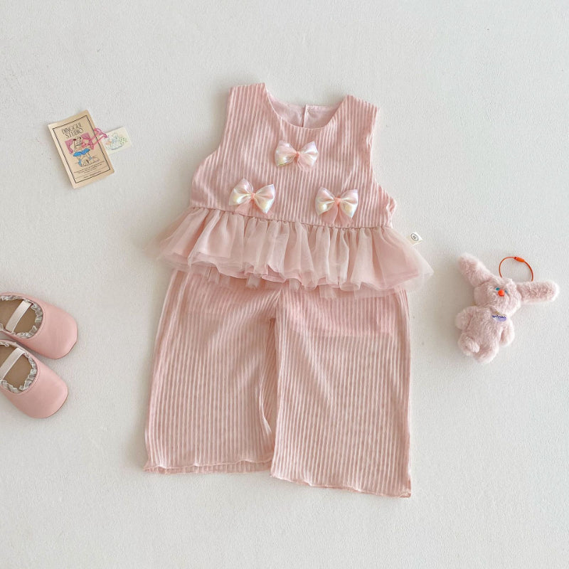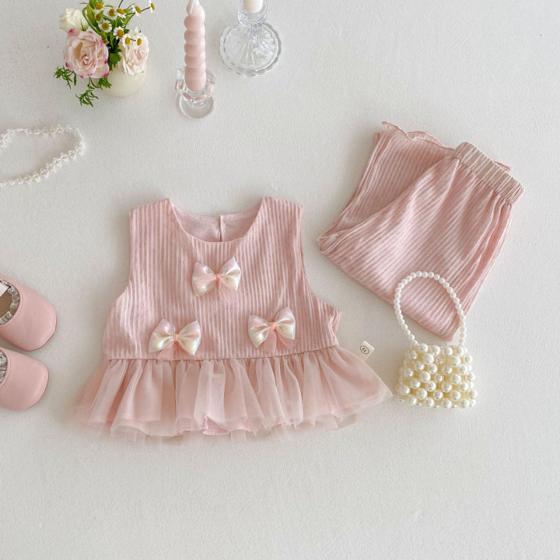 【BABY&KID】夏新作 ピンクリボントップス&パンツセットSK070204