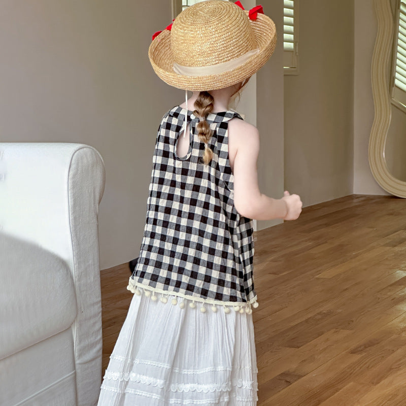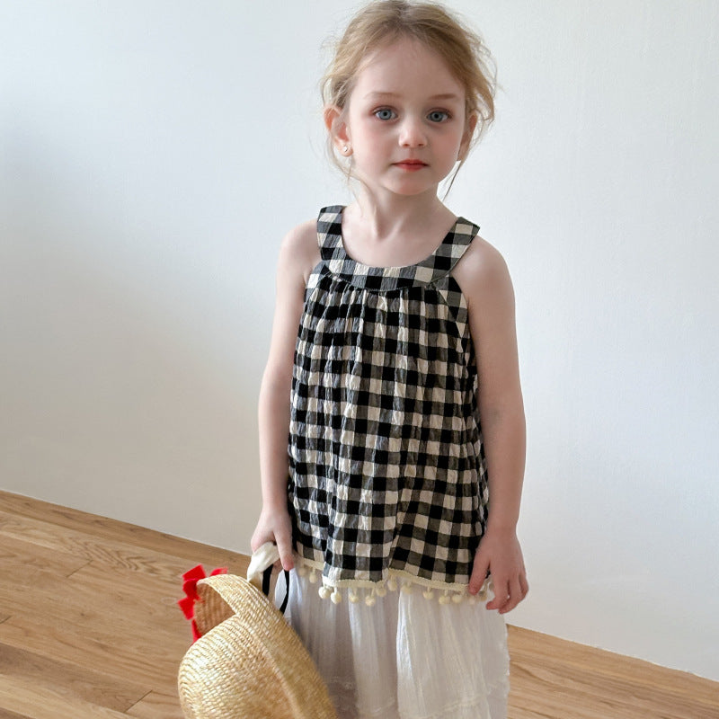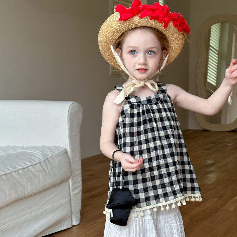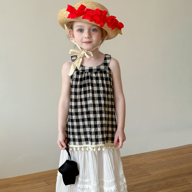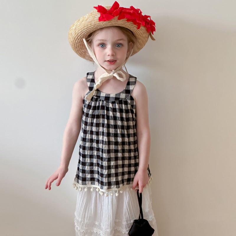 【BABY&KID】夏新作 フリルノースリーブチェックトップスSKO71112
