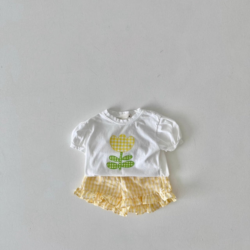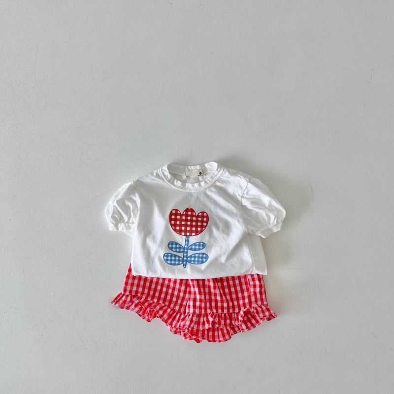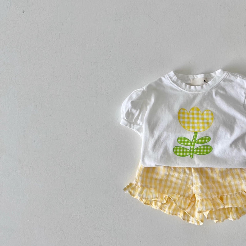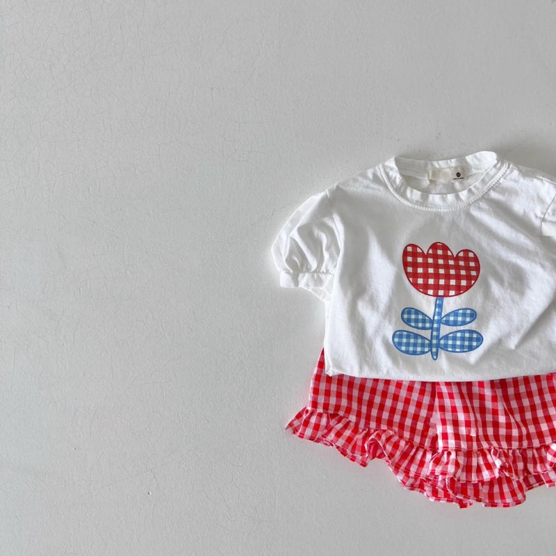【BABY&KID】夏新作 プリントTシャツ&チェックフリルショートパンツSK082720