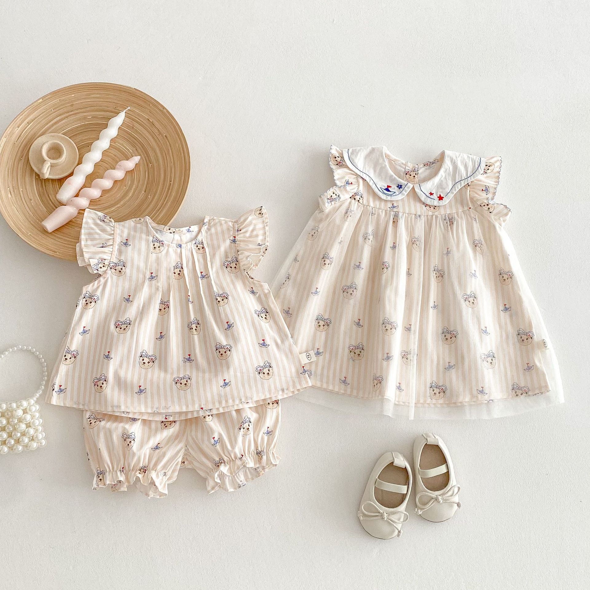 【BABY&KID】夏新作 ベア柄フリルワンピース、セットアップSK061604