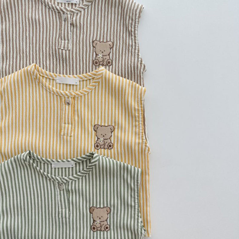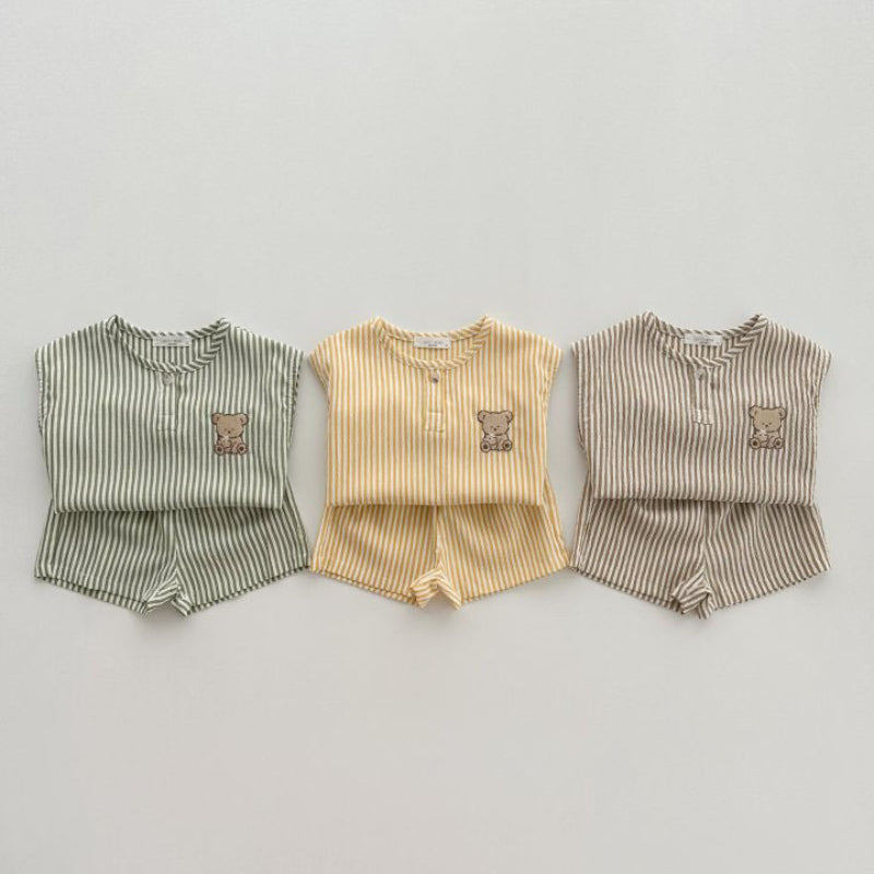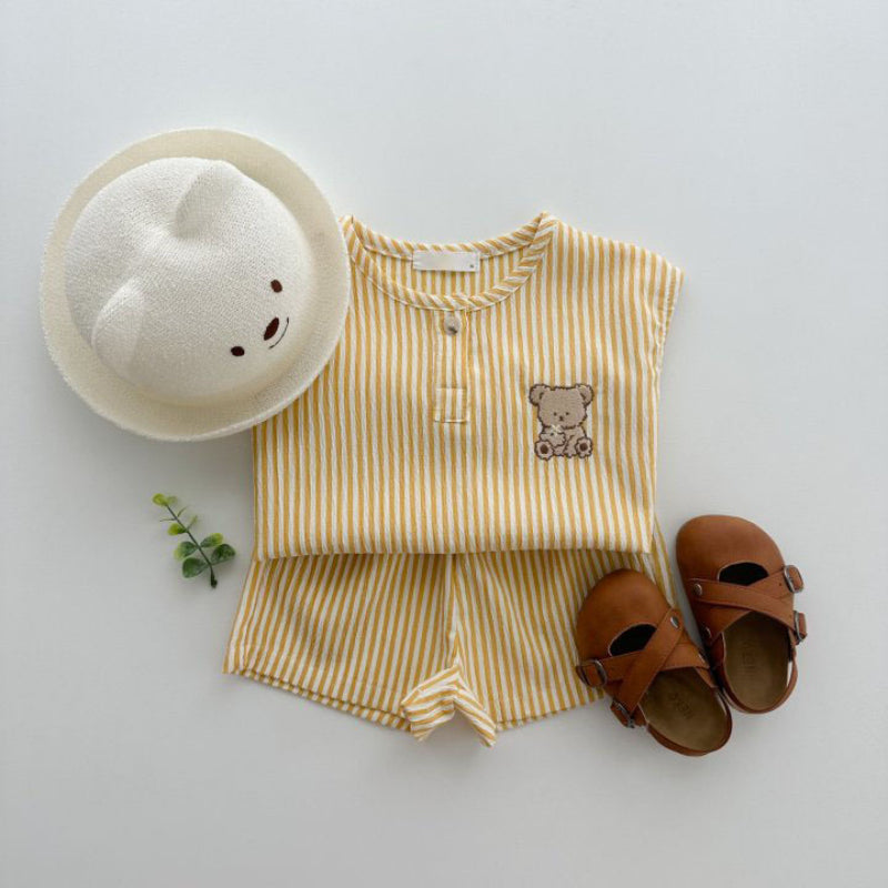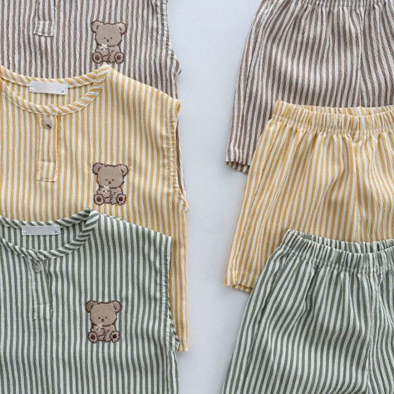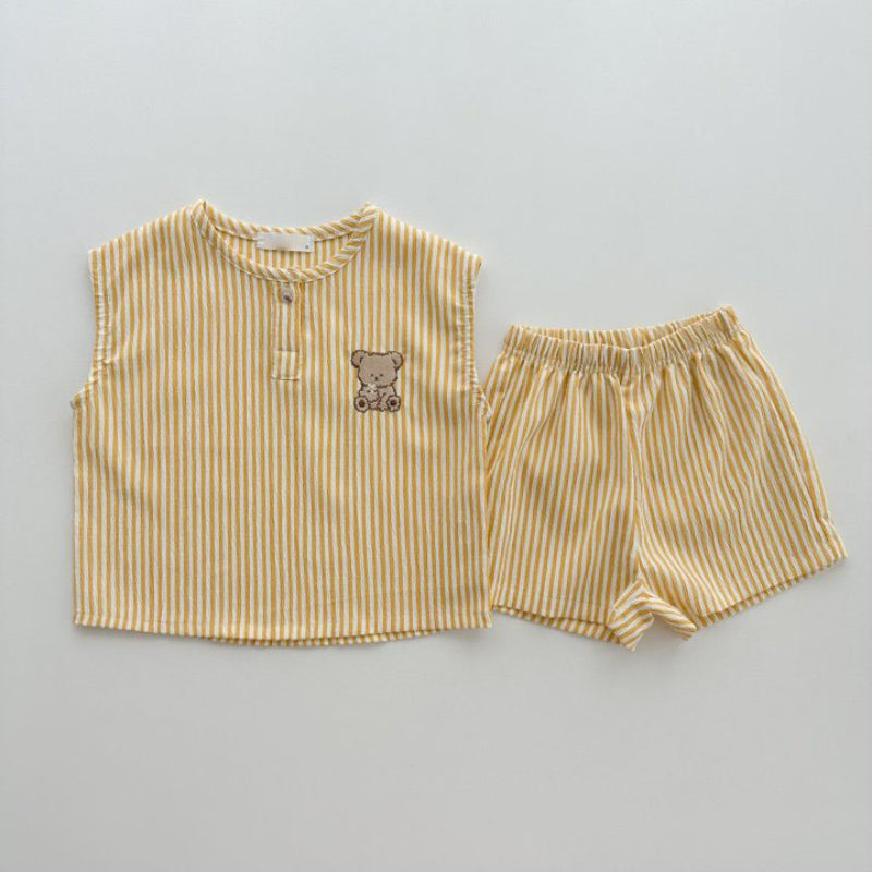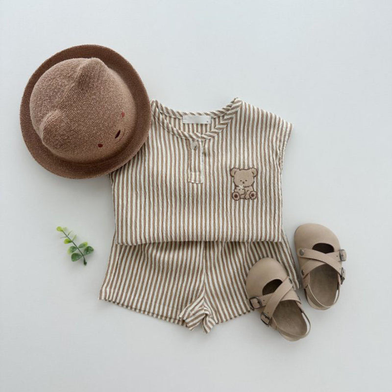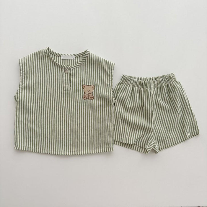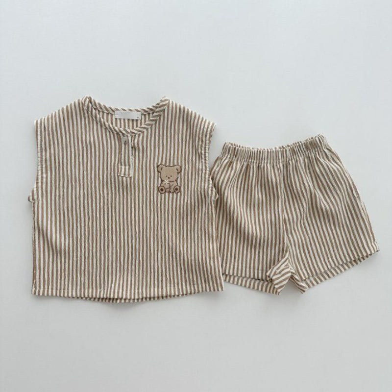 【BABY&KID】夏新作 ボーダーノースリーブベアセットアップSK091205