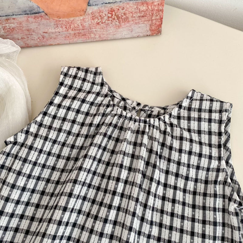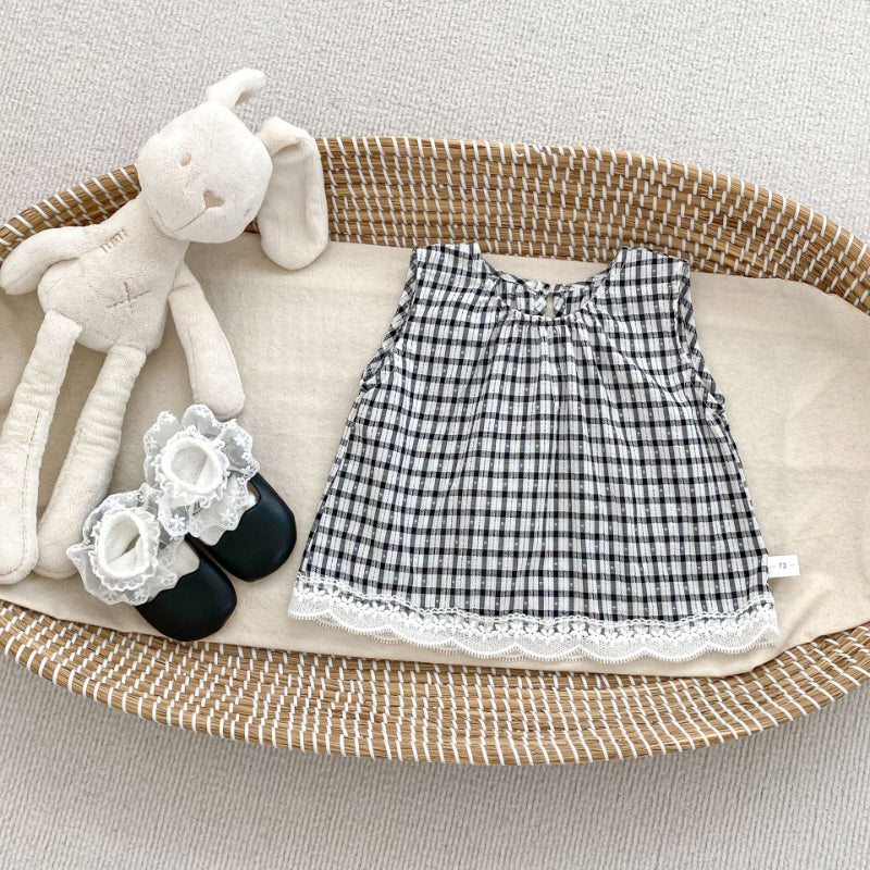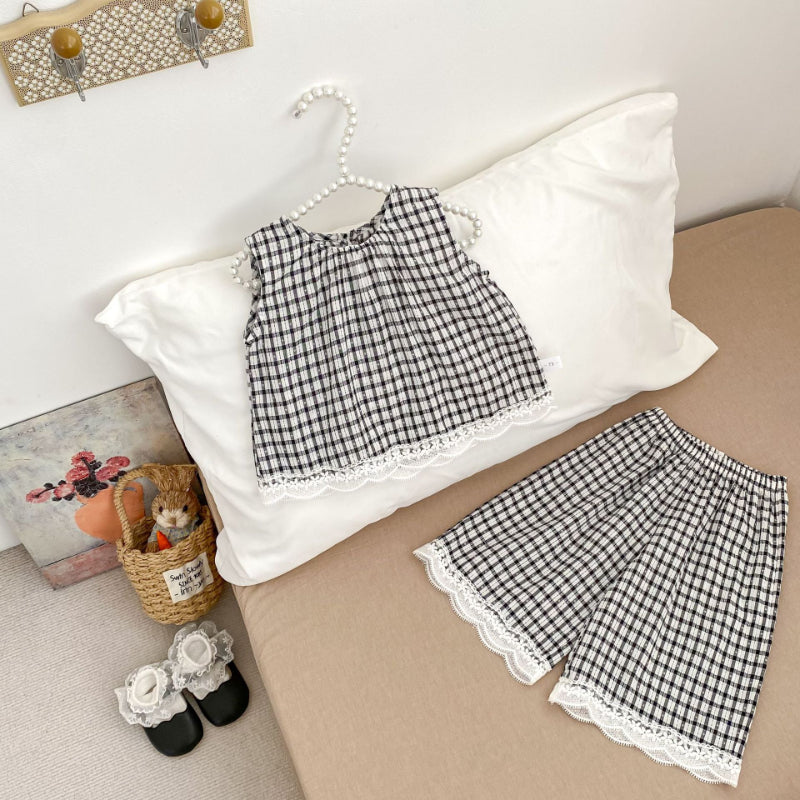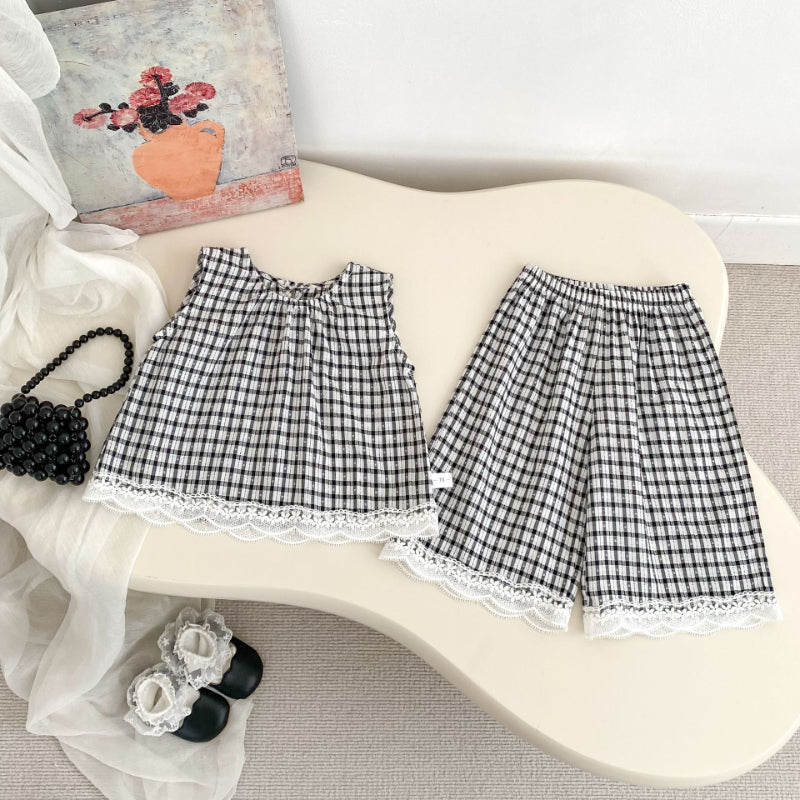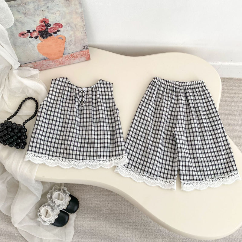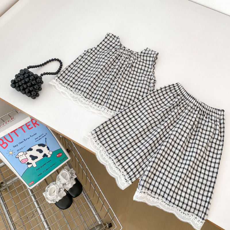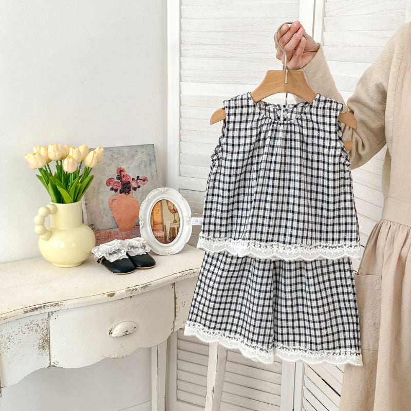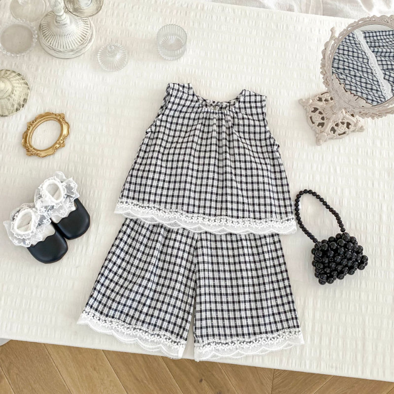 【BABY&KID】夏新作 レースチェック柄ノースリーブセットアップSK080117