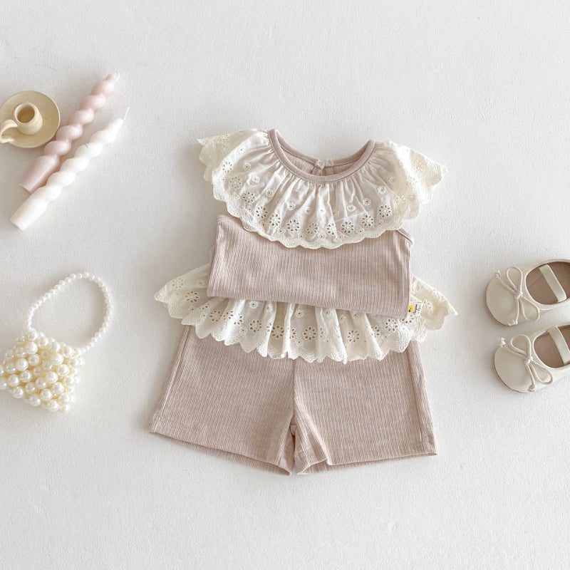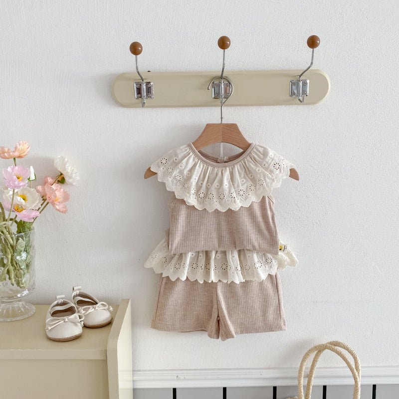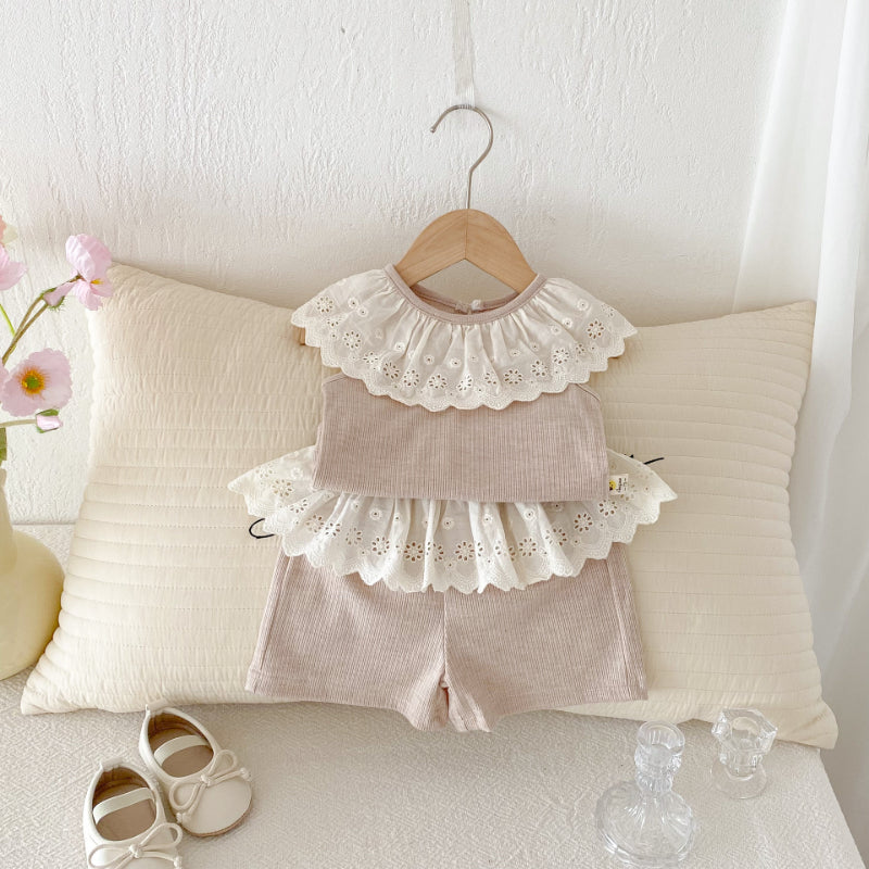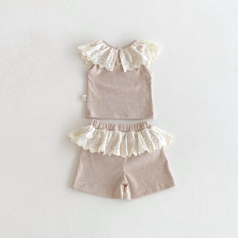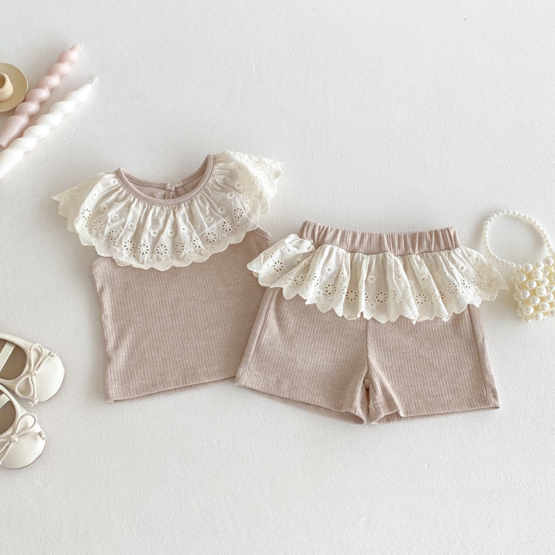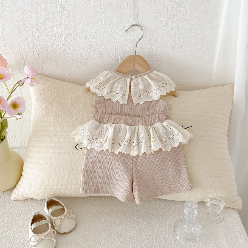 【BABY&KID】夏新作 レースフリル襟セットアップSK082610