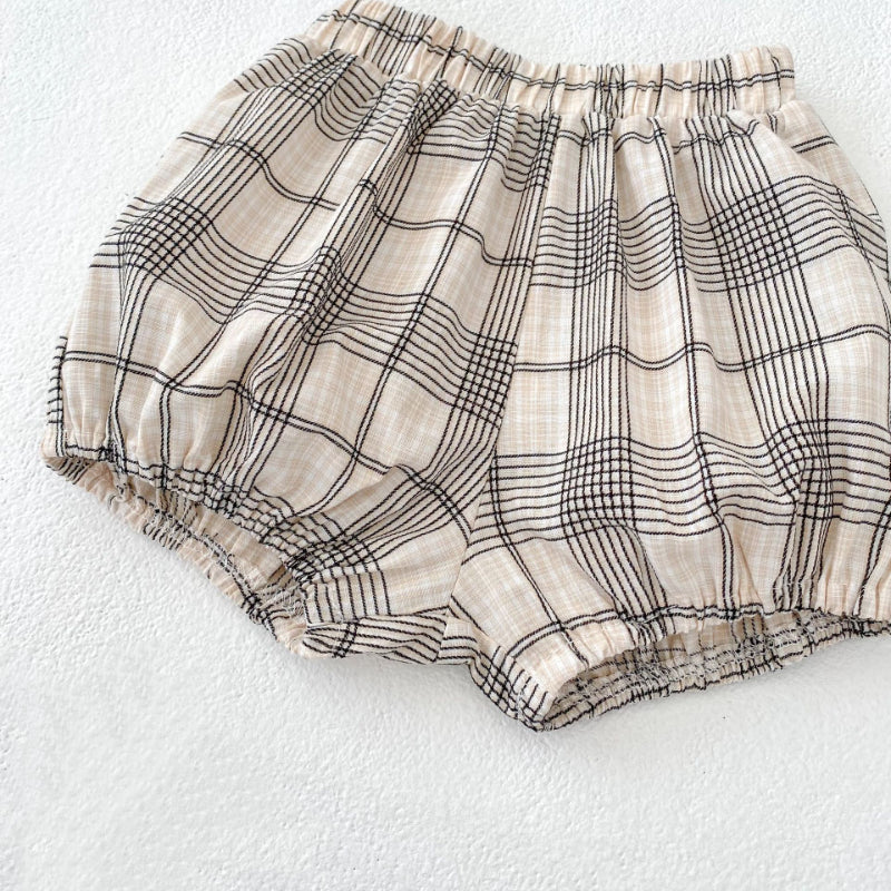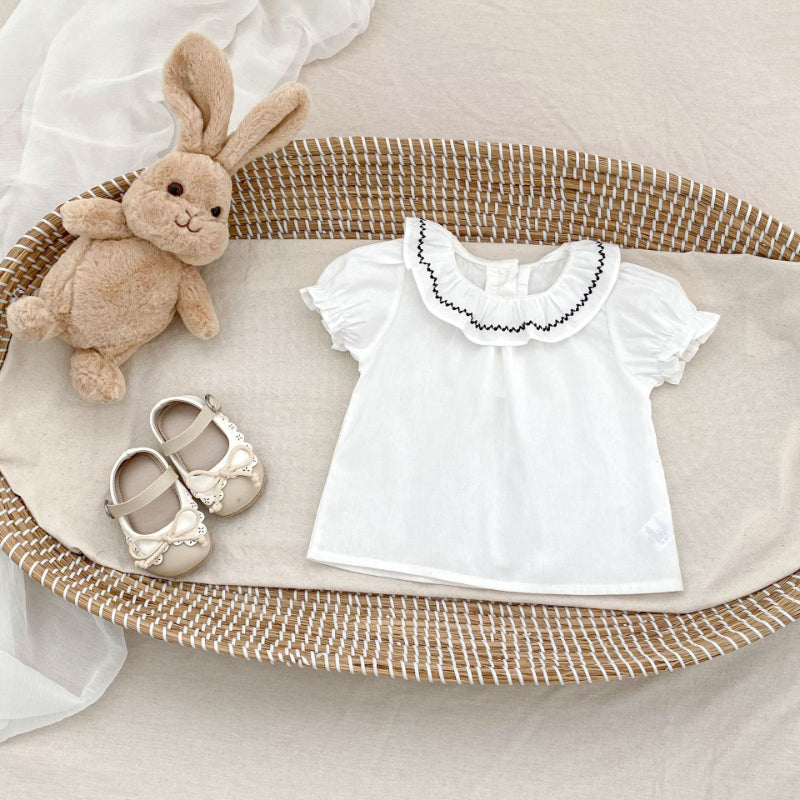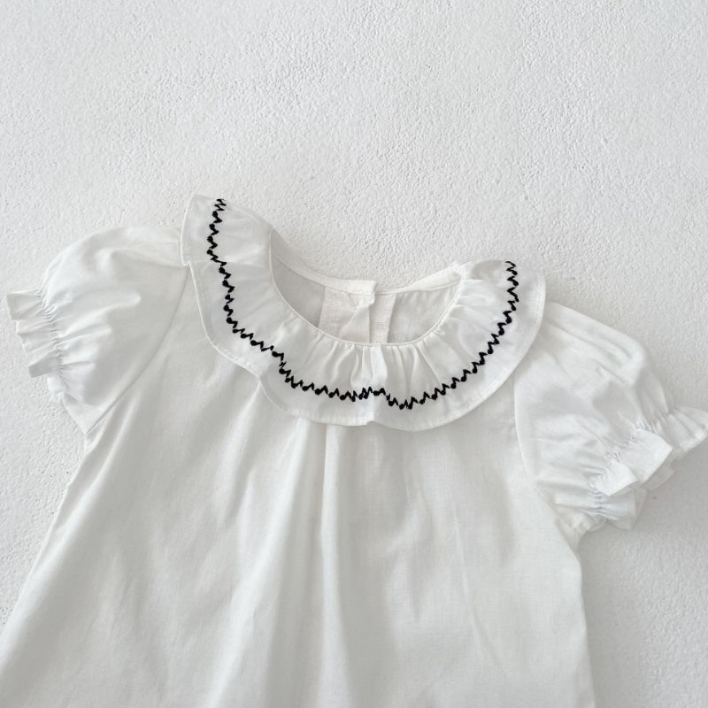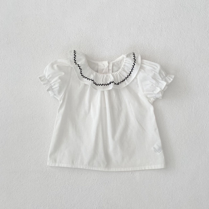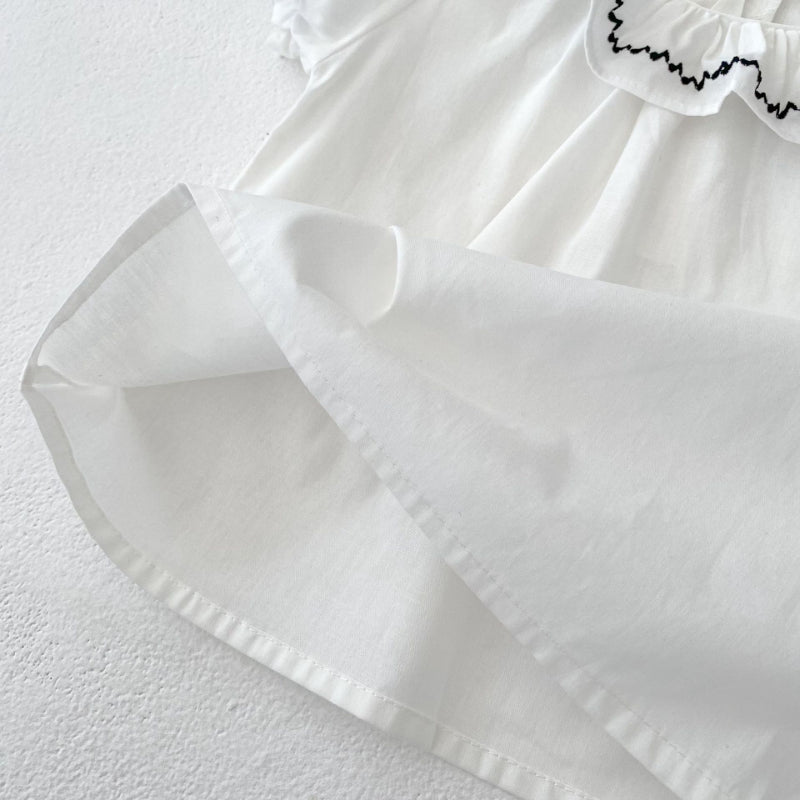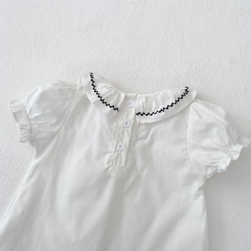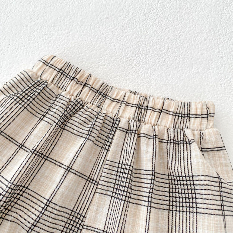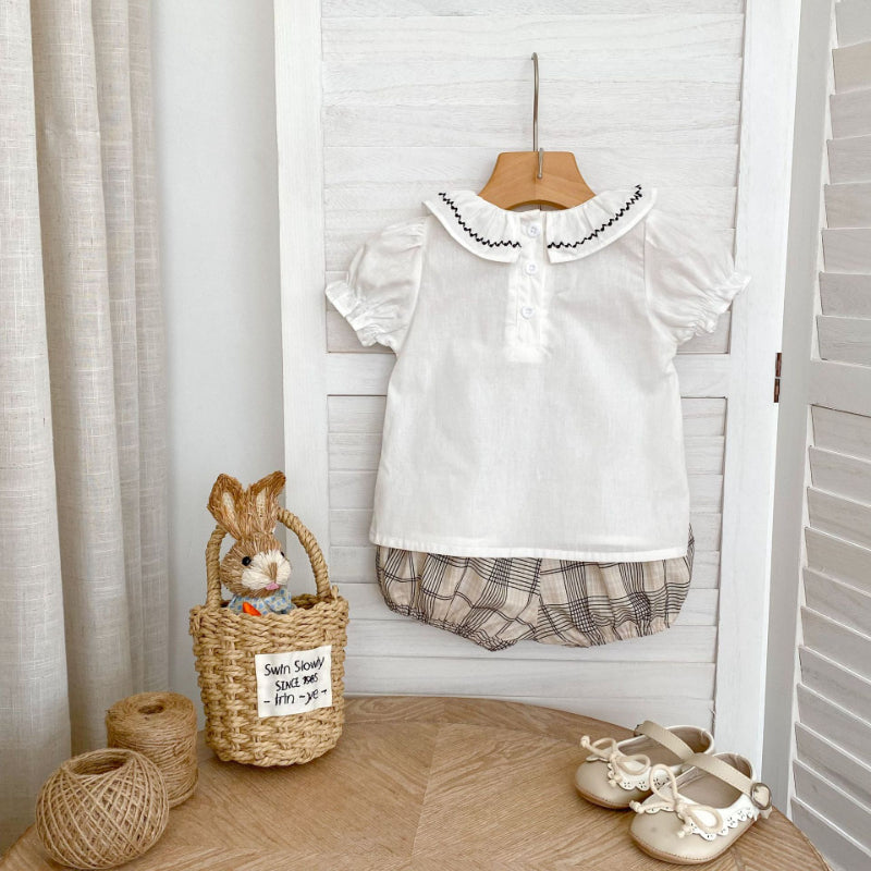 【BABY&KID】夏新作 刺繍フリル襟トップス&チェックショートパンツSK081524