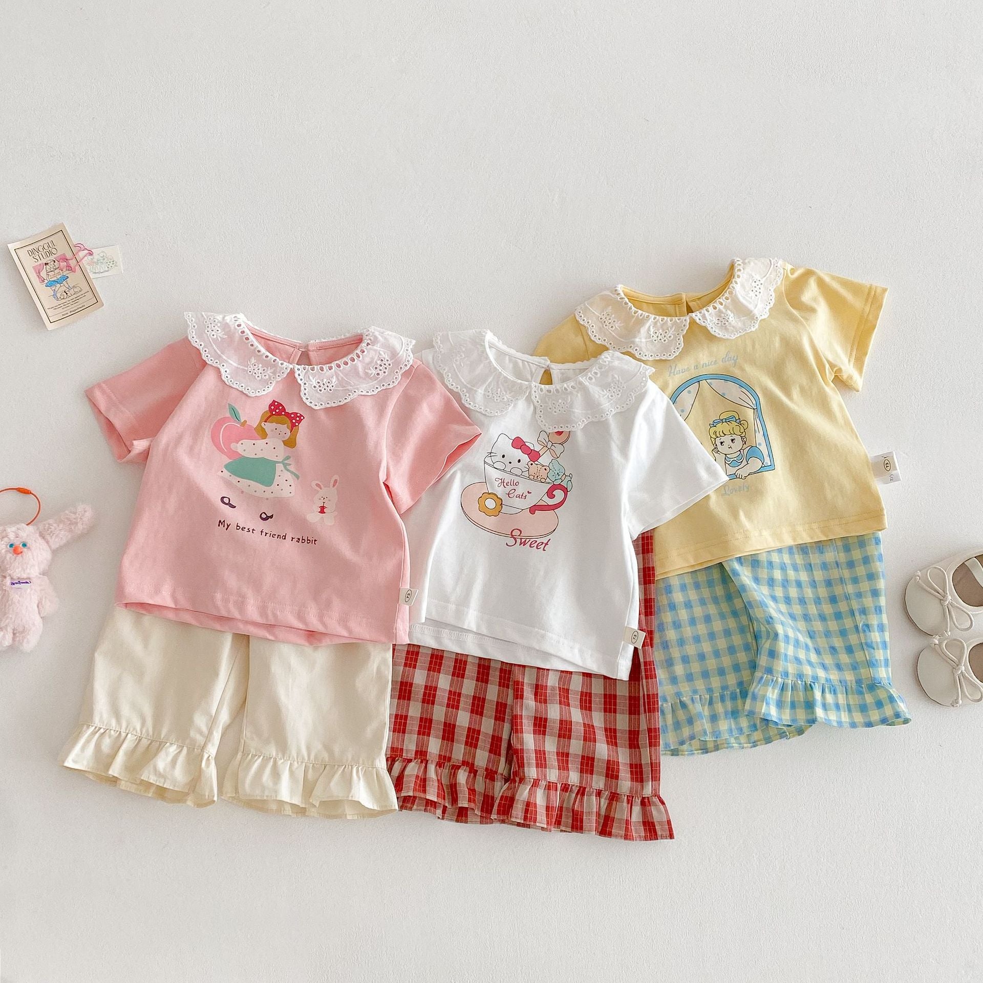 【BABY&KID】夏新作 可愛いチェックパンツ、可愛い半袖SK061812