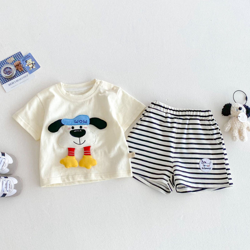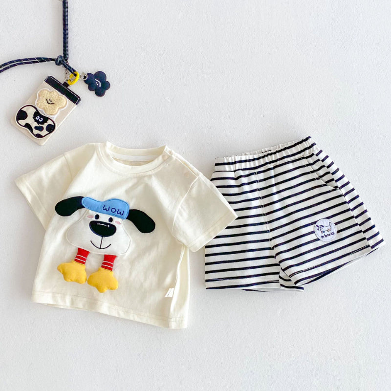 【BABY&KID】夏新作 可愛いドッグロゴTシャツ、ストライプのショートパンツSKO71208