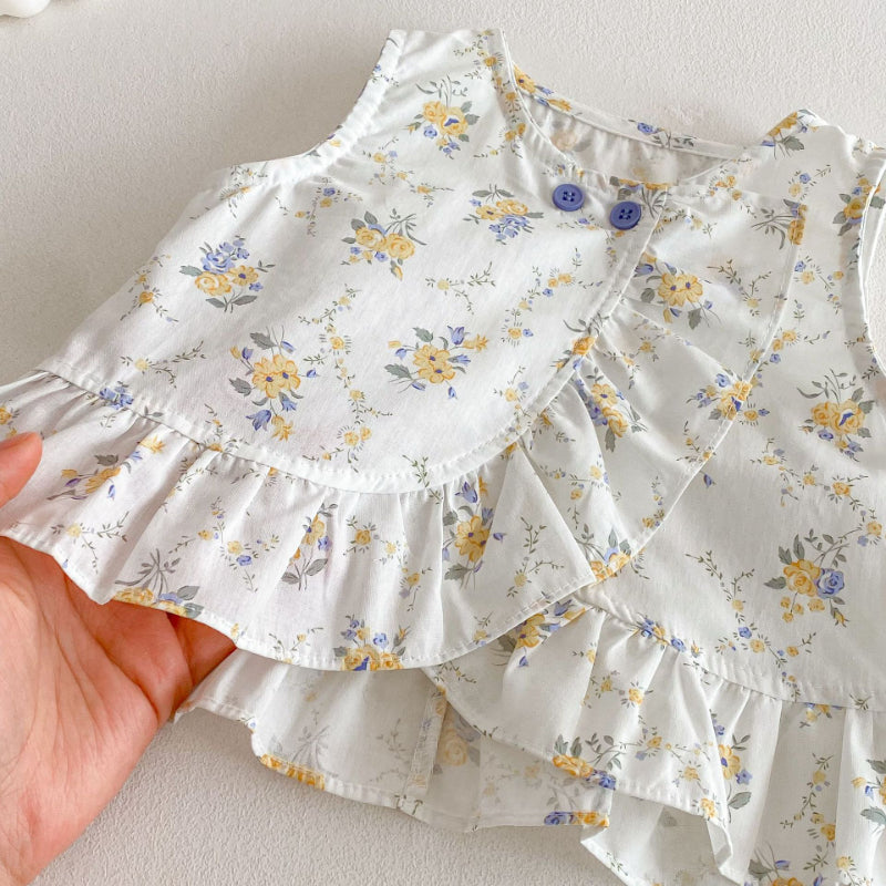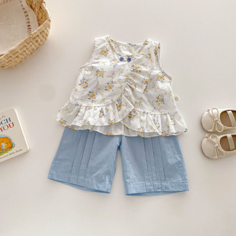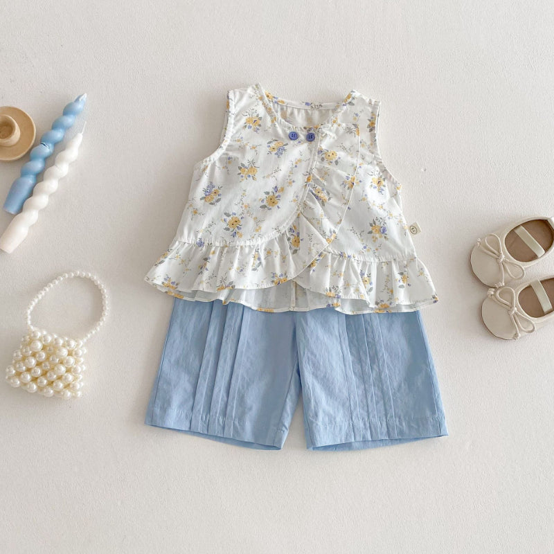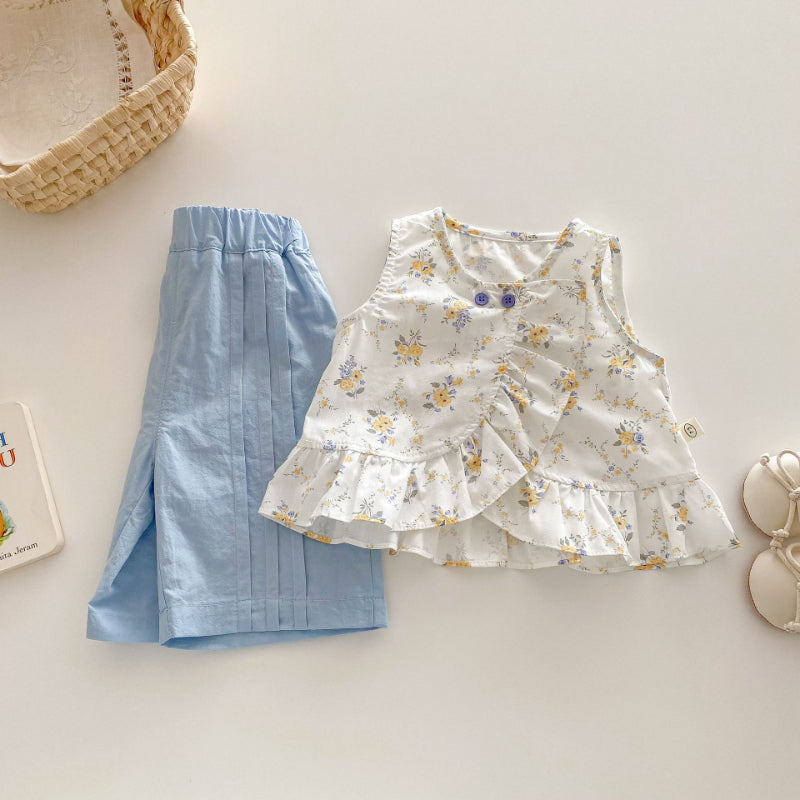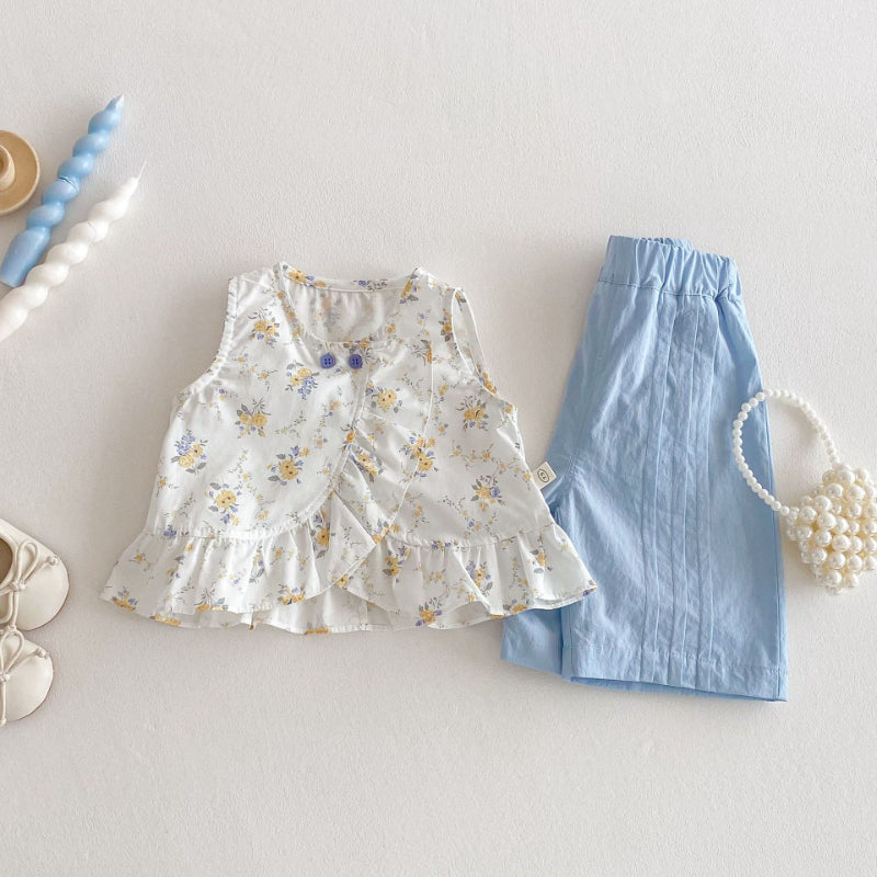 【BABY&KID】夏新作 小花柄トップス&無地ロングパンツセットSK070206