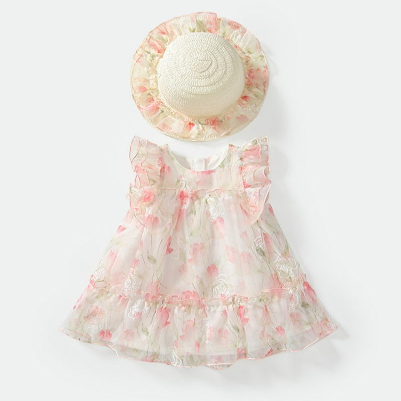 【BABY&KID】夏新作 花柄ピンクワンピース&帽子SK091931