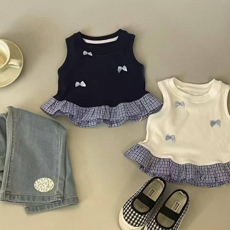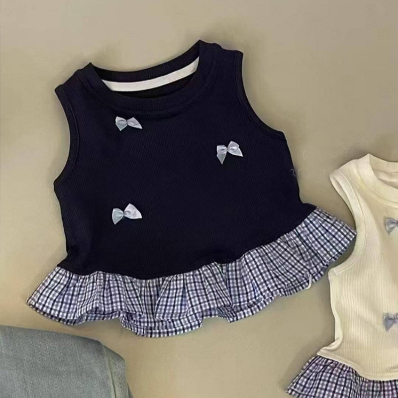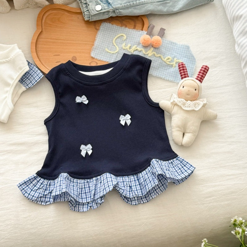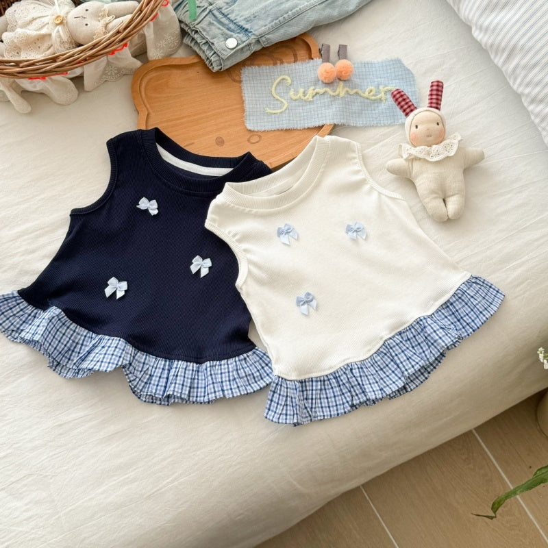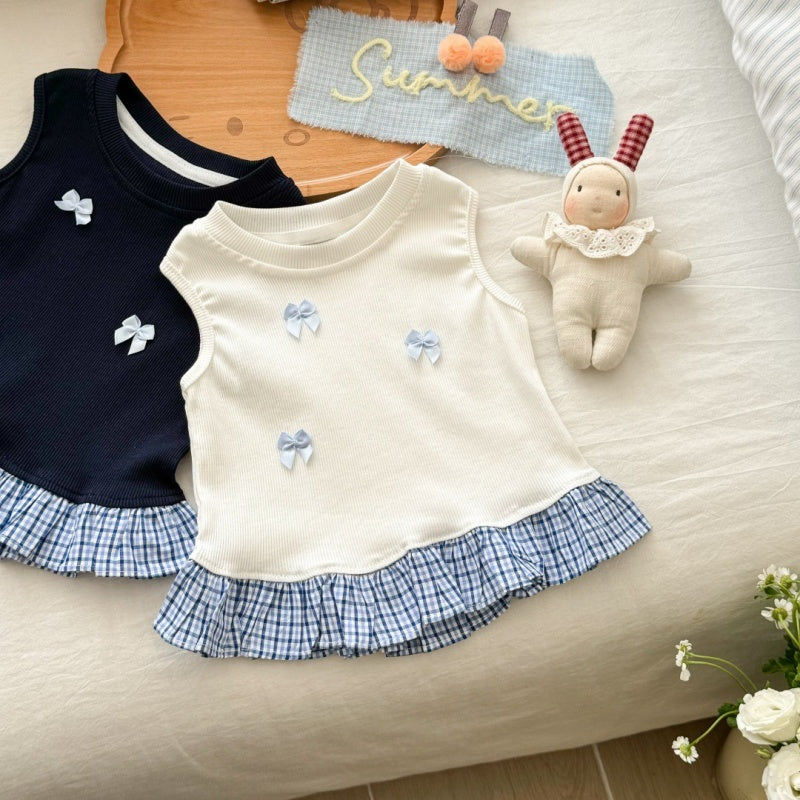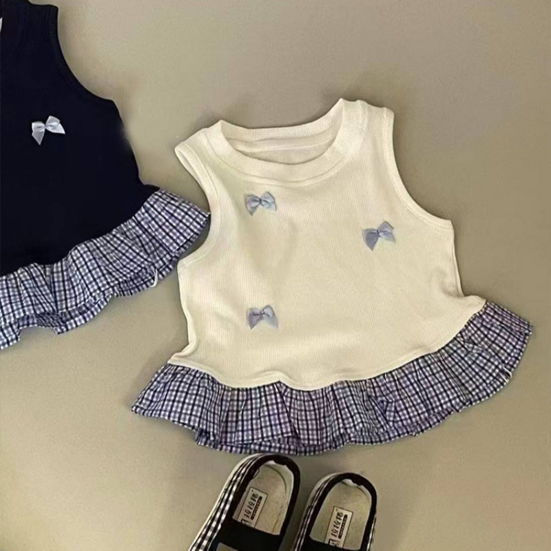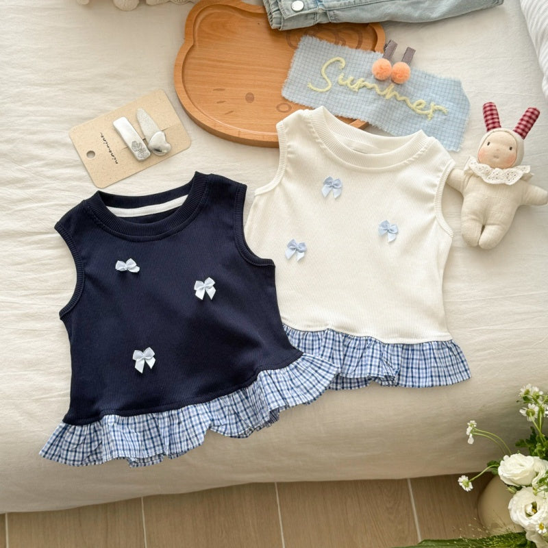 【BABY&KID】夏新作 蝶結び切替チェックフリルトップスTシャツSK092227