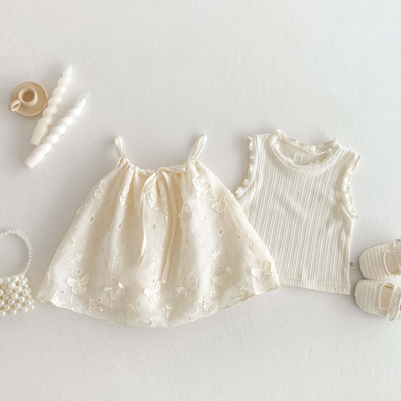 【BABY&KID】夏新作 蝶結び刺繡可愛いワンピースSK071518