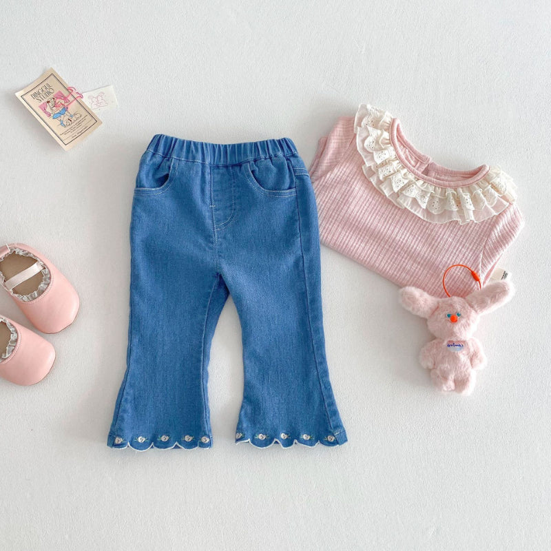 【BABY&KID】夏新作 裾刺繍入りデニムパンツSK070603