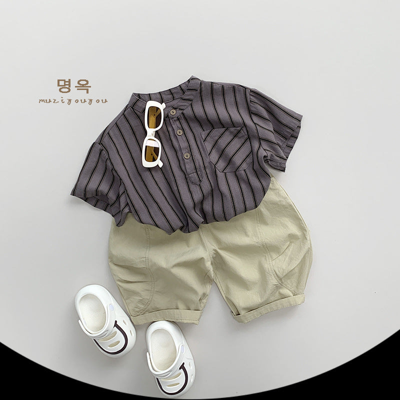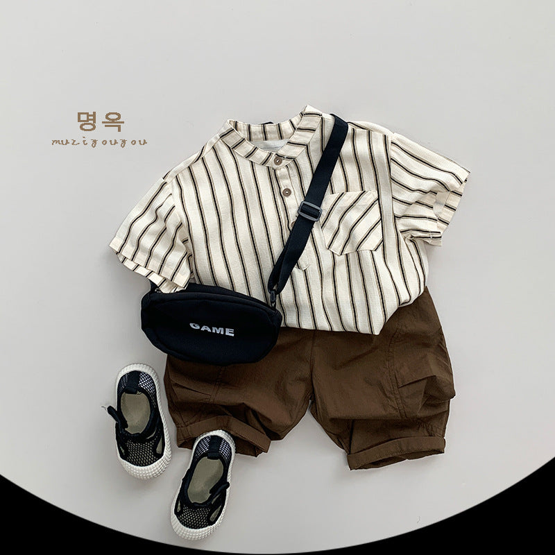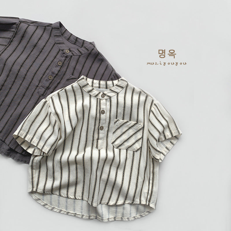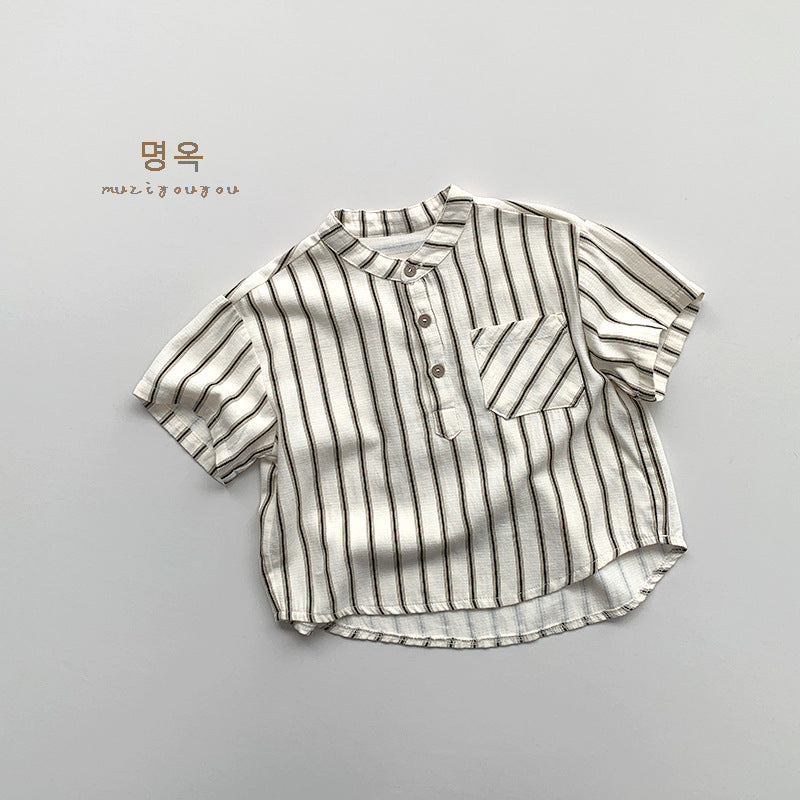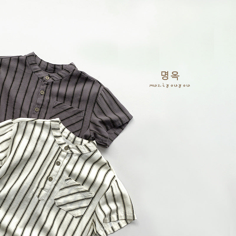 【BABY&KID】夏新作 韓国風ストライプ半袖トップスSK080811