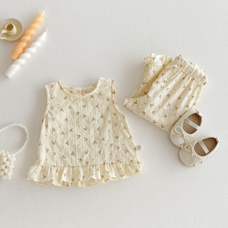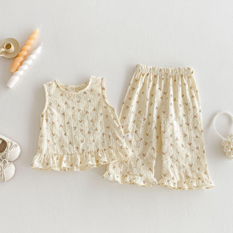 【BABY&KID】夏新作 韓国風小花柄ノースリーブスーツSK070202