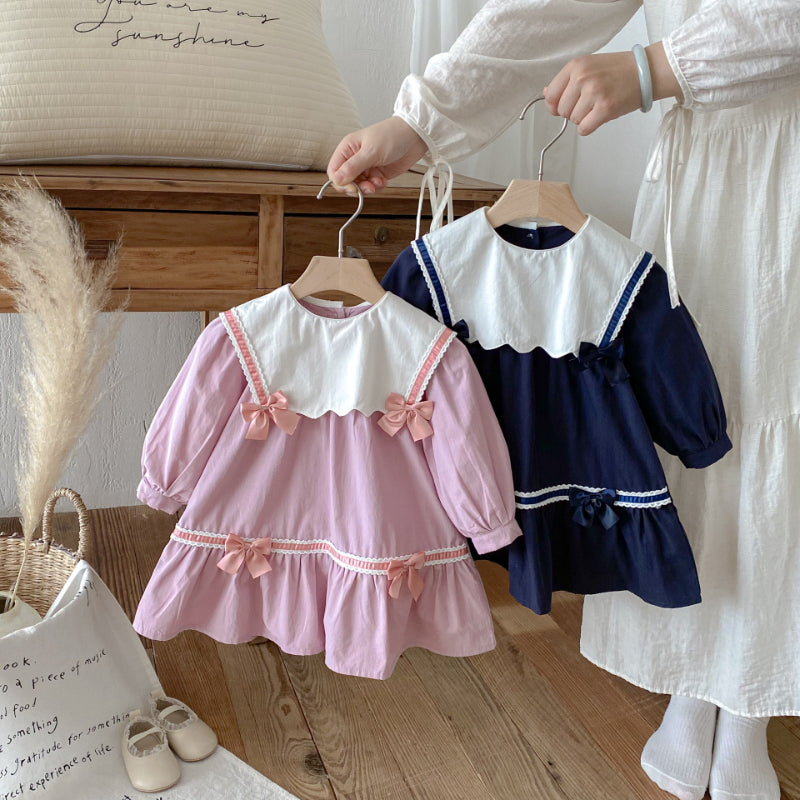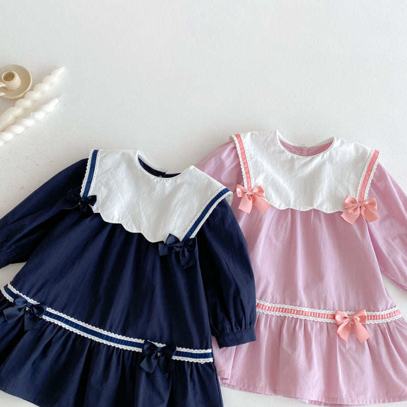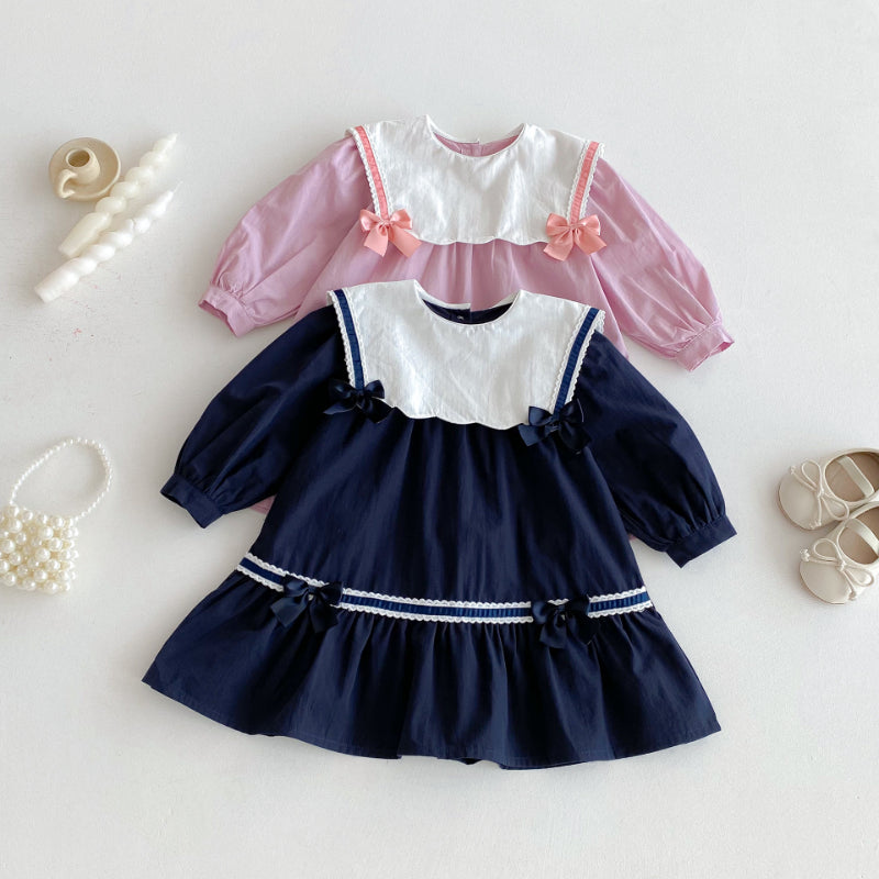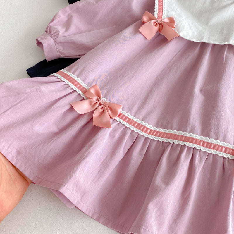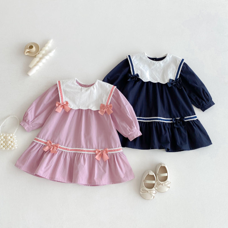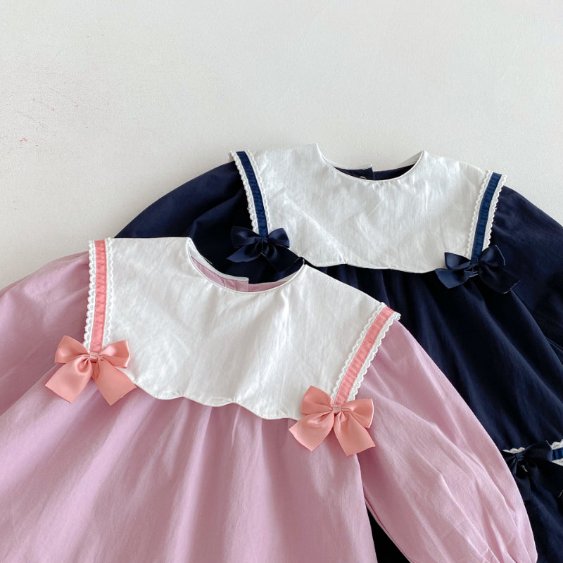 【BABY&KID】学院風カラー蝶結びワンピースSK011025