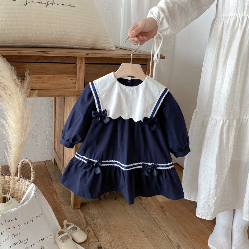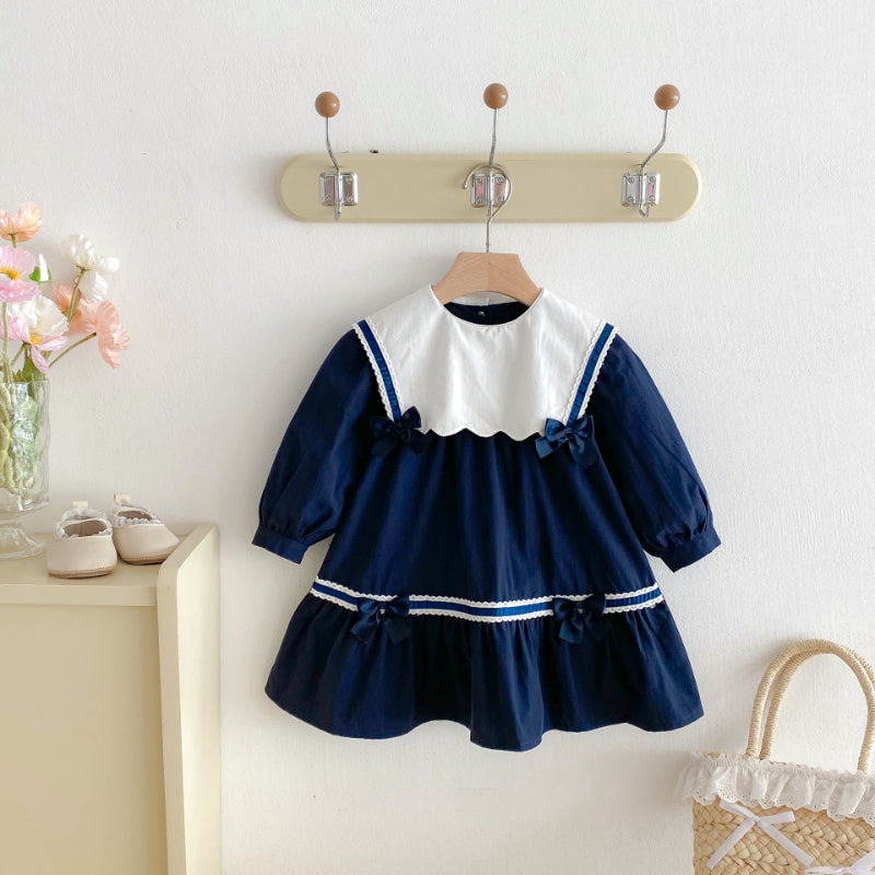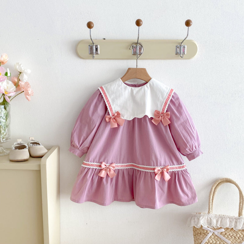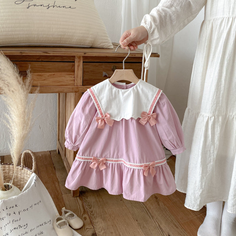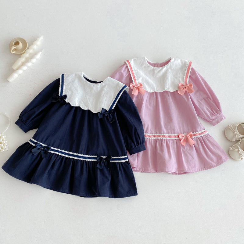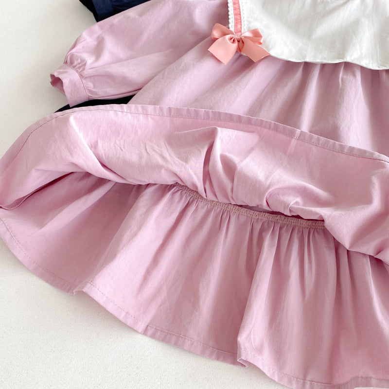 【BABY&KID】学院風カラー蝶結びワンピースSK011025