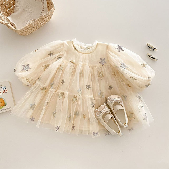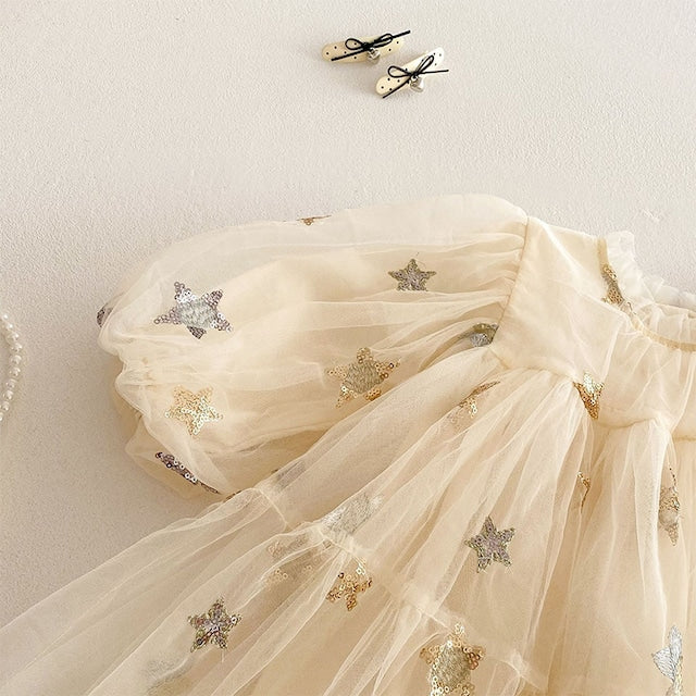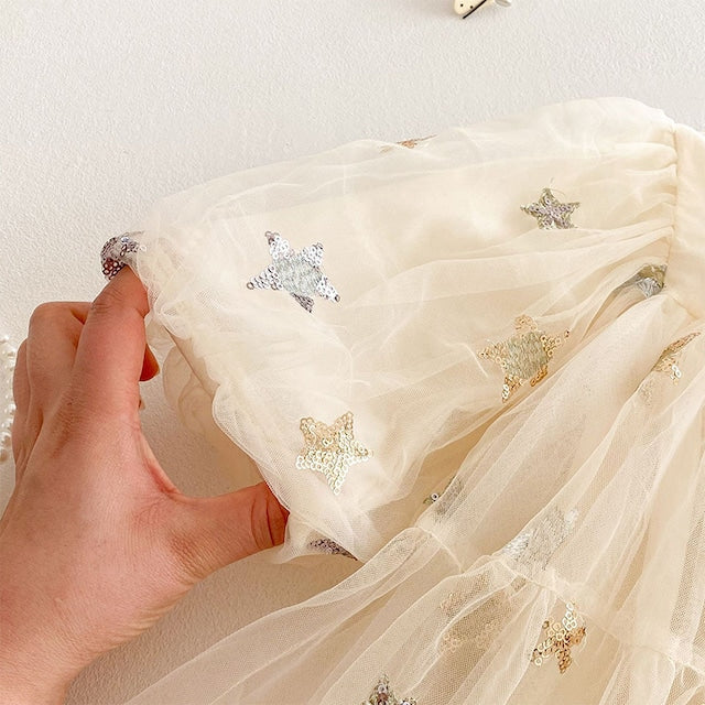 【BABY&KID】星柄パフスリーブレースドレスSK030804