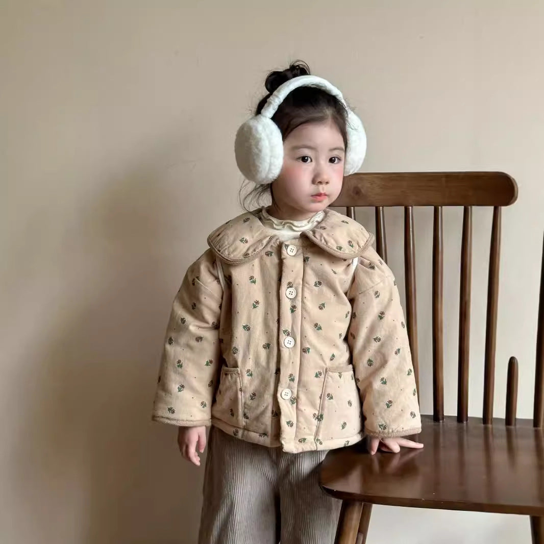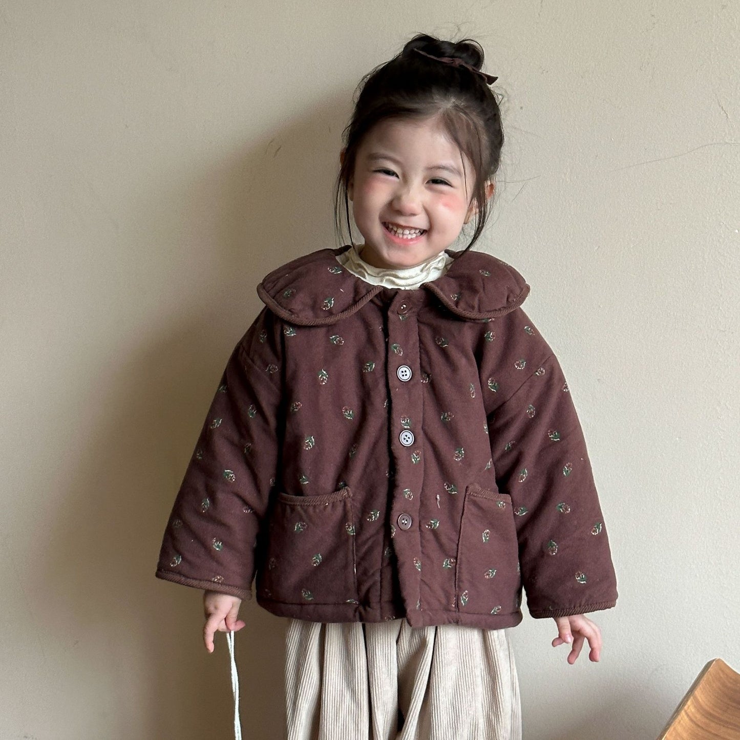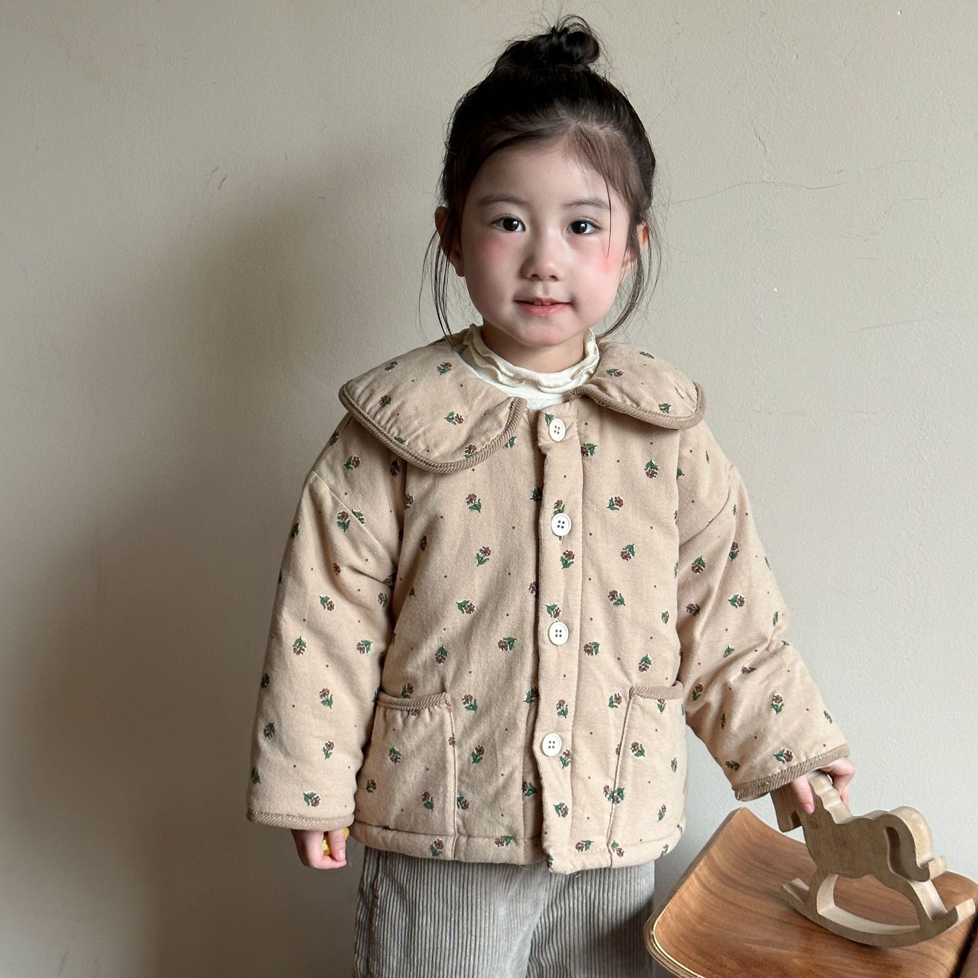 【BABY&KID】暖かい花柄厚手コートSK012804