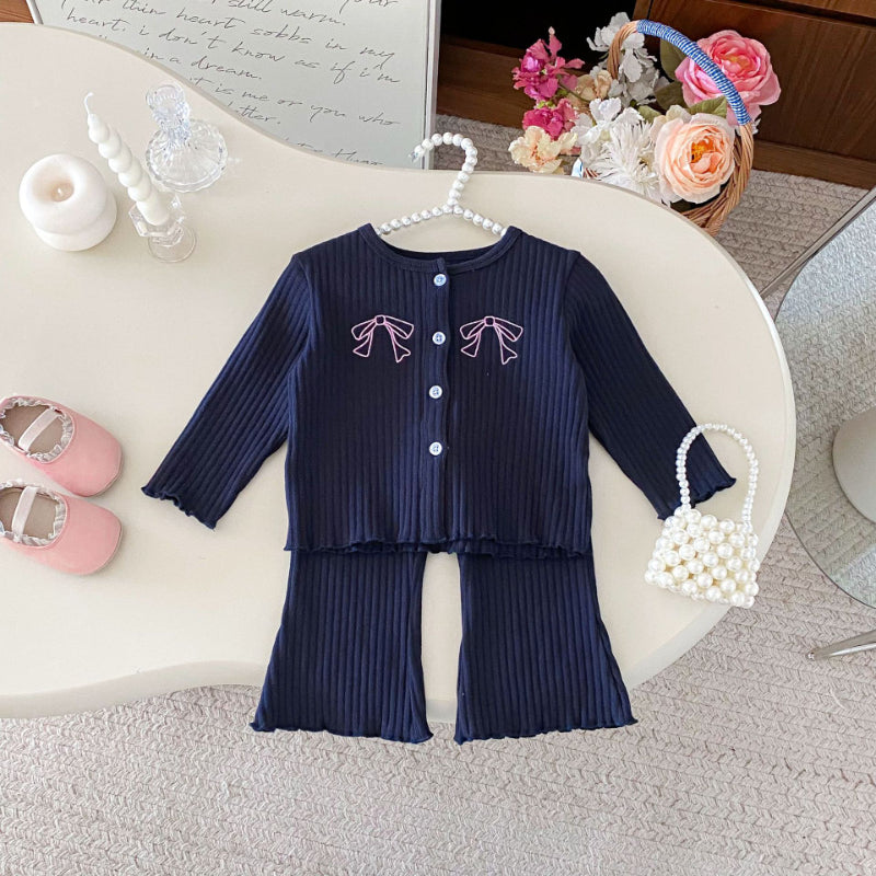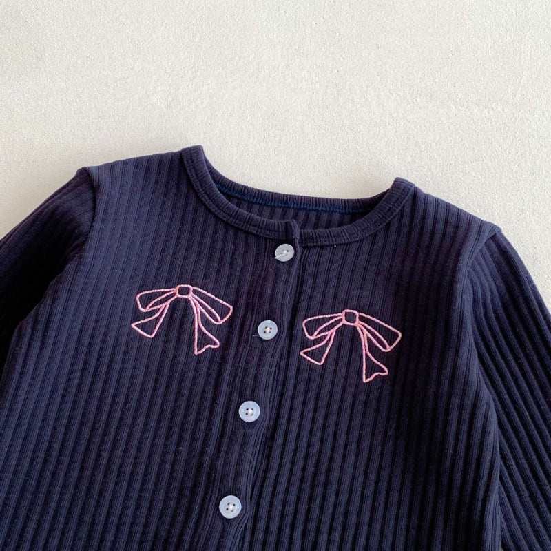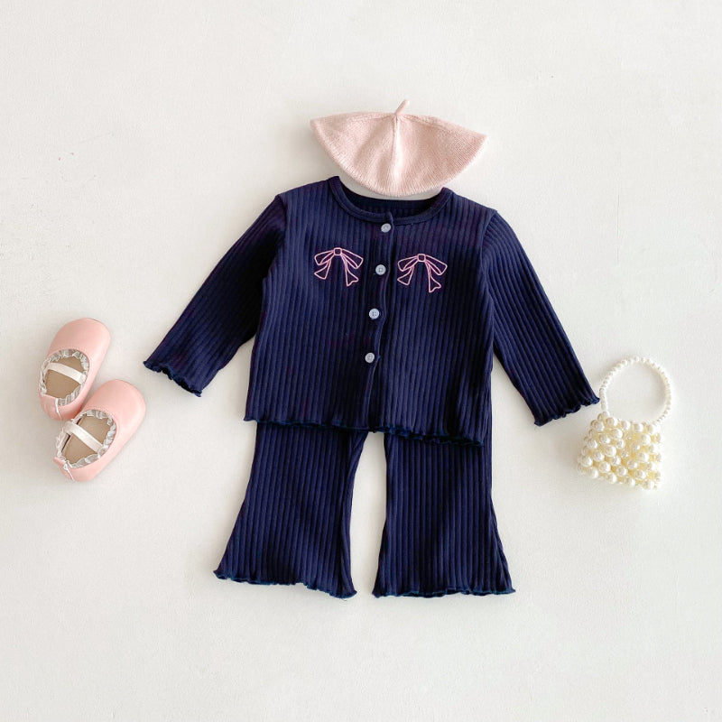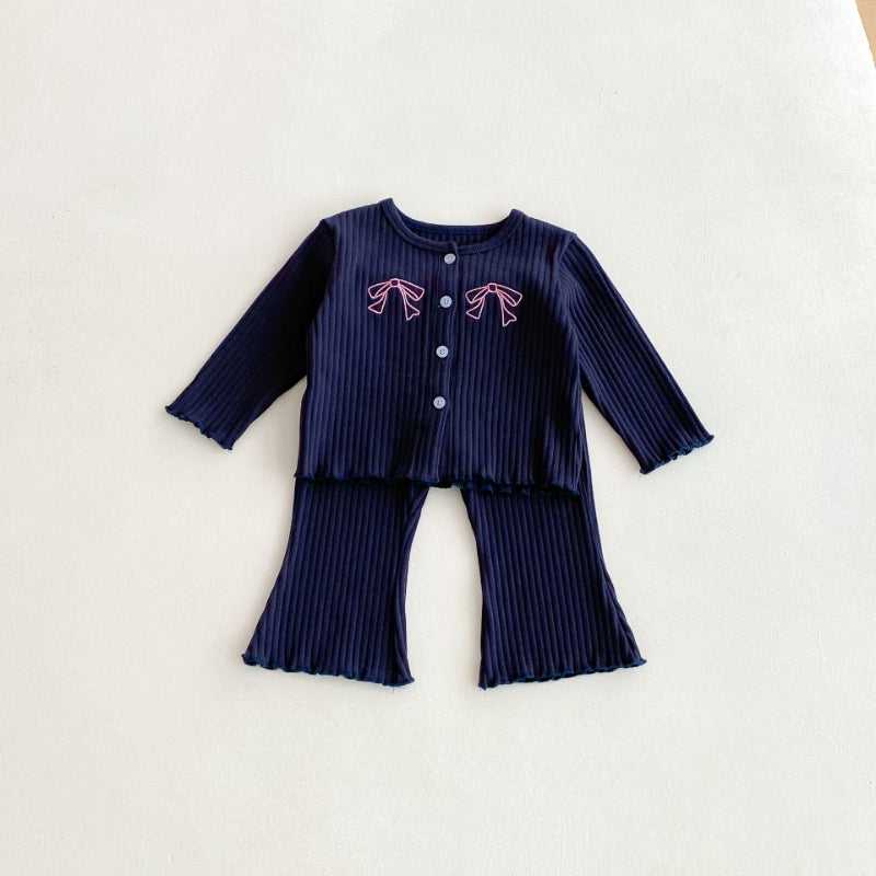 【BABY&KID】無地刺繍蝶結びリブセットアップSK092431