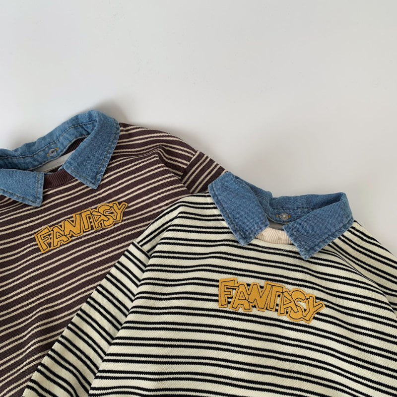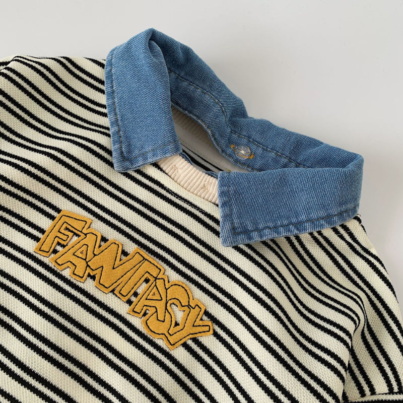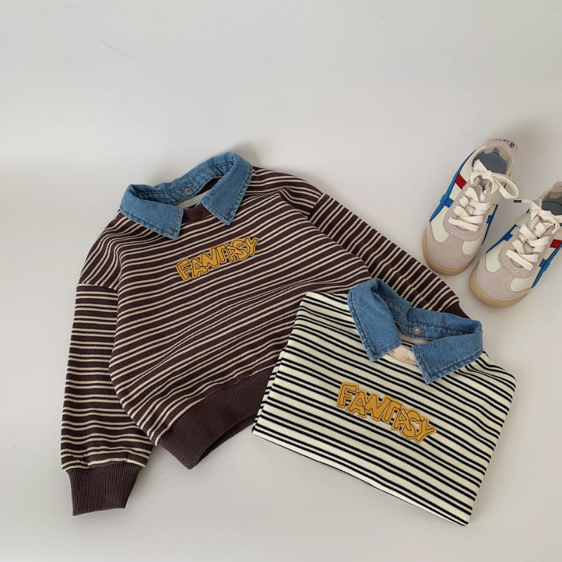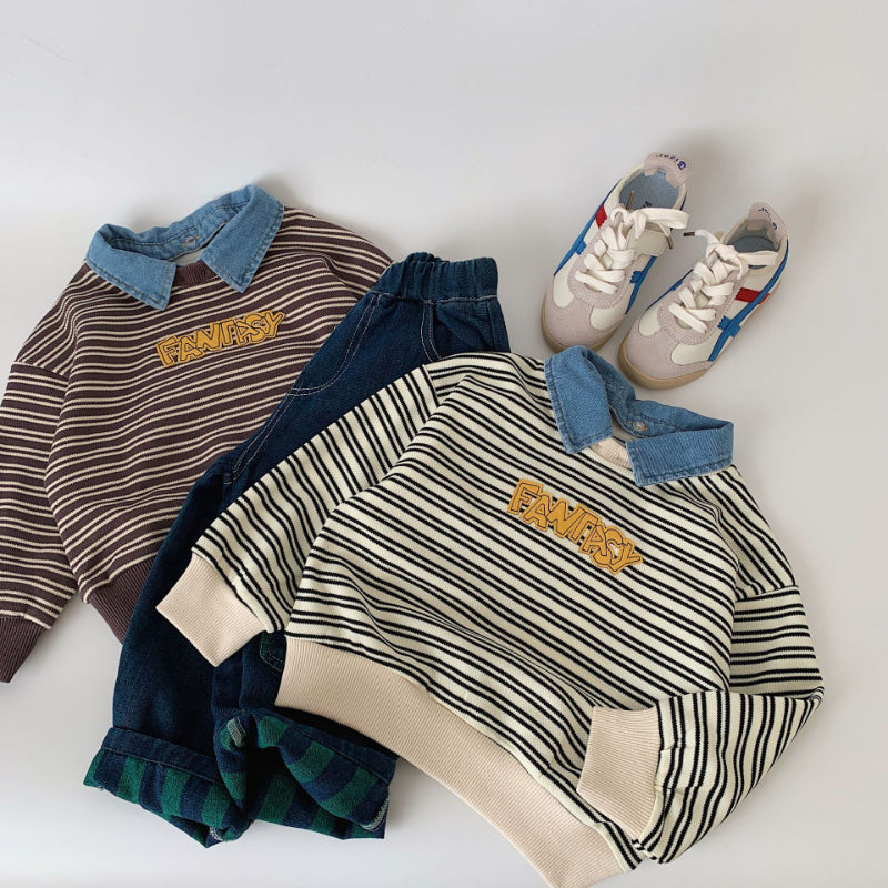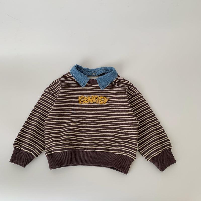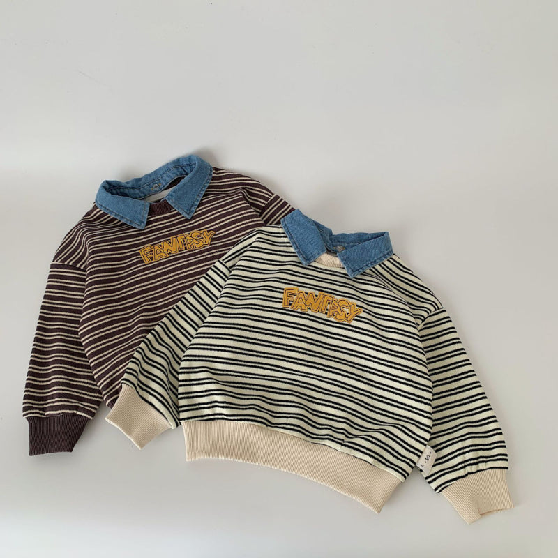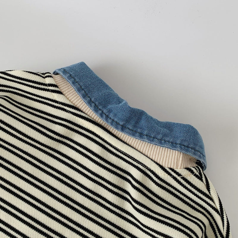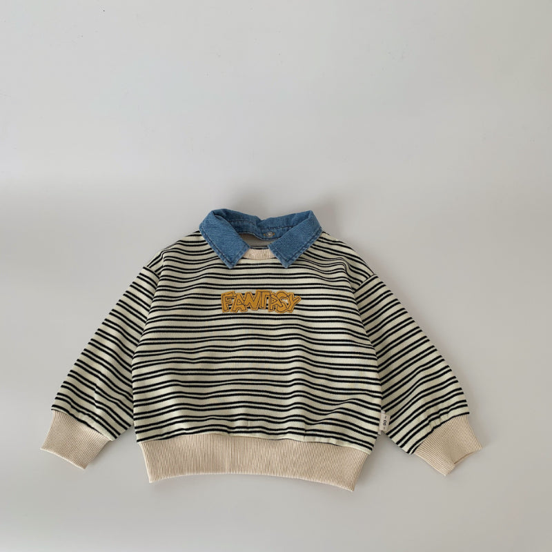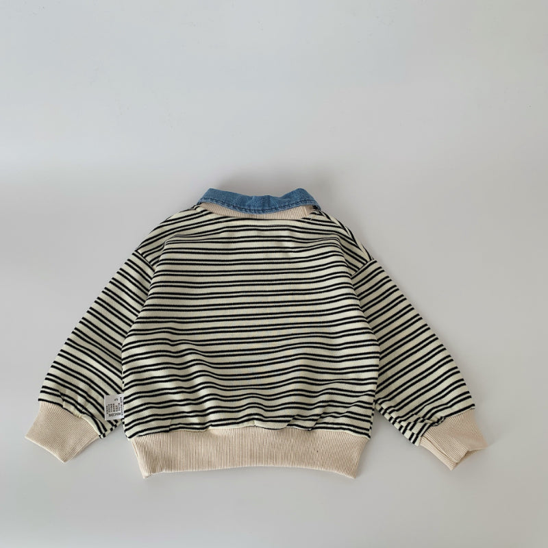 【BABY&KID】着脱可能デニム襟ストライプスウェットSK100523