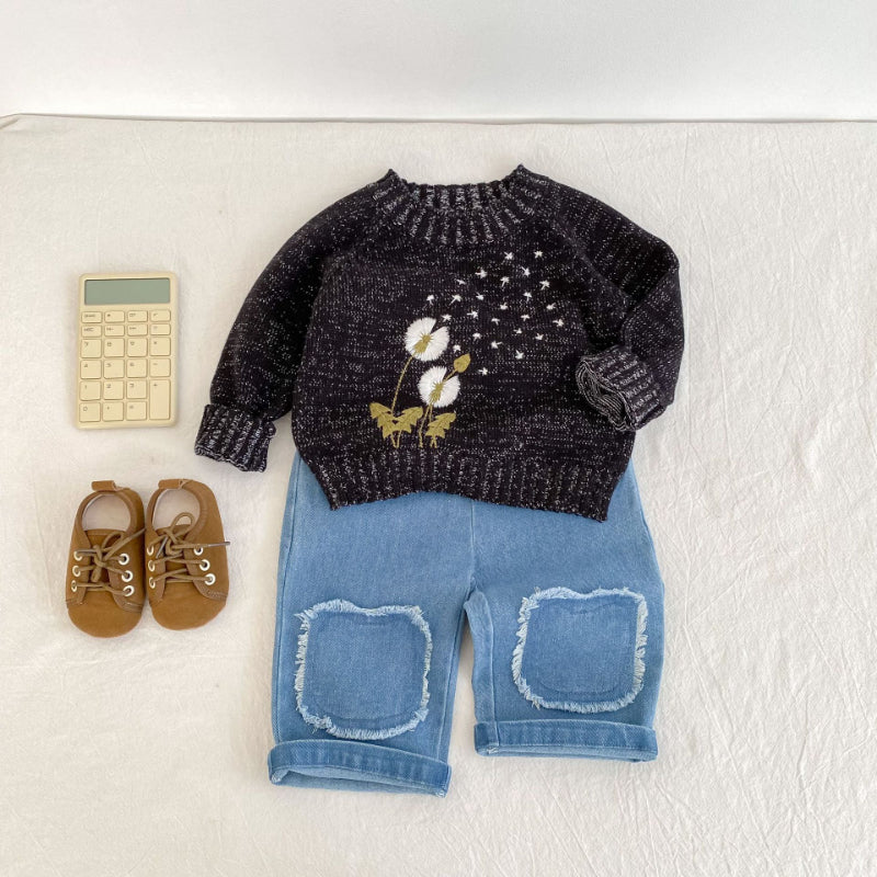 【BABY&KID】立体刺繍クルーネックプルオーバーニットSK100630