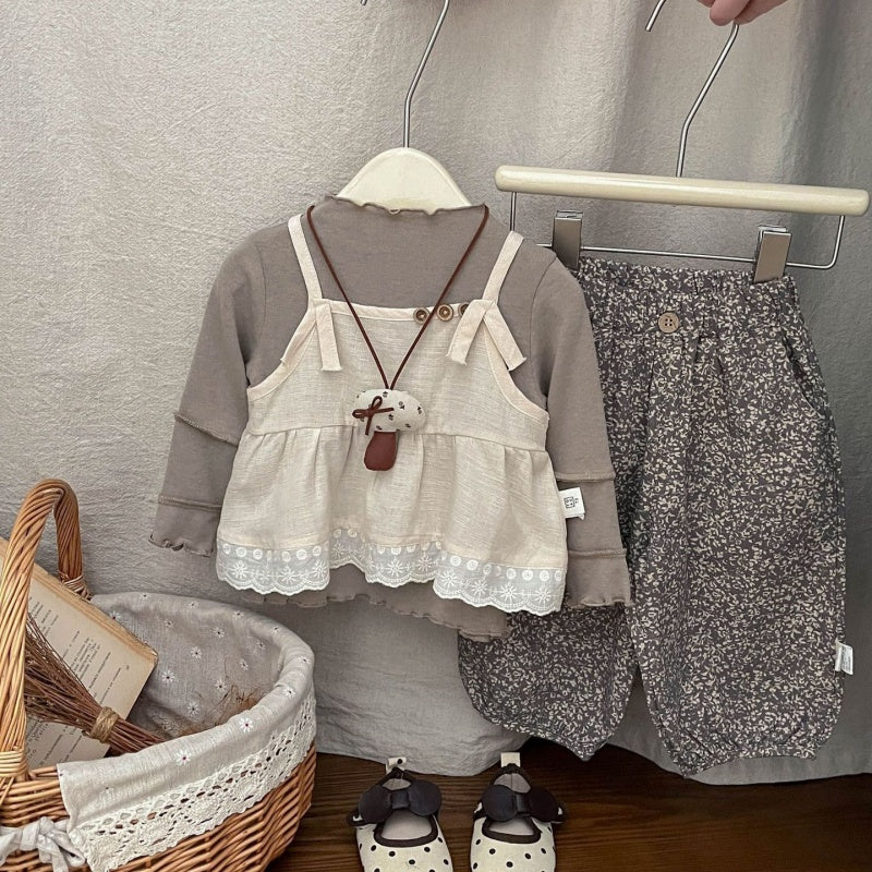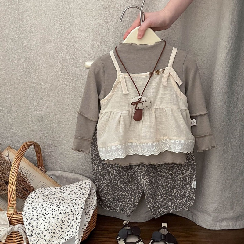 【BABY&KID】韓国風おしゃれキャミ&tシャツ、小花柄パンツSK100219