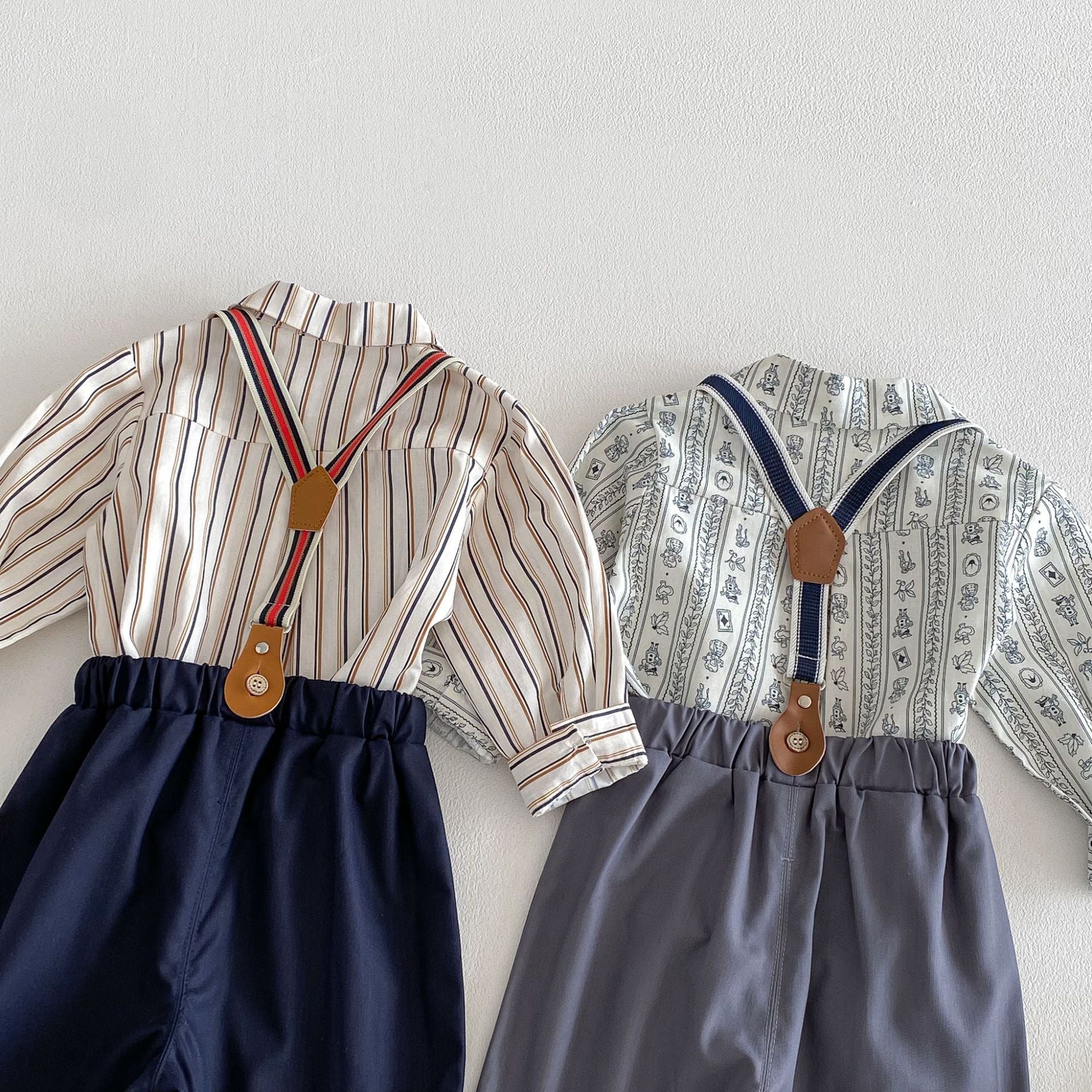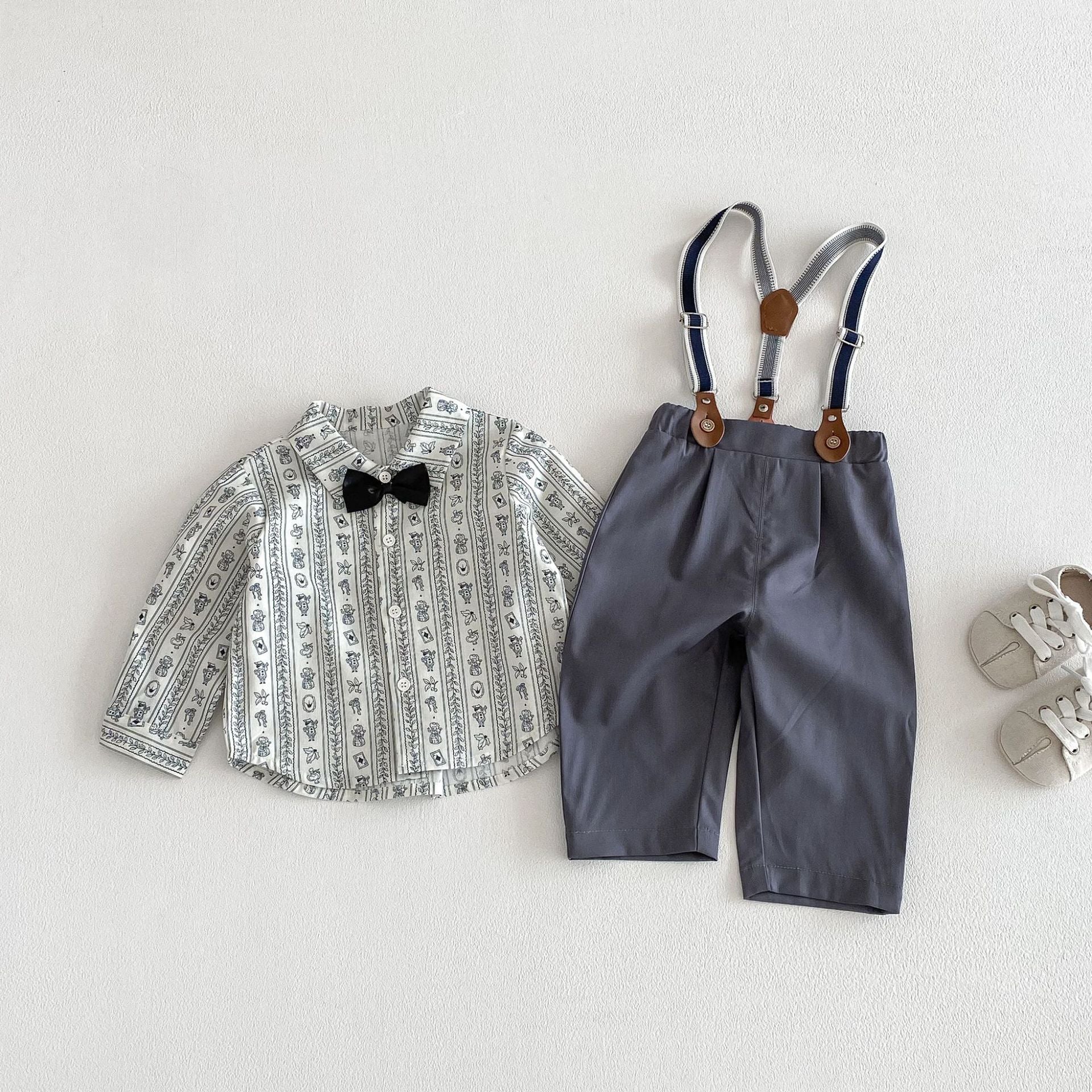 【BABY&KID】韓国風リボンタイシャツ、サロペットパンツSK103521
