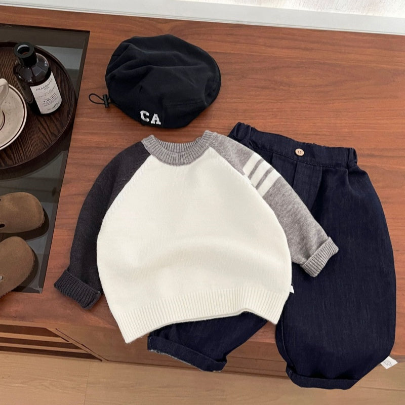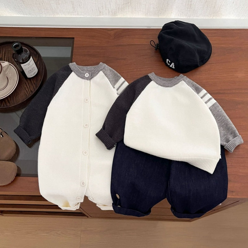 【BABY&KID】韓国風配色ニットカバーオール、セーターSK101817