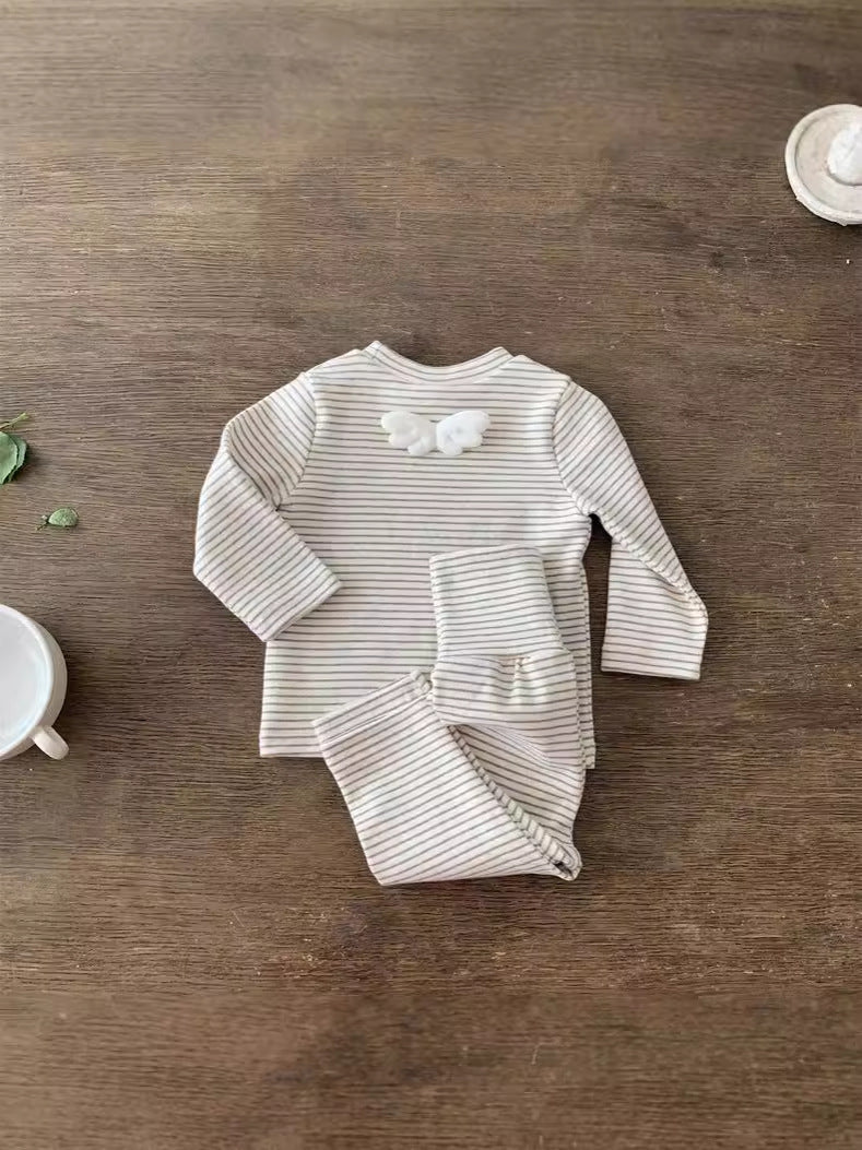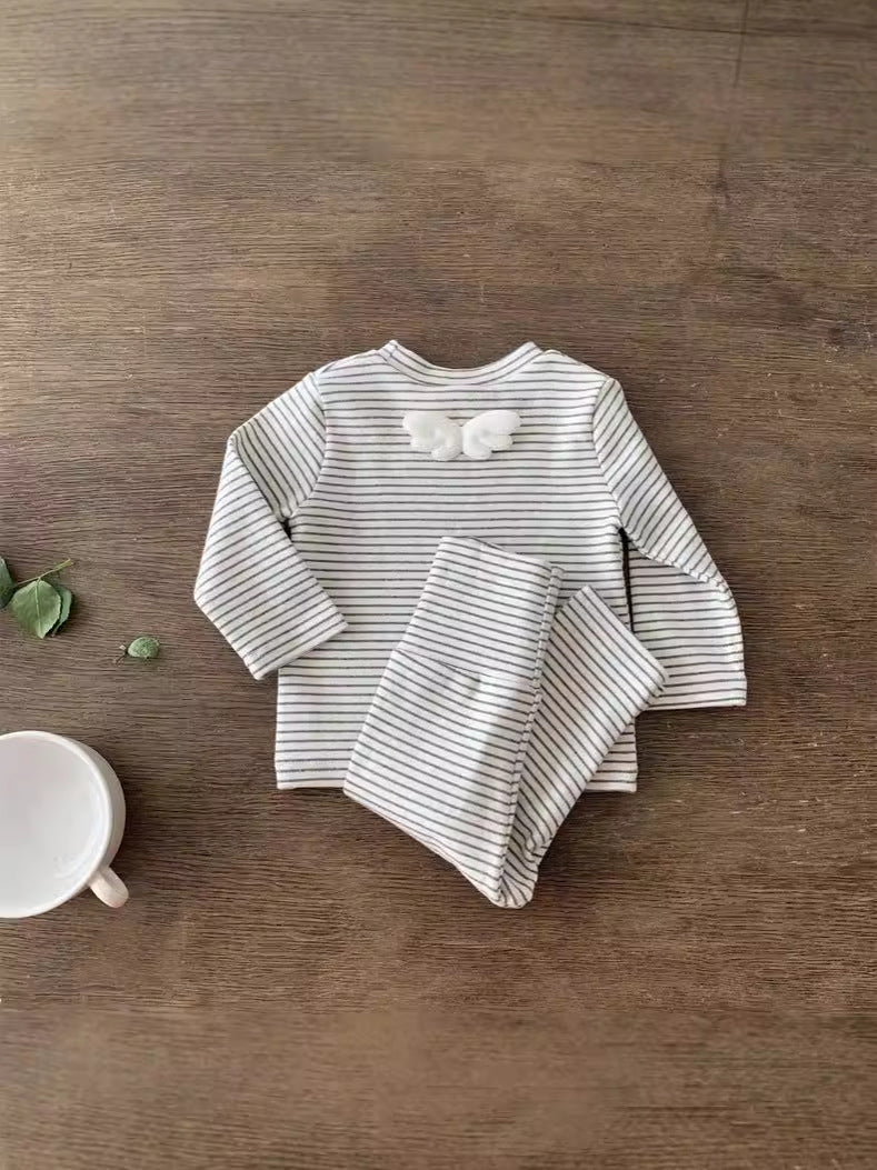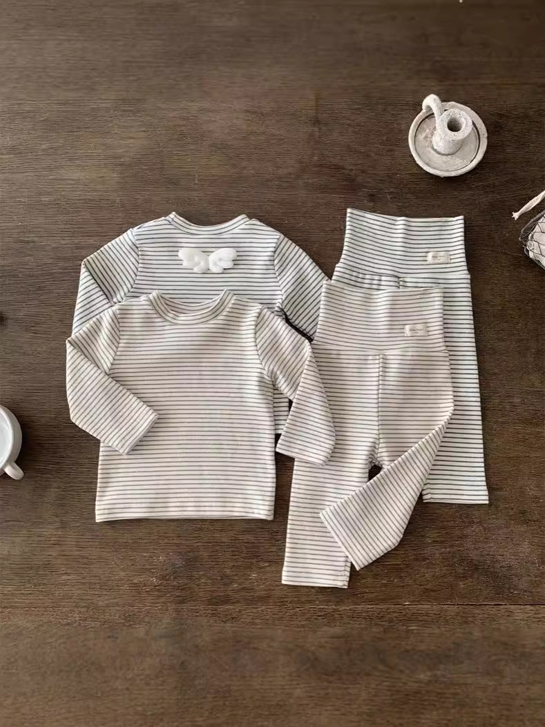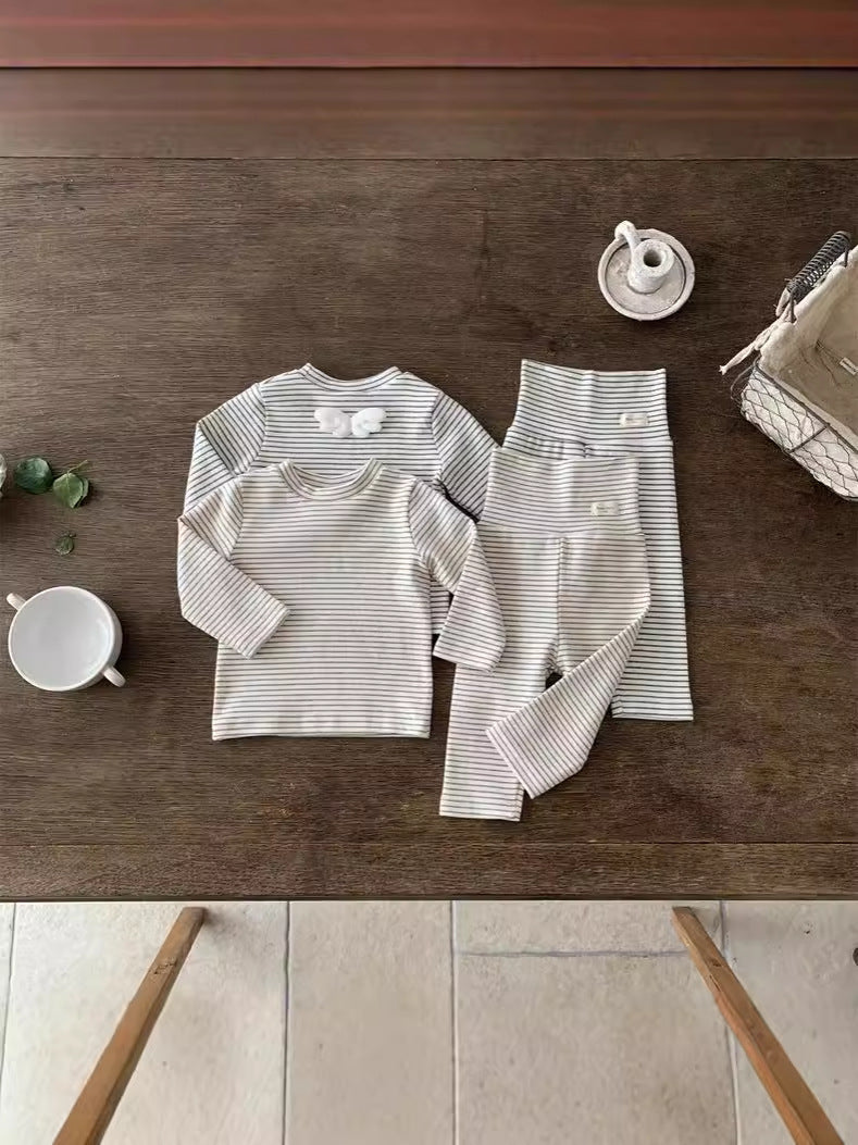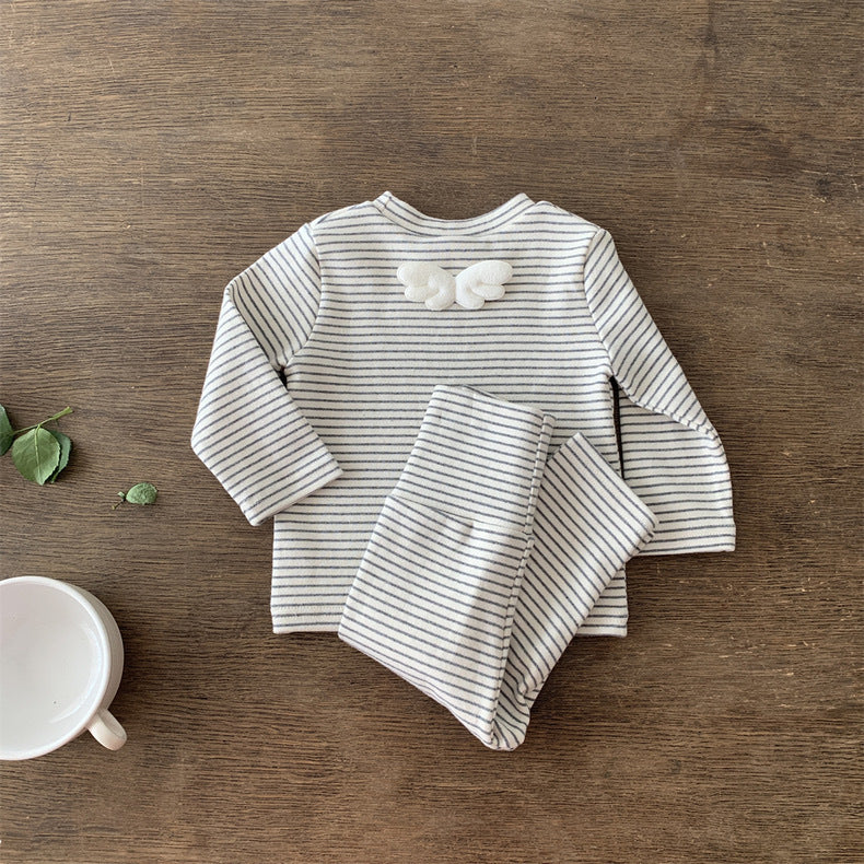【BABY&KID】韓国風 暖かいボーダーセットアップSK021504