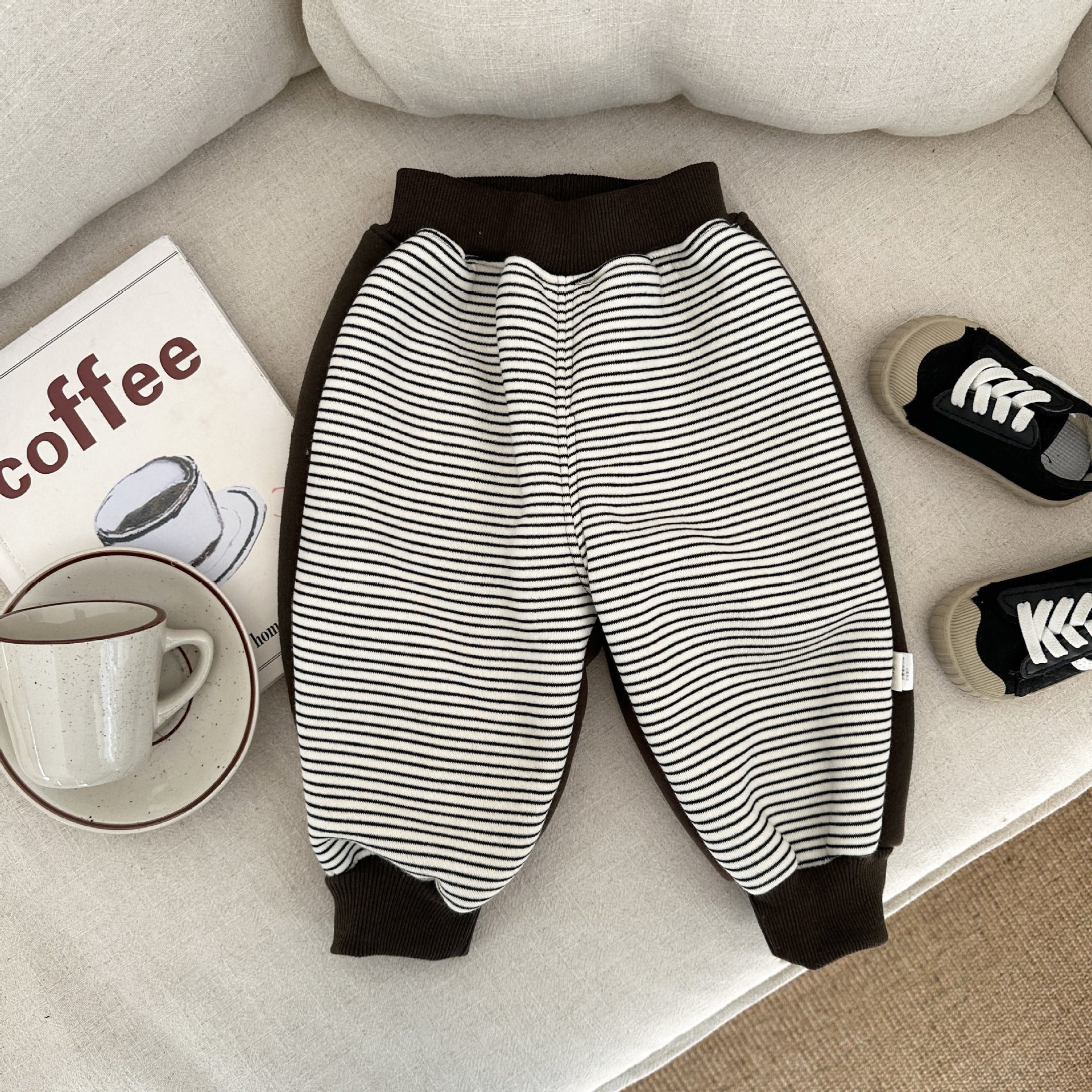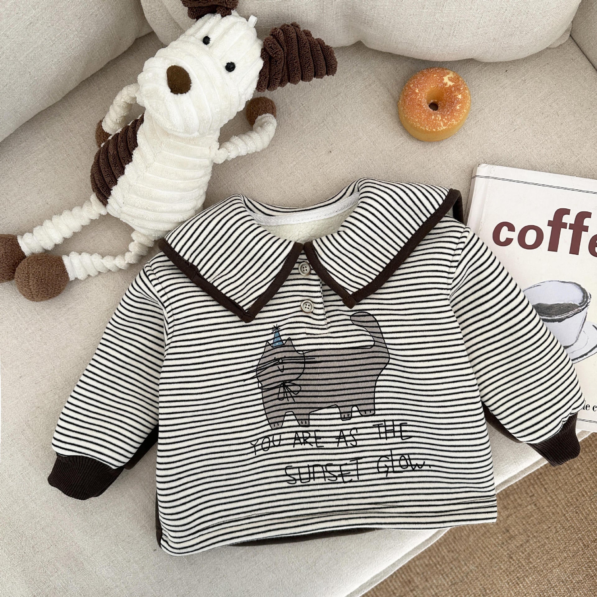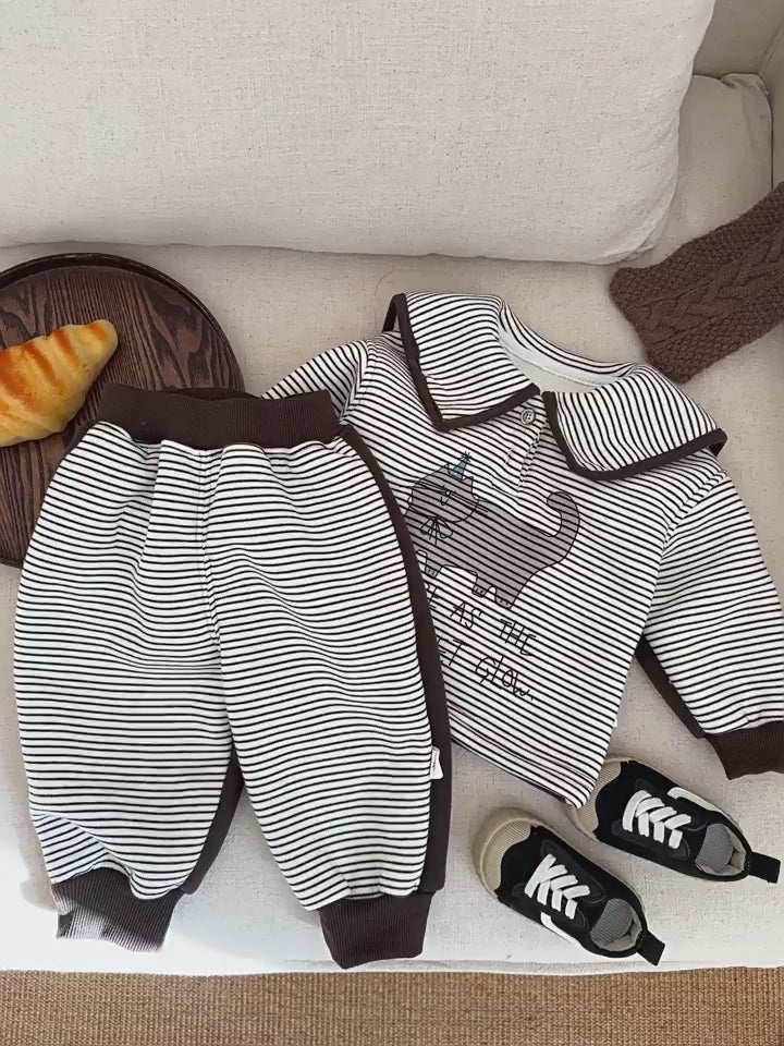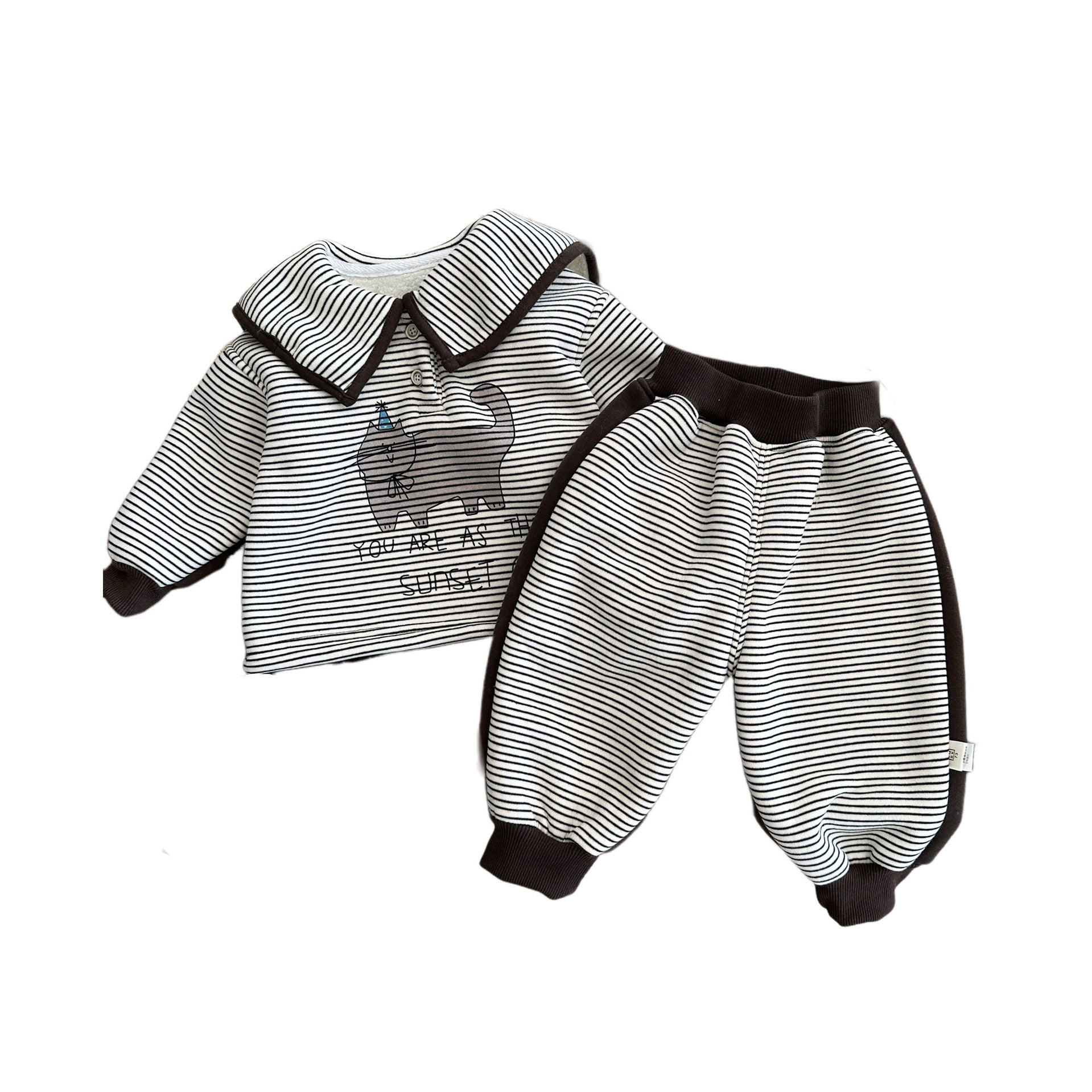 【BABY&KID】韓国風 猫柄暖かいボーダーセットアップSK022410