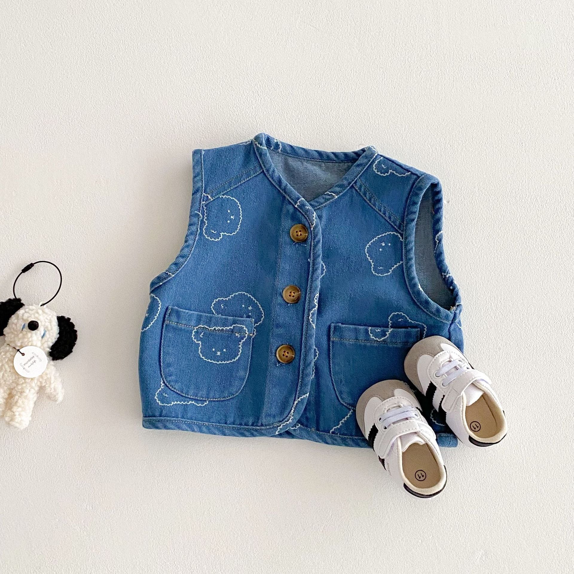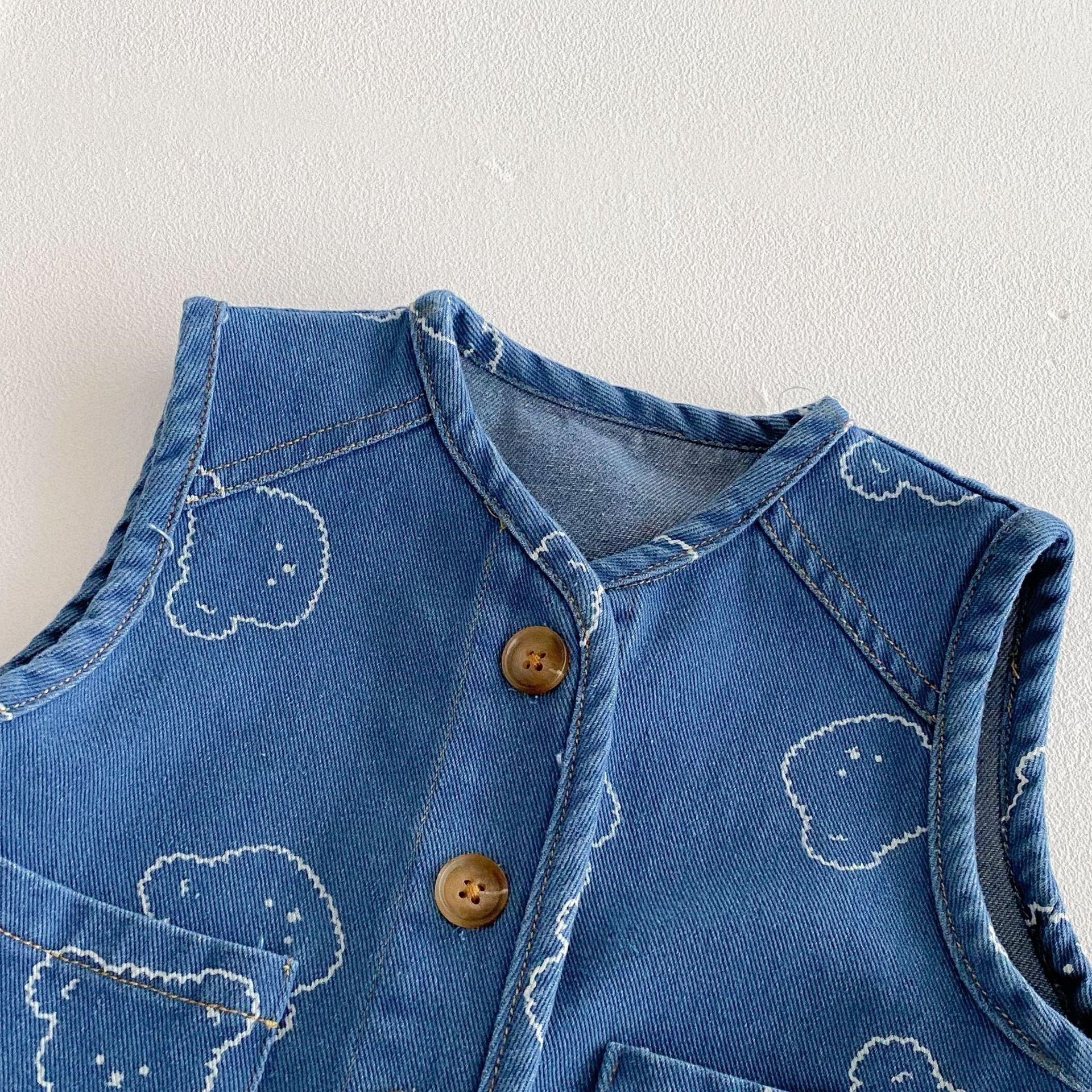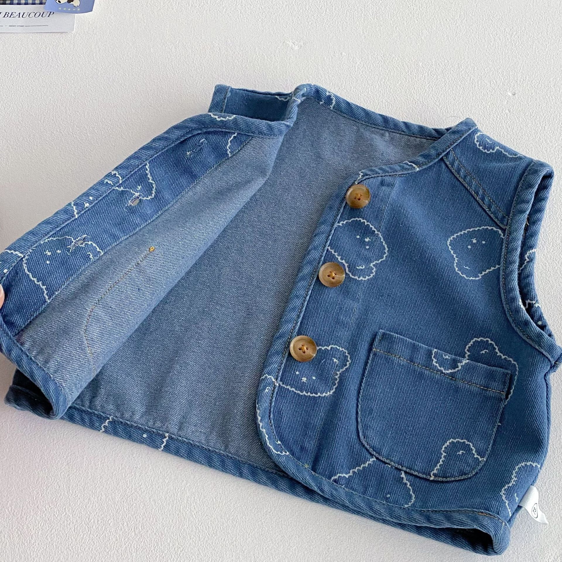 【BABY&KID】クマ柄デニムジャケット、パンツ、サロペット、ベストSK030803