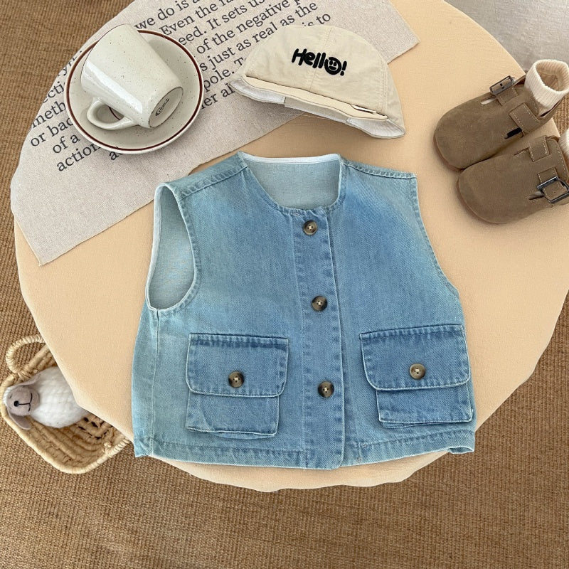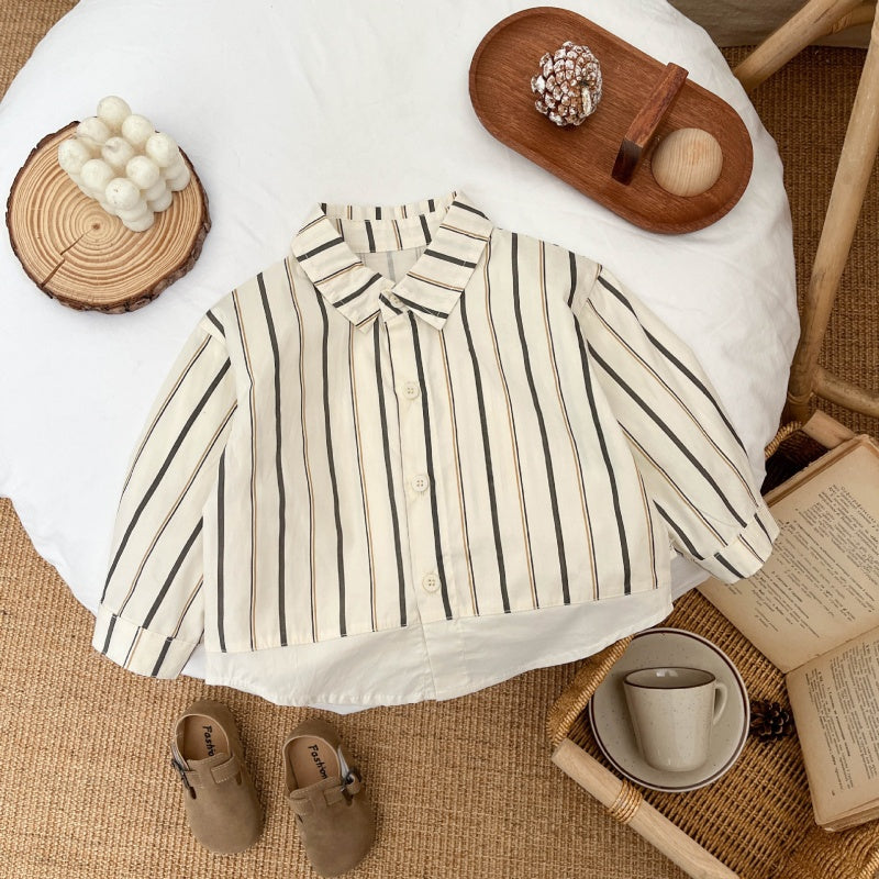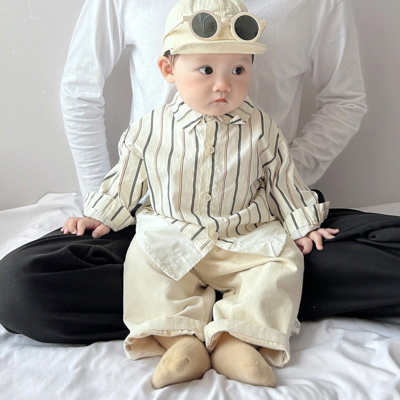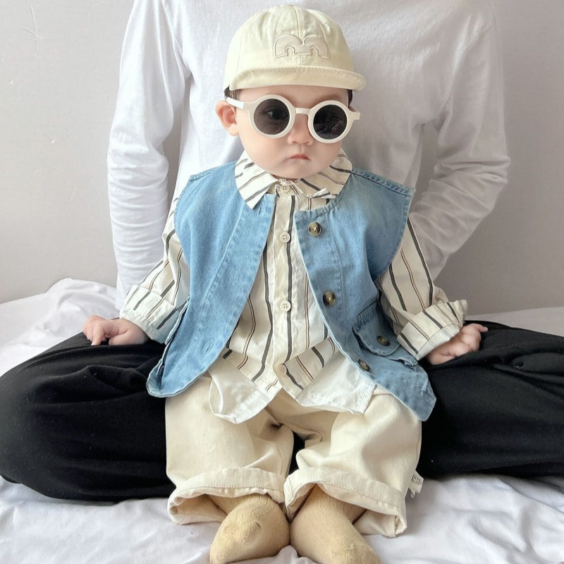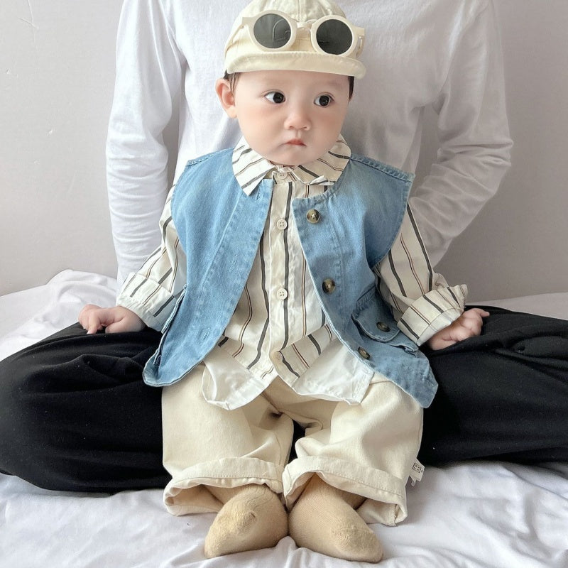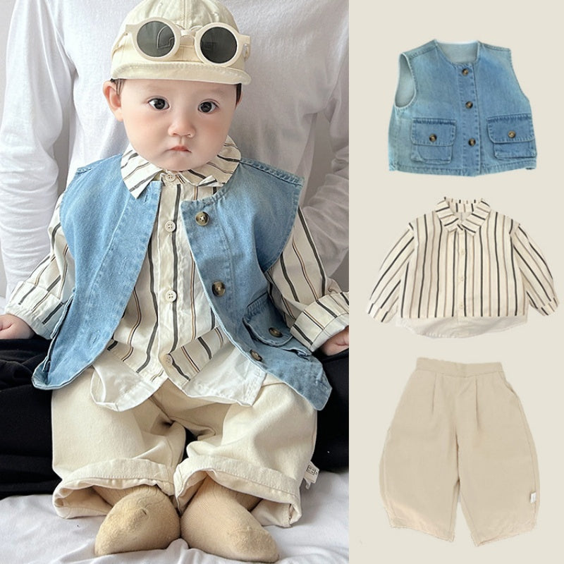 【BABY&KID】ストライプシャツ、デニムベスト、アーモンドパンツSK100224