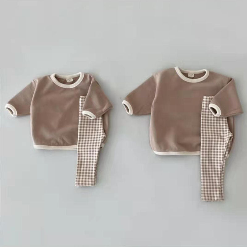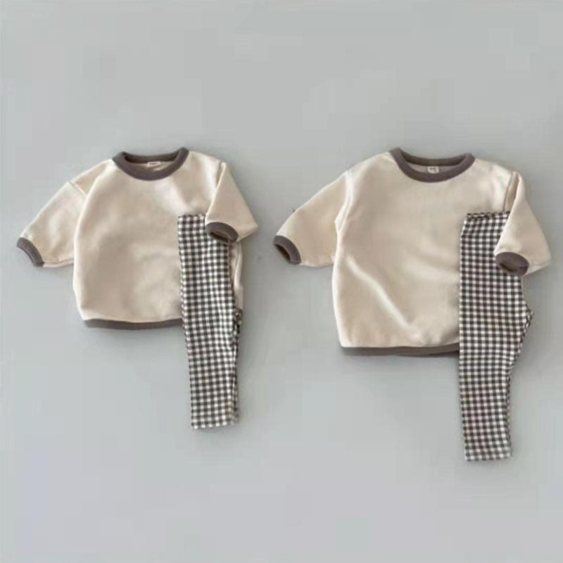【BABY&KID】バイカラートレーナー&チェック柄ボトムスSK020921
