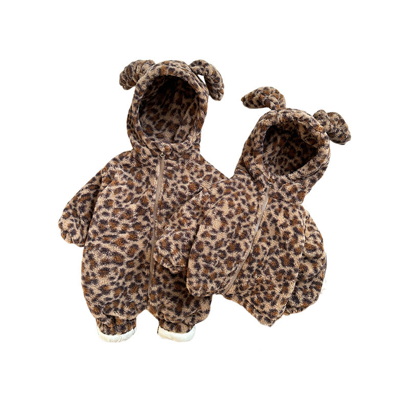 【BABY&KID】ヒョウ柄帽子付きアウター、ロンパースSK022408