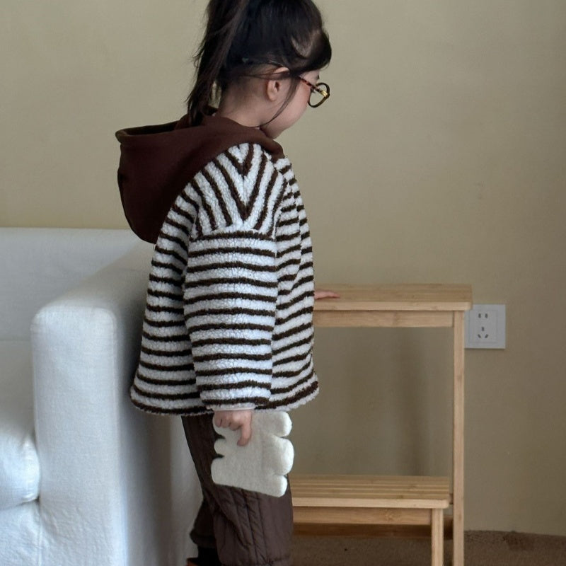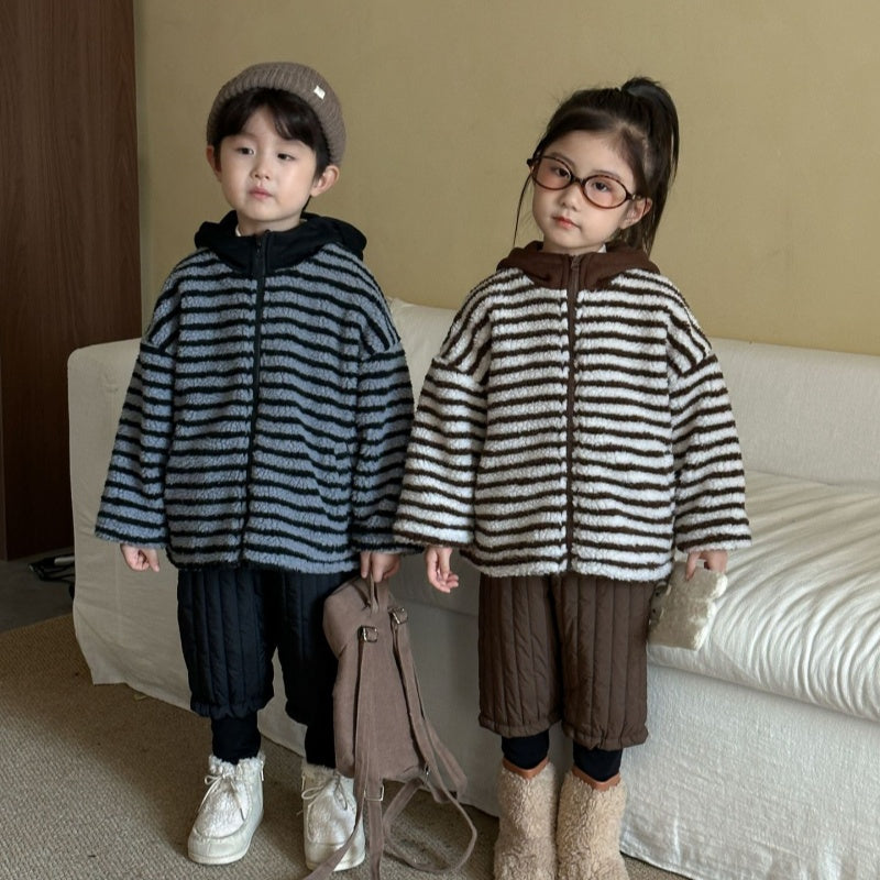 【BABY&KID】冬新作 フード付きボーダー裏起毛アウターSK102027